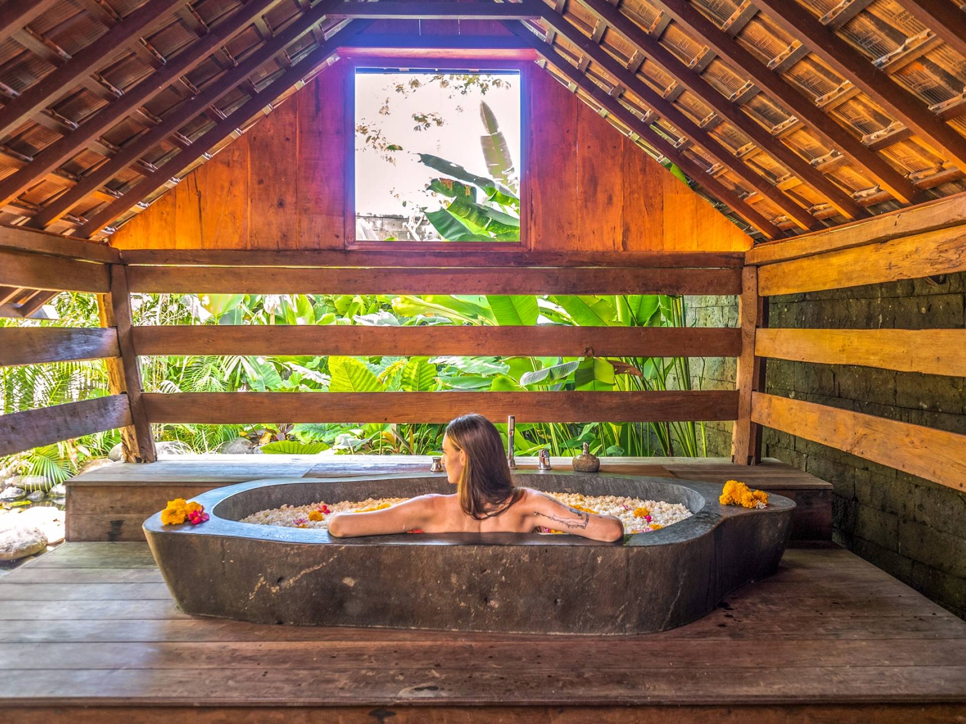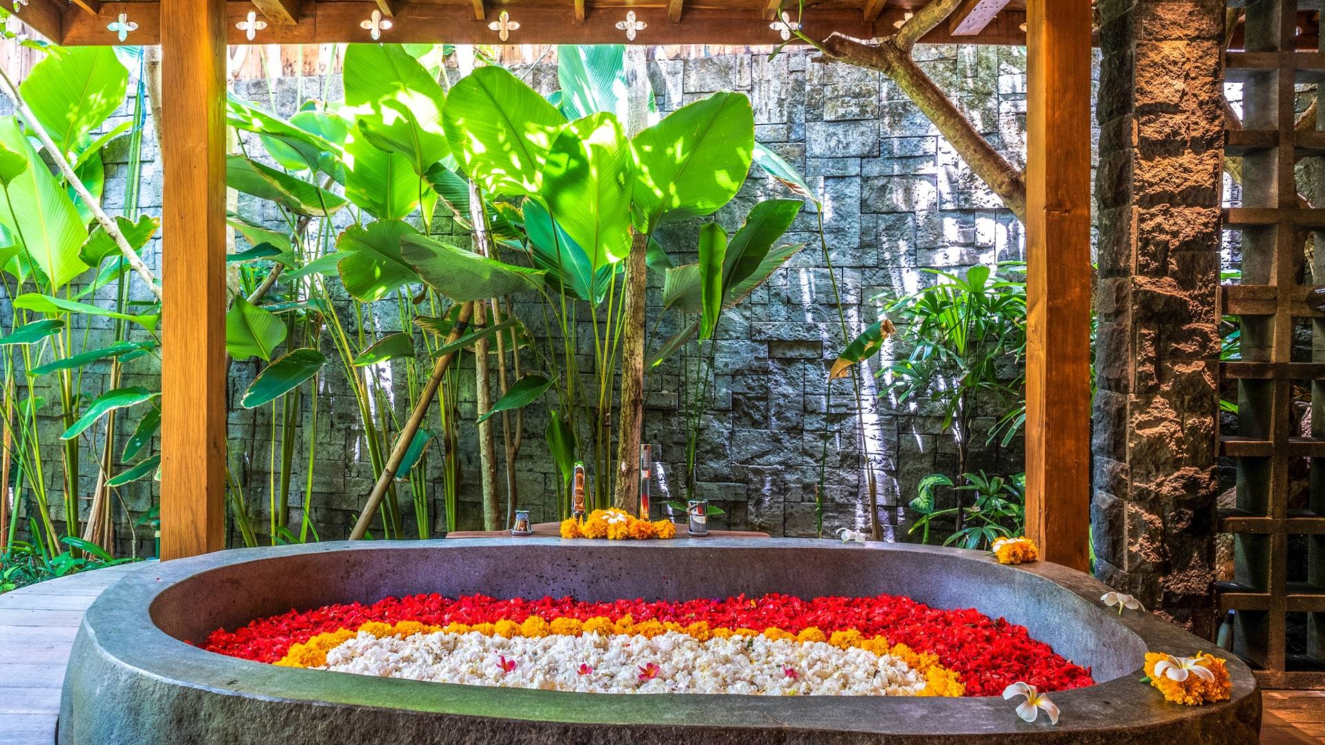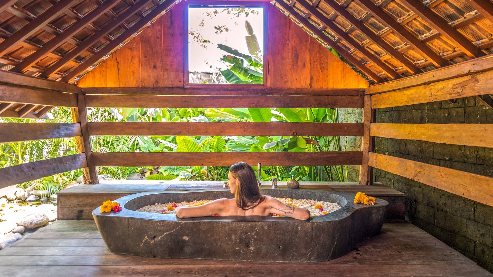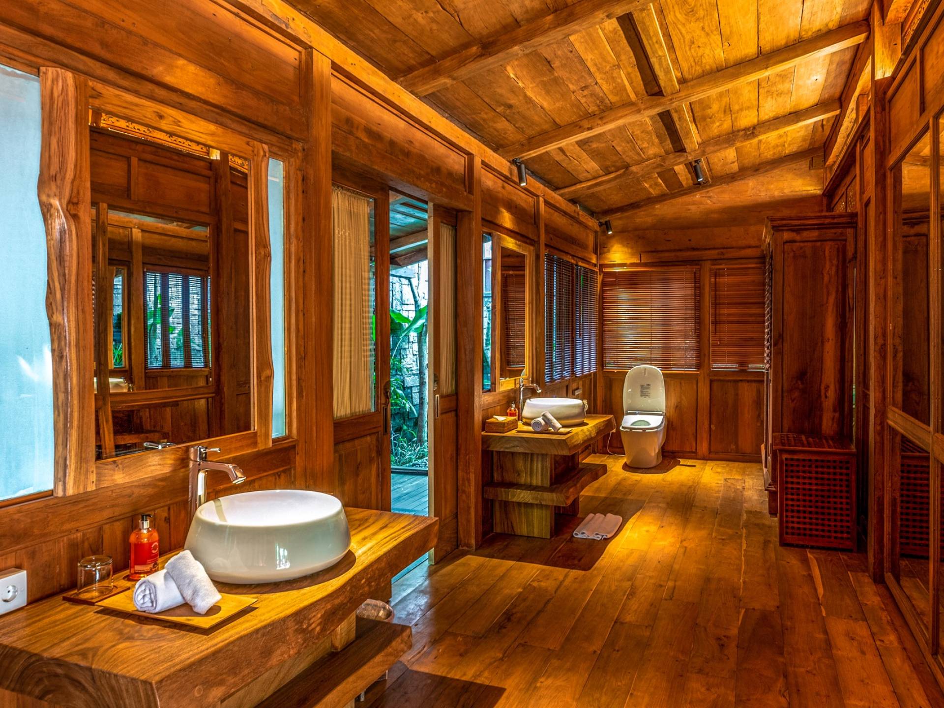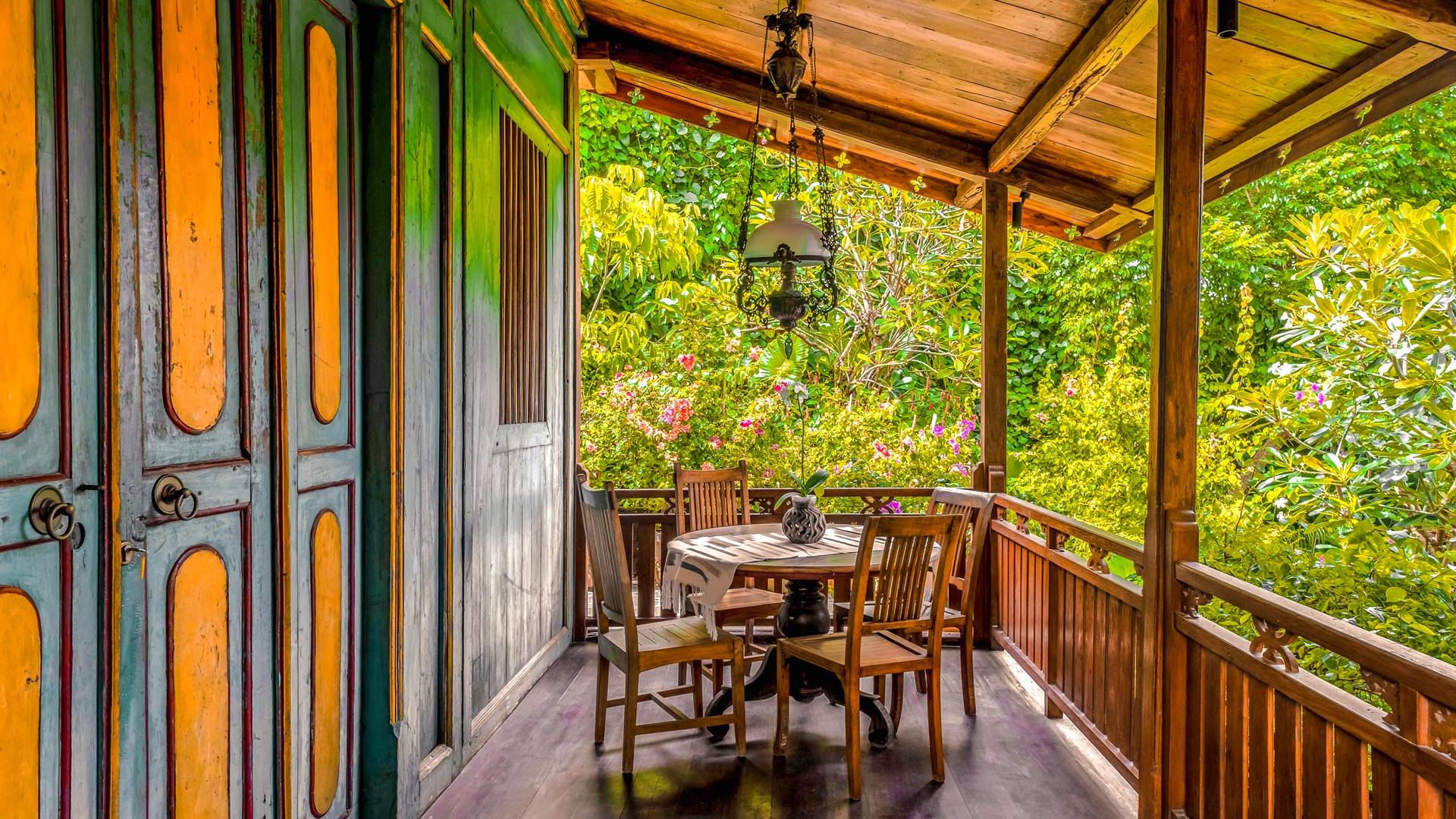 Огромный полуоткрытый павильон в балийском стиле - сердце общества на вилле. Под высокой соломенной крышей из аланг-аланга вы найдете шикарные, но современные кресла, традиционную яванскую кушетку и большой диван. Кухня в островном стиле и барная стойка с раковиной оборудованы эспрессо-машиной, а барные стулья у стойки - идеальное место, чтобы насладиться коктейлем или бутылкой вина, чтобы отпраздновать отпуск на Бали. В обеденной зоне потрясающий старинный обеденный стол из железного дерева - идеальное место для повседневных завтраков, а также ужинов при свечах, приготовленных вашим поваром на частной вилле.