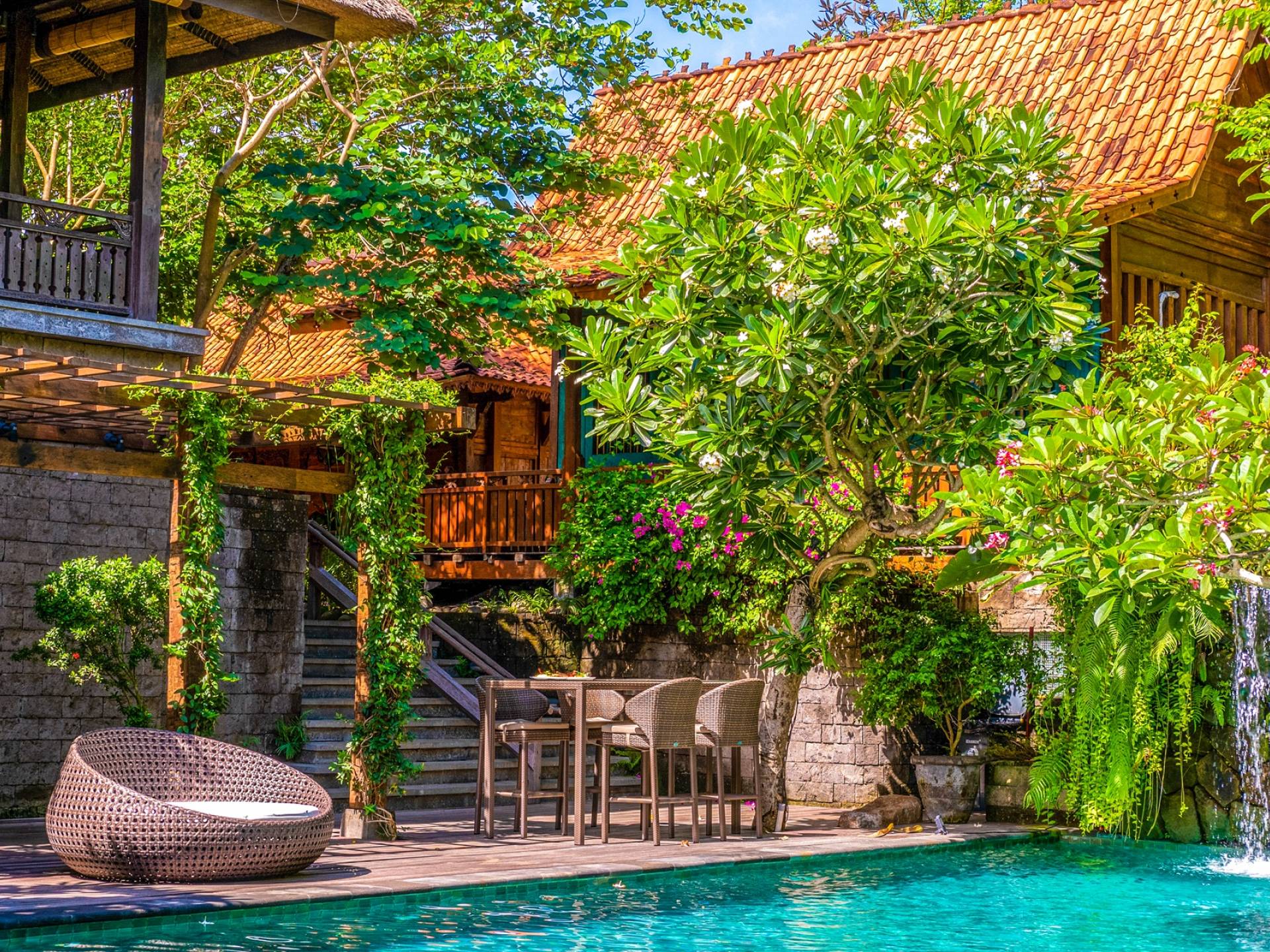 В цветущем саду виллы Kapungkur есть открытый бассейн в центре. Ваш собственный частный оазис с высококлассными удобствами и старинным шармом делает эту виллу в Джимбаране домом для отпуска мечты. В тихом уголке у пруда вы найдете спа-тюк. Это идеальное место, чтобы расслабиться во время косметических процедур и балийского массажа. Уникальность этой виллы - водопад, который каскадом спускается через бугенвиллии в 20-метровый бассейн. Здесь же вас ждут большие круглые шезлонги.