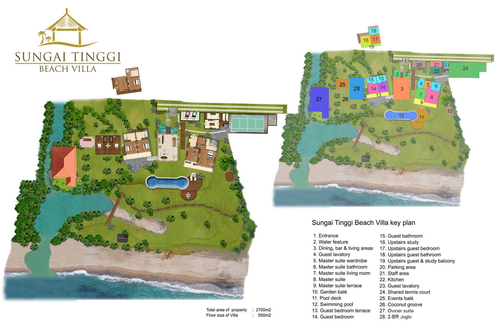 Sungai Tinggi Beach Villa Canggu - это уникальный дом для отпуска с шестью спальнями, расположенный на юго-западном побережье Бали. Он состоит из главной виллы с четырьмя спальнями, которую можно арендовать отдельно, и очаровательного гостевого дома с двумя спальнями, расположенного в тихом уголке основания. Вилла Sungai Tinggi Beach расположена на 100-метровом частном пляже, окруженном пышными садами площадью почти 12 000 кв. М. Это идеальное место для проведения свадеб.
