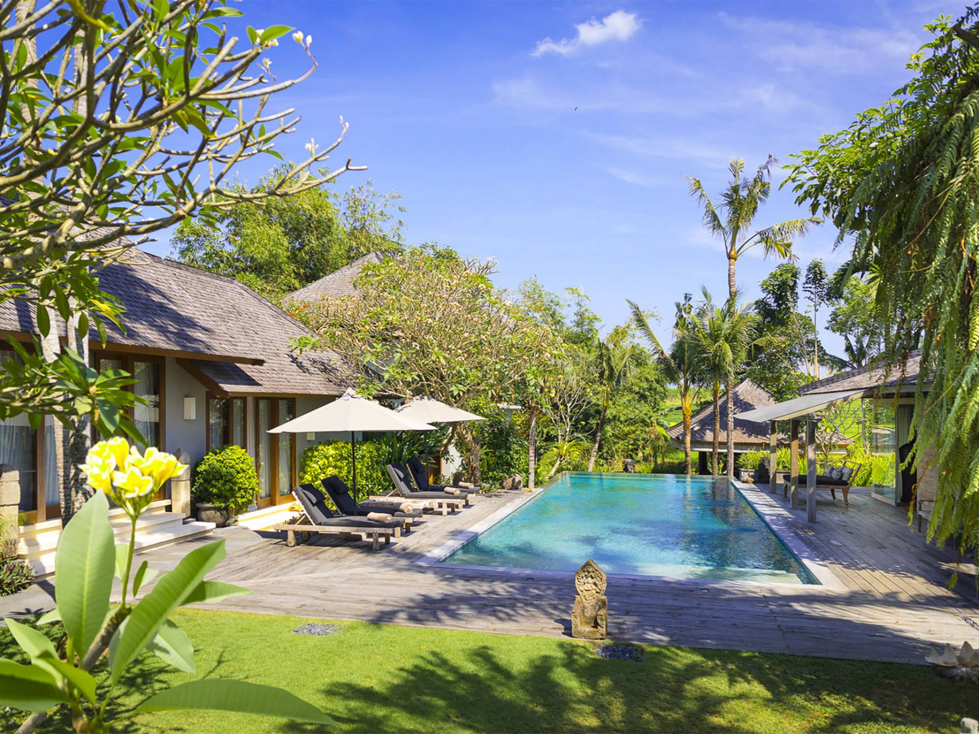 В красивом саду вы найдете 16-метровый частный бассейн, окруженный шезлонгами и стильными индонезийскими кушетками. Также есть бильярдный стол и барбекю, идеально подходящие для посиделок с семьей или друзьями. Наконец, рядом с балийским храмом пристроена открытая студия йоги, в которую ежедневно подают цветы и благовония.