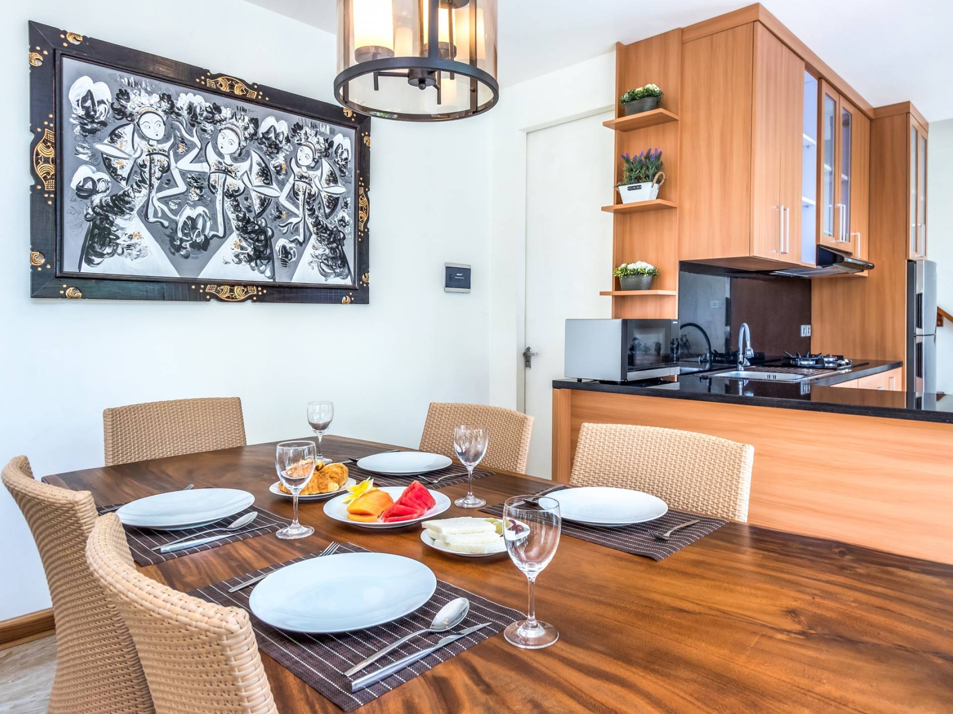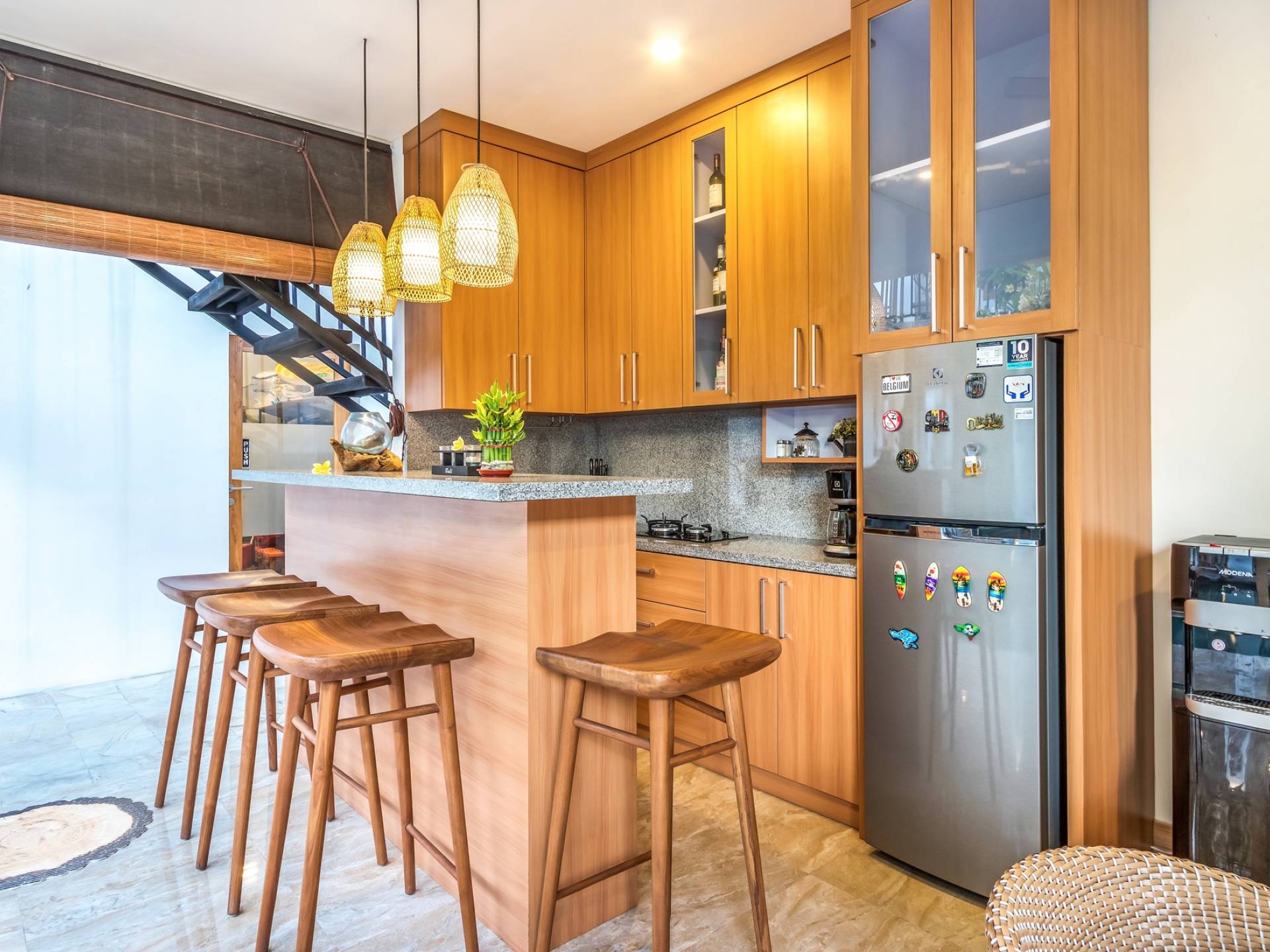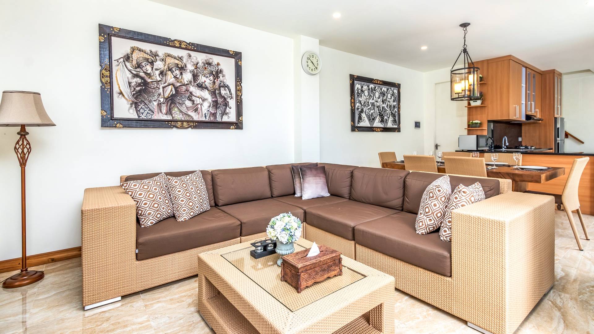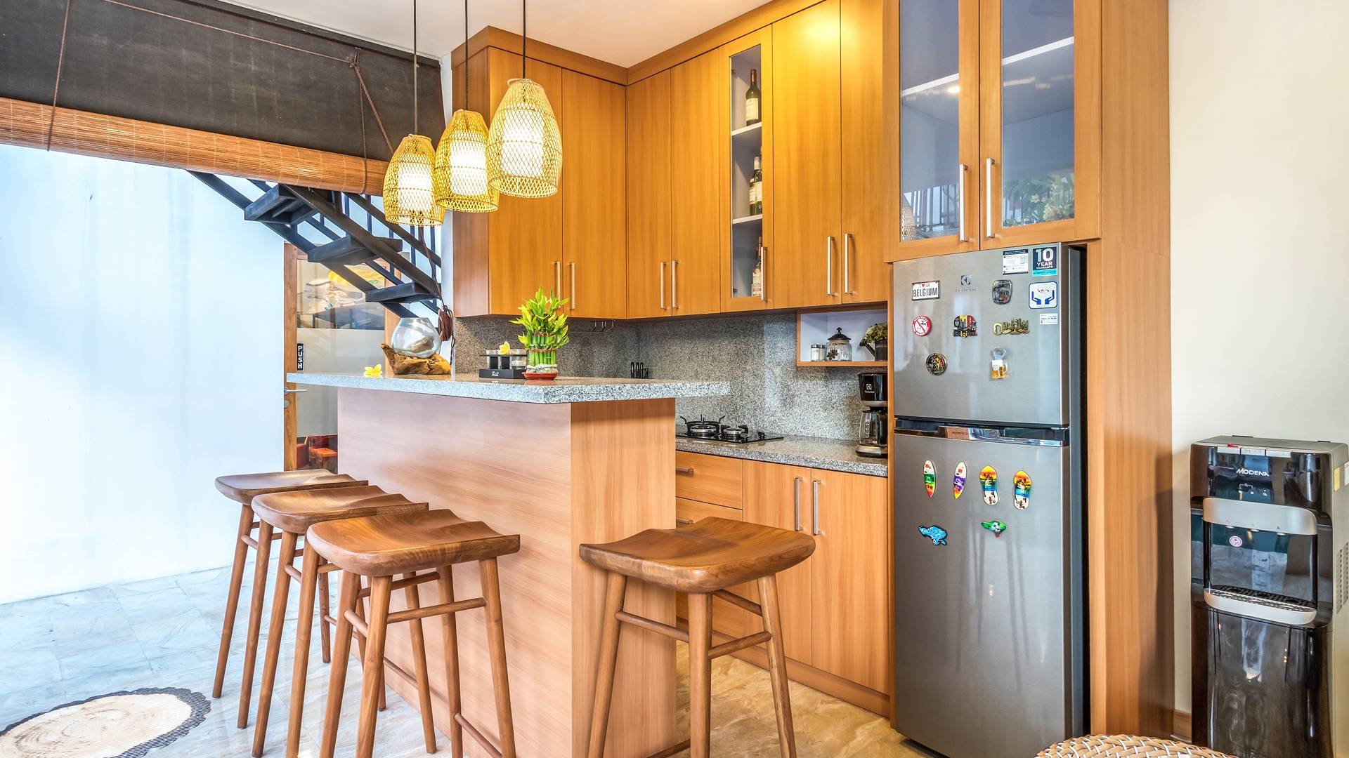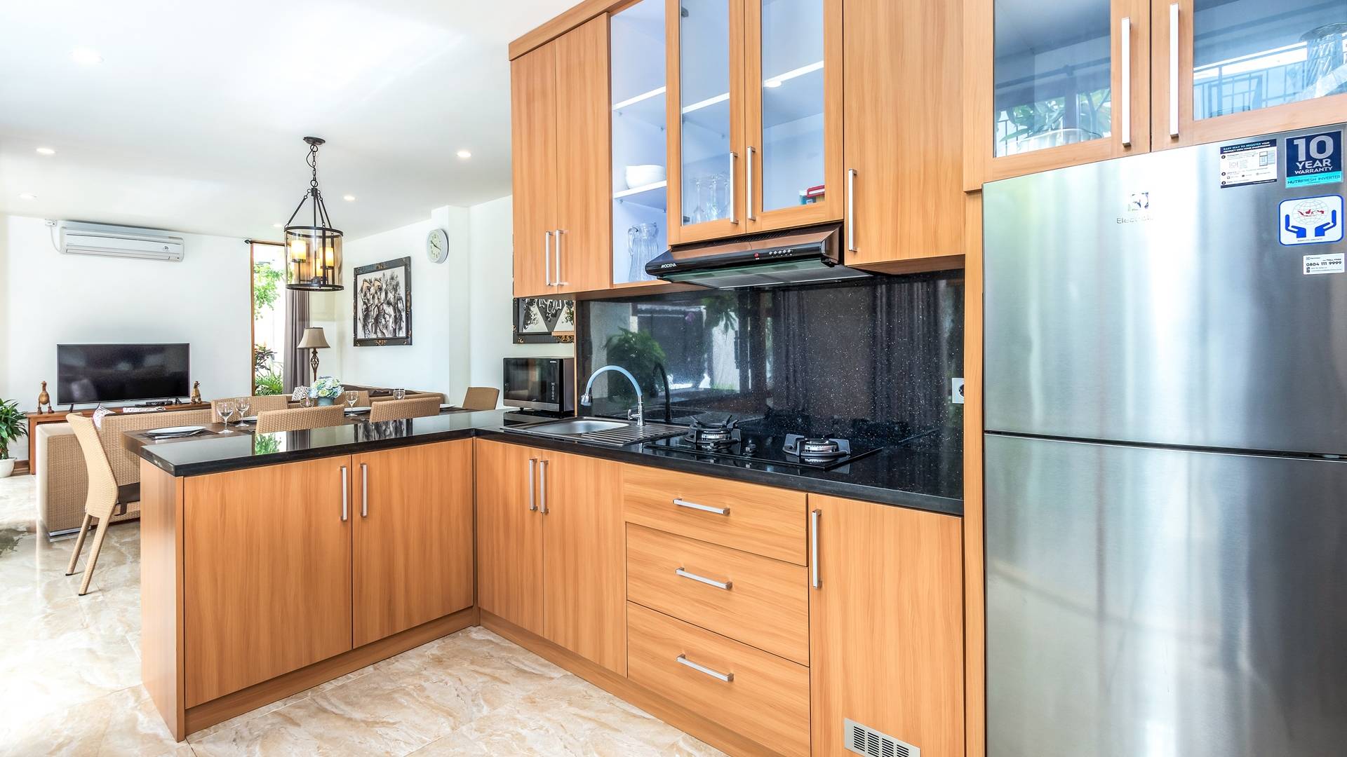 Вилла Amrina может похвастаться закрытой гостиной и столовой, а также второй полностью оборудованной кухней. Идеально подходит для приготовления вкусных блюд в помещении с кондиционером. Вы можете с комфортом поужинать за большим обеденным столом. Гостиная оборудована удобными диванами и современной развлекательной системой для спокойной ночи и отдыха после долгого дня приключений на острове.