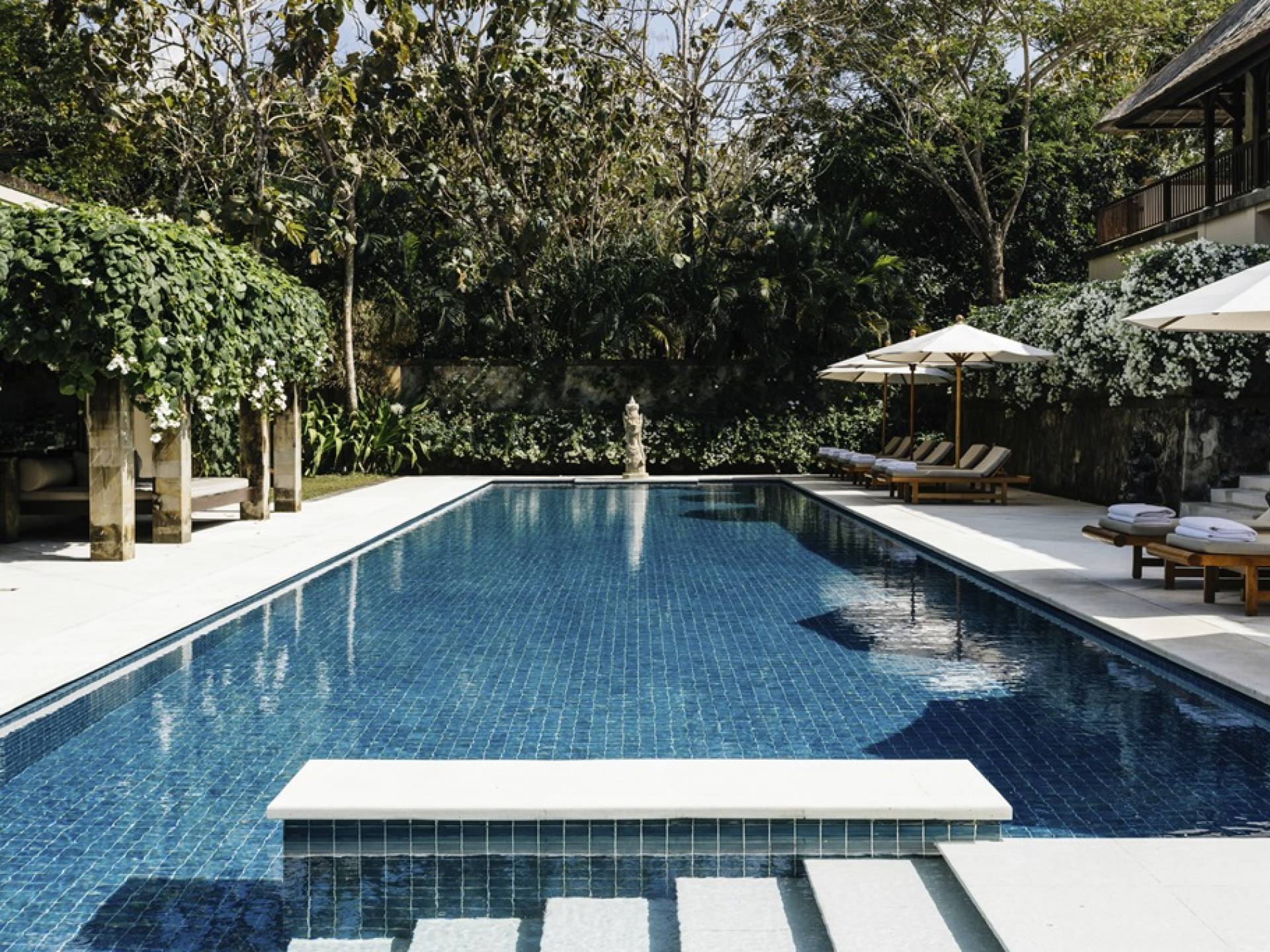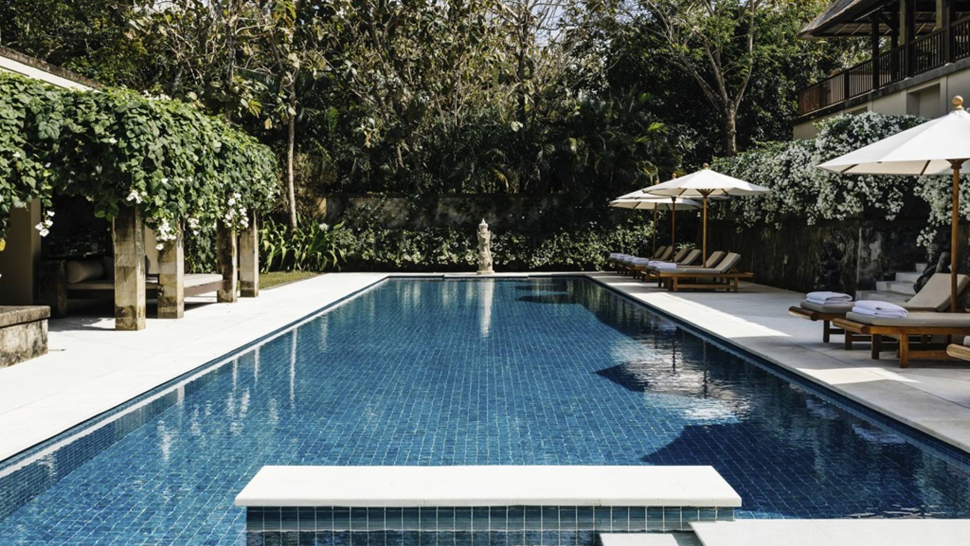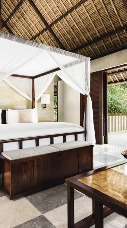 Тихие уединенные виллы Aman в Нуса-Дуа расположены на самом южном полуострове Бали, в окружении пальм и садов с бассейнами, окруженными ароматными деревьями франжипани. Архитектура, построенная по традиционным балийским мотивам с использованием местного дерева и камня, дополняется работами местных художников.