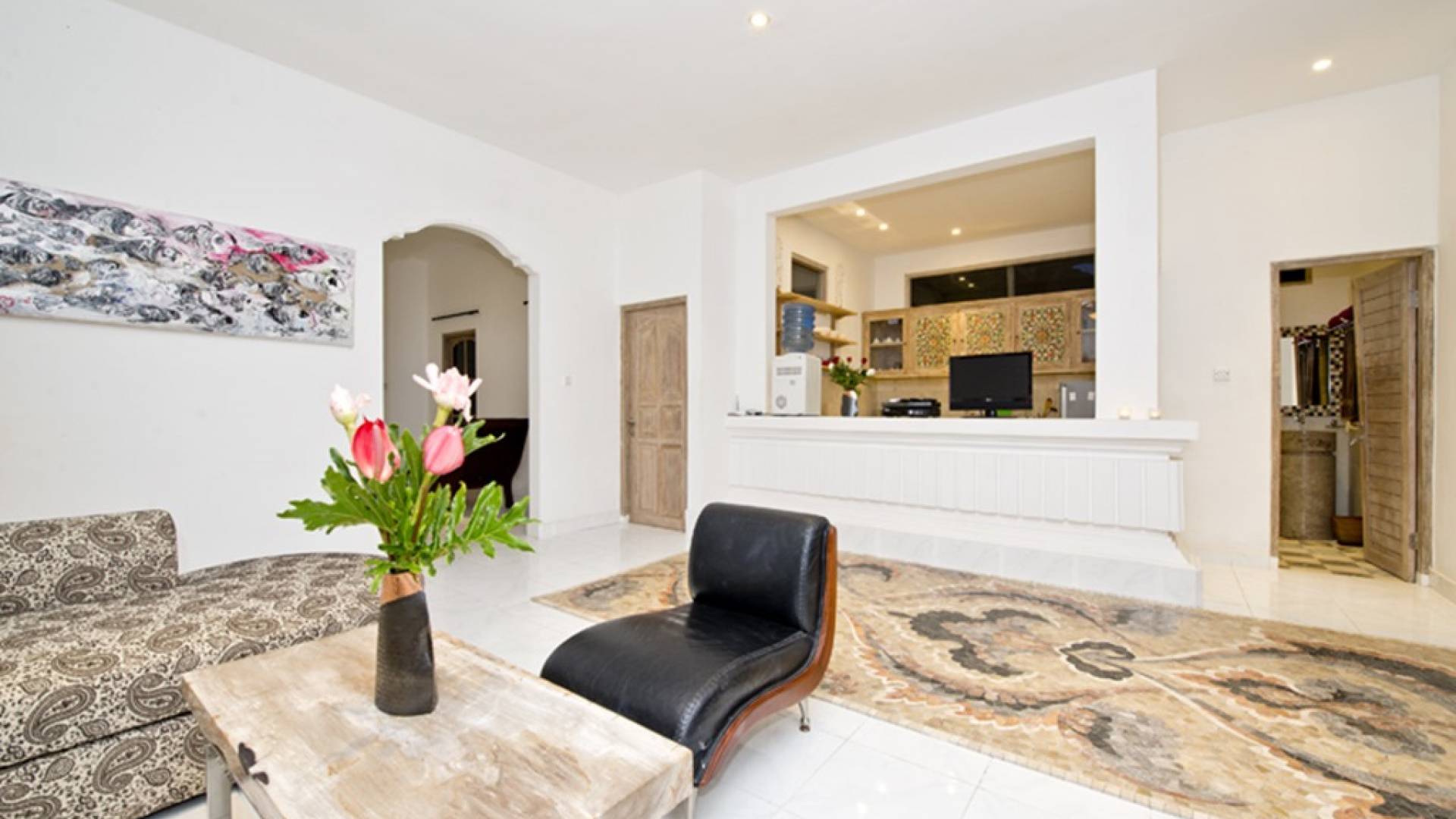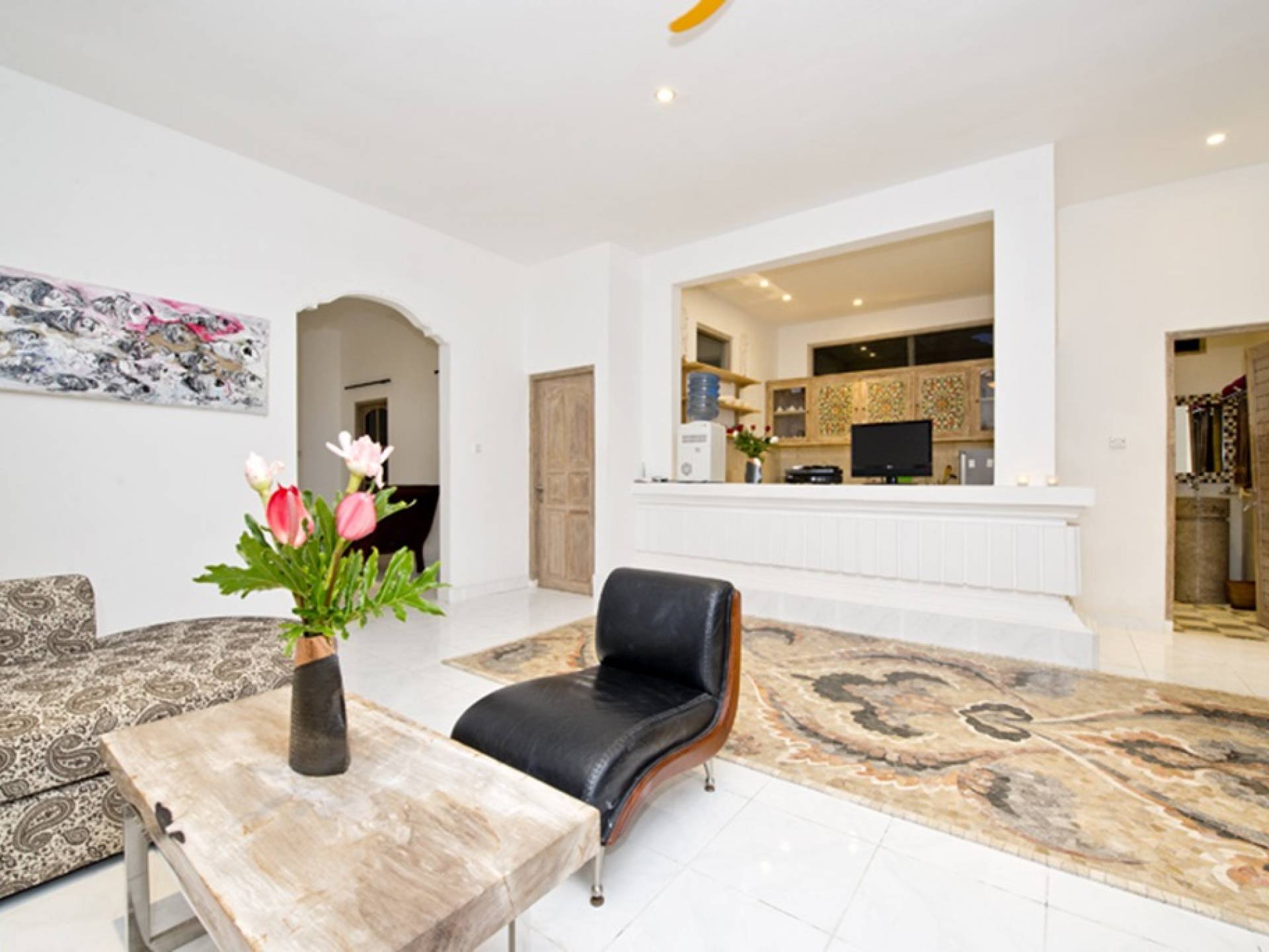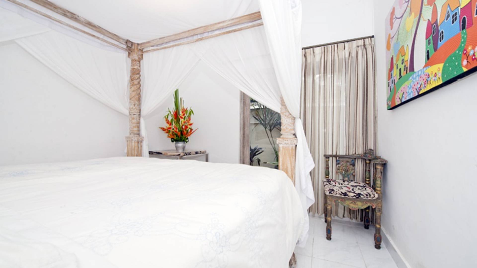 Деревянная фурнитура с ручной росписью, стильные произведения современного искусства, просторная гостиная / столовая и частный бассейн - вот лишь некоторые из замечательных преимуществ, дополняющих городской оазис. Вилла Орхидея - идеальное место для уединения от мирского стресса. Проводите драгоценное время с друзьями и семьей. Недвижимость площадью более 300 квадратных метров расположена в самом центре Санура, на восточном побережье Бали, всего в 20 минутах езды от аэропорта Нгурах-Рай. Тихие, ленивые пляжи, кафе на набережной Санура, магазины и рестораны находятся всего в нескольких минутах ходьбы от виллы. Расположение Villa Orchid также выгодно от очень небольшого расстояния от прекрасного песчаного пляжа. На вилле Orchid с 3 спальнями (2 ванные комнаты) и кроватями размера «king-size» могут с комфортом разместиться семьи и группы до 6 человек. На всей территории предоставляется Wi-Fi. Также имеется прачечная. Все в этой вилле создано для того, чтобы ваш отдых был максимально расслабляющим.