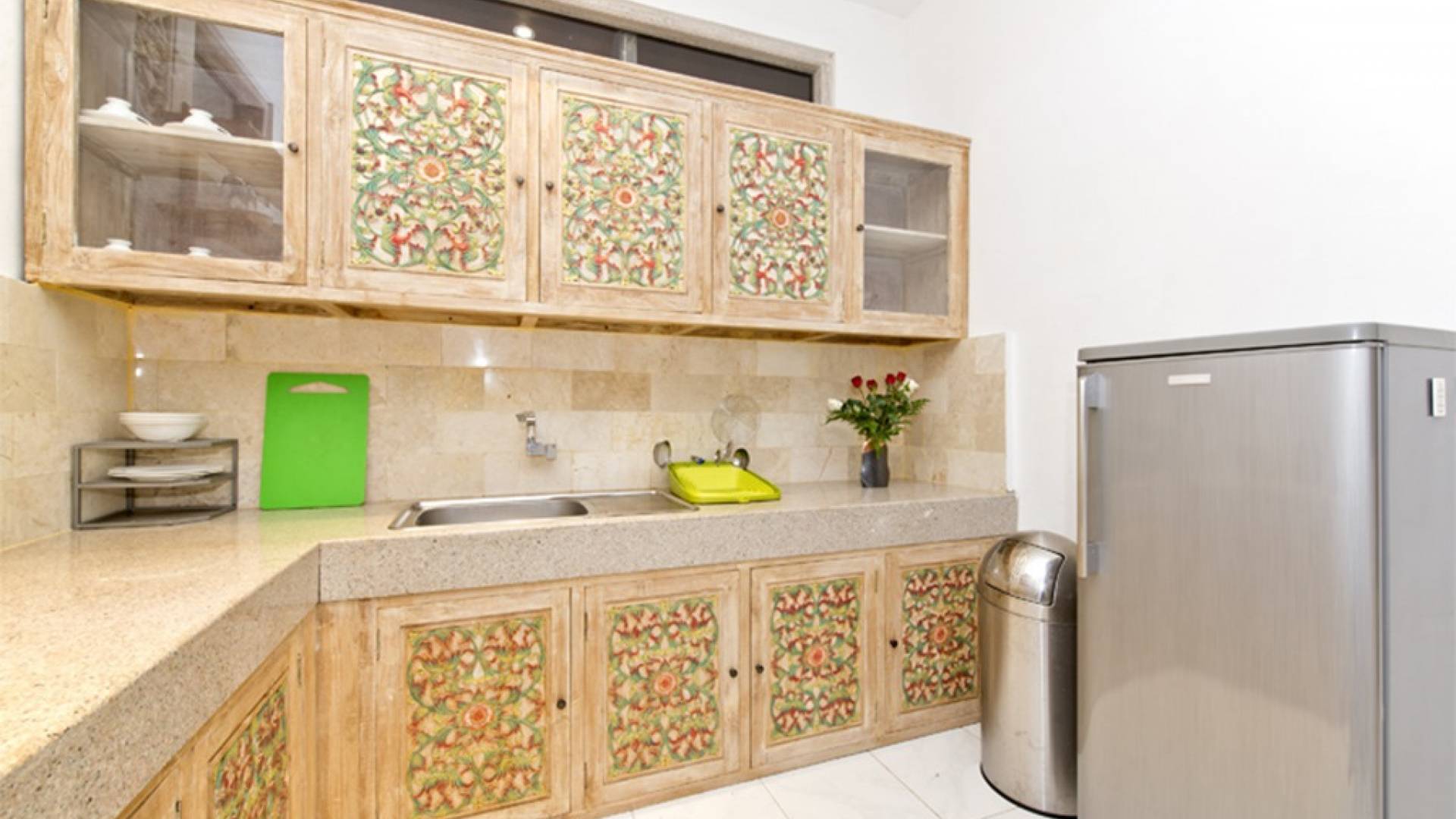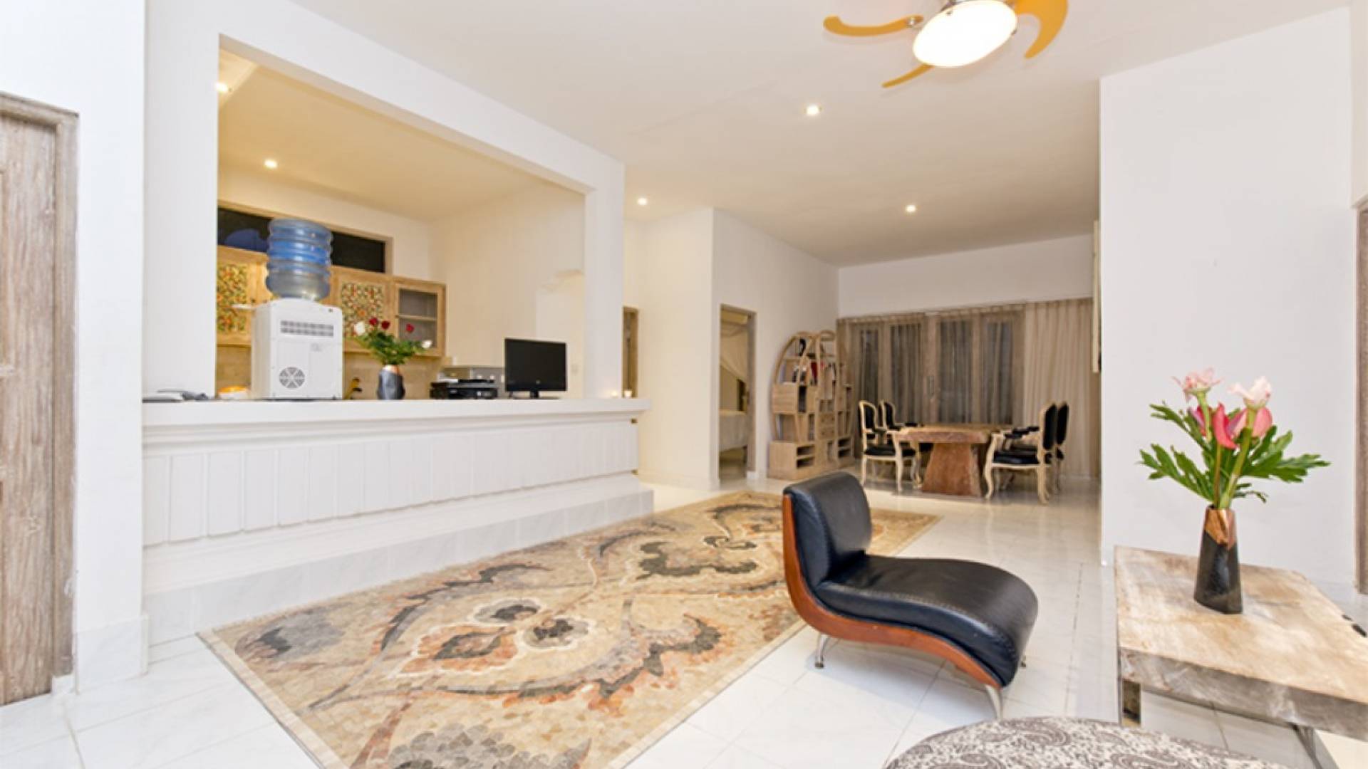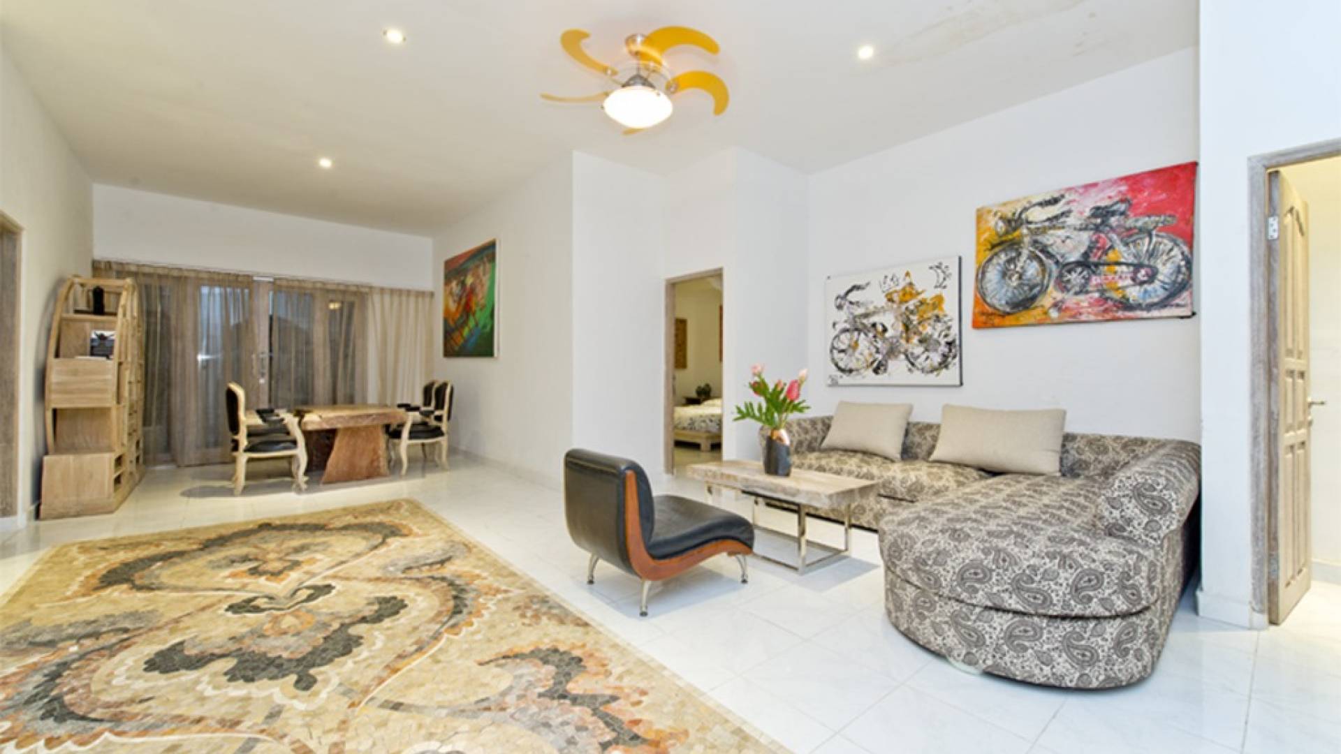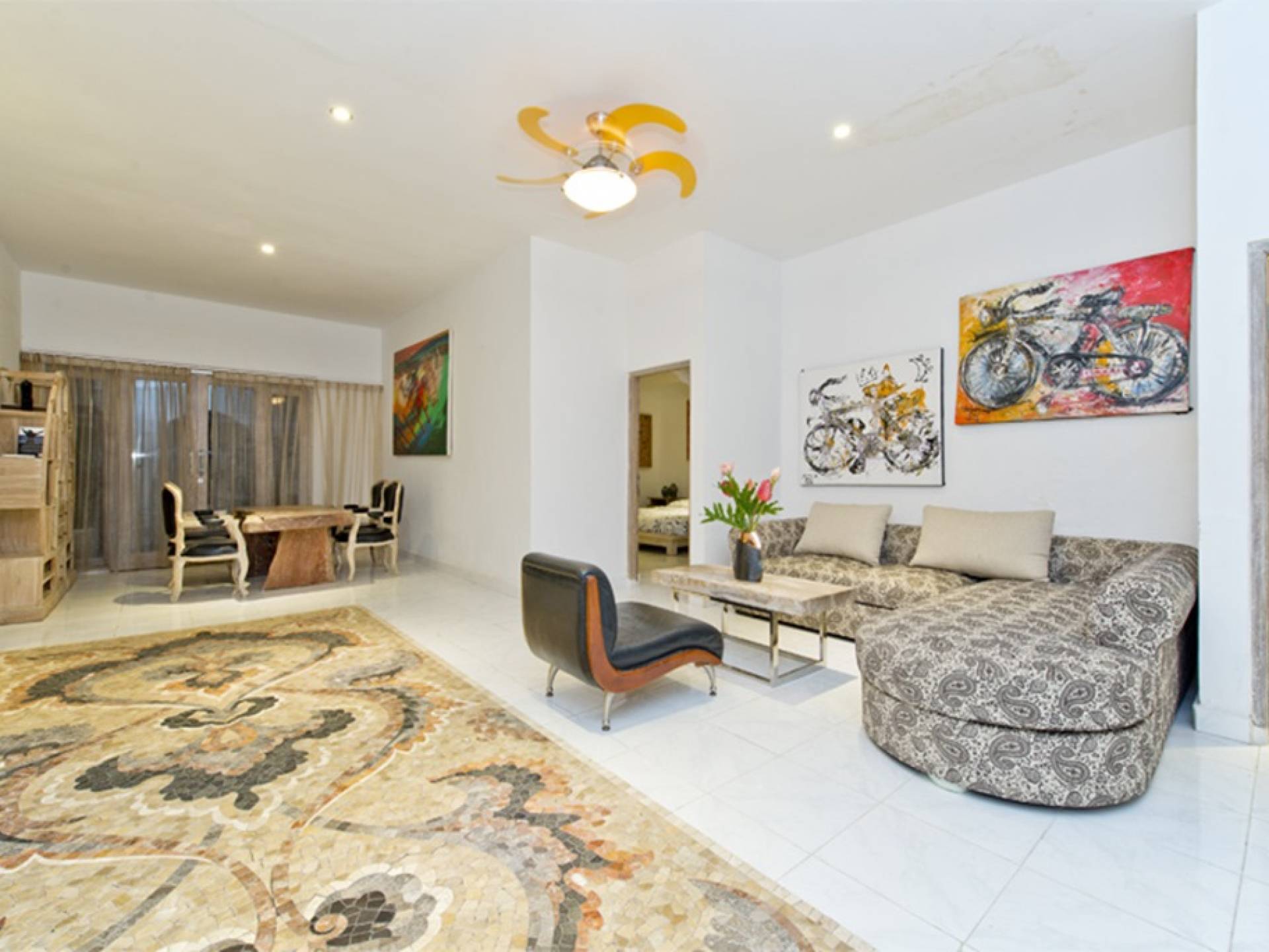 Деревянная фурнитура с ручной росписью, стильные произведения современного искусства, просторная гостиная / столовая и частный бассейн - вот лишь некоторые из замечательных преимуществ, дополняющих городской оазис. Вилла Орхидея - идеальное место для уединения от мирского стресса. Проводите драгоценное время с друзьями и семьей. Недвижимость площадью более 300 квадратных метров расположена в самом центре Санура, на восточном побережье Бали, всего в 20 минутах езды от аэропорта Нгурах-Рай. Тихие, ленивые пляжи, кафе на набережной Санура, магазины и рестораны находятся всего в нескольких минутах ходьбы от виллы. Расположение Villa Orchid также выгодно от очень небольшого расстояния от прекрасного песчаного пляжа. На вилле Orchid с 3 спальнями (2 ванные комнаты) и кроватями размера «king-size» могут с комфортом разместиться семьи и группы до 6 человек. На всей территории предоставляется Wi-Fi. Также имеется прачечная. Все в этой вилле создано для того, чтобы ваш отдых был максимально расслабляющим.