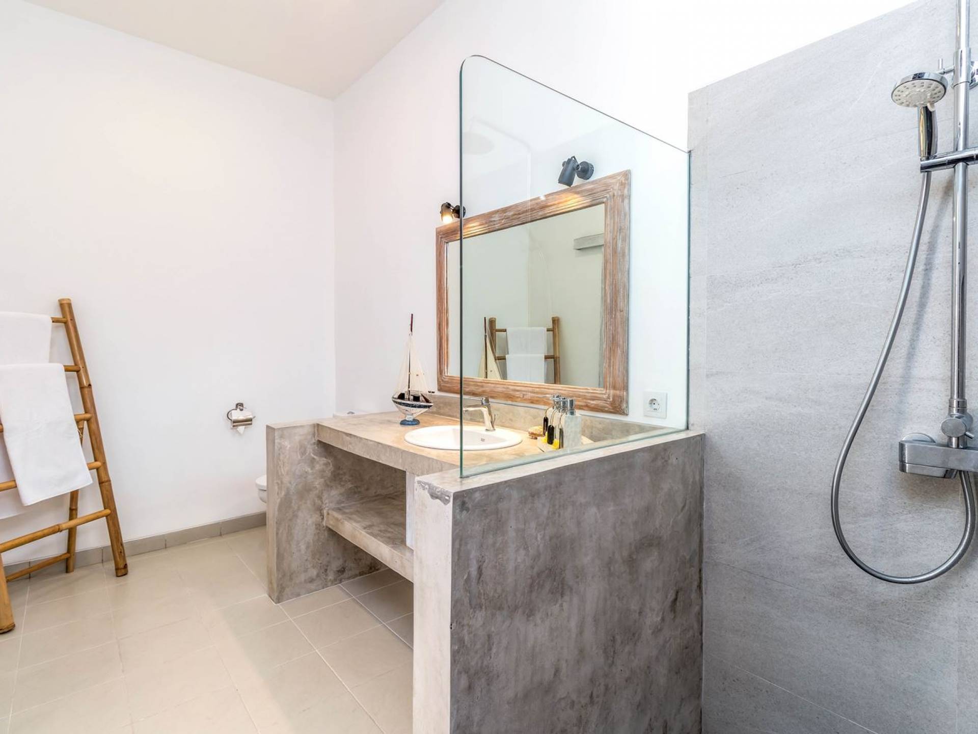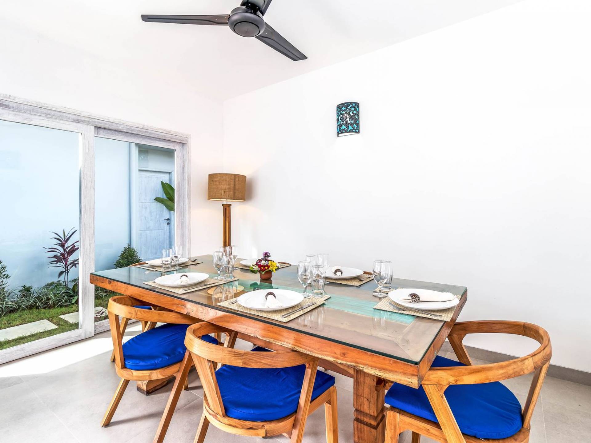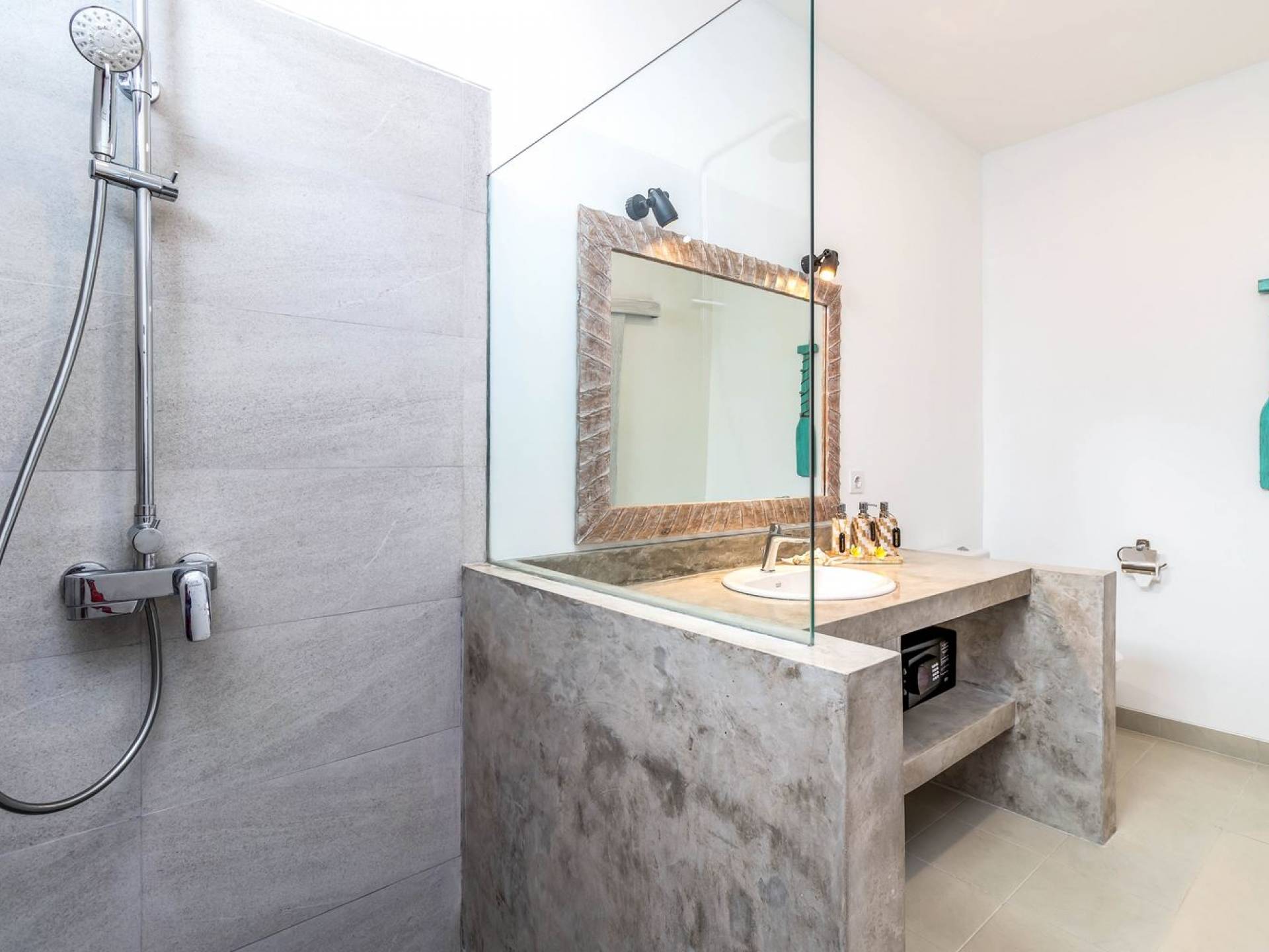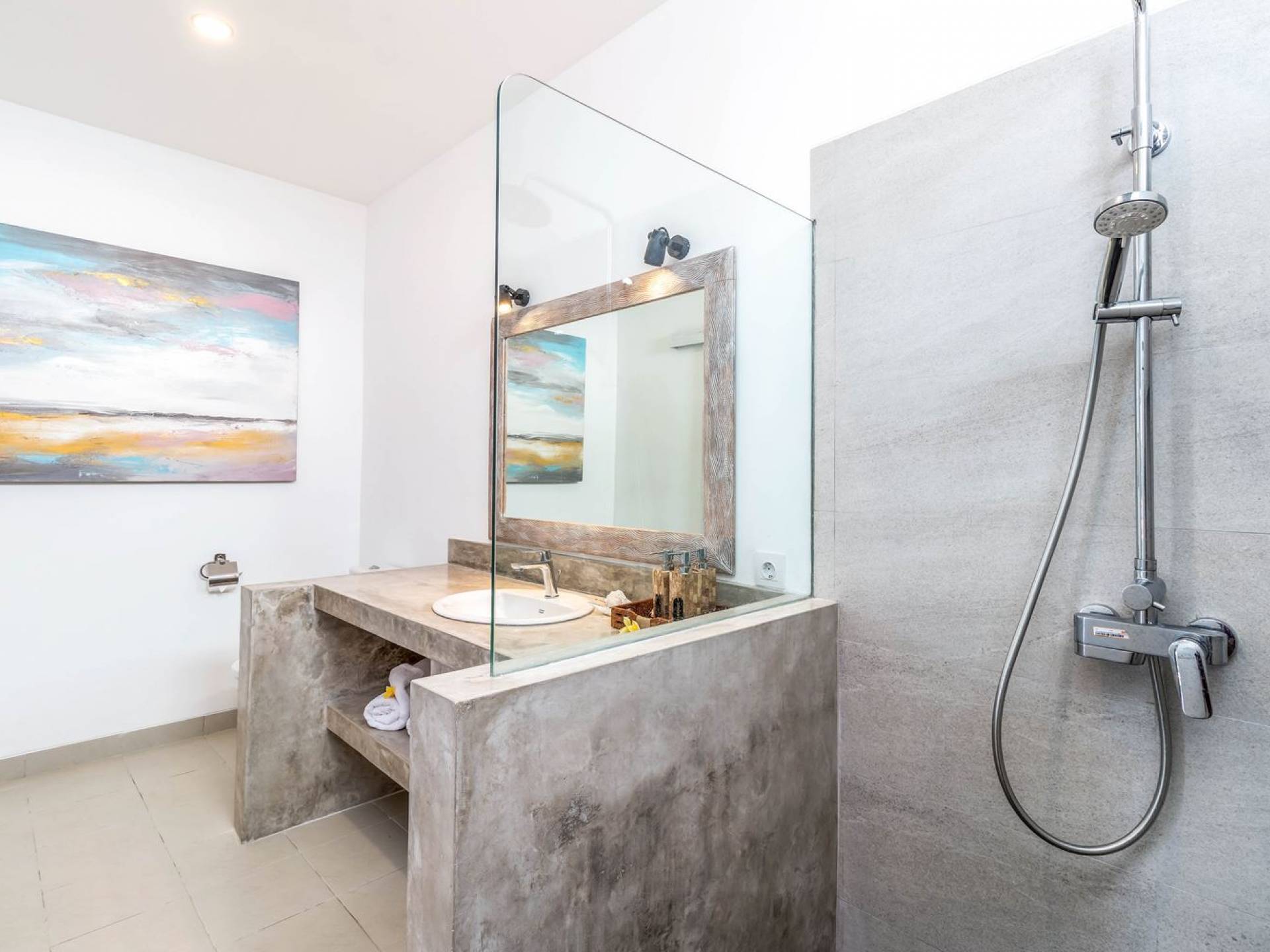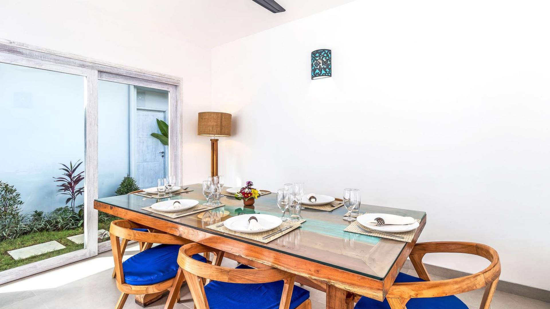 3 спальни расположены вокруг бассейна со стеклянными дверями, которые открываются на открытую площадку, где вы можете прыгнуть прямо в бассейн. Каждый номер оснащен кондиционером и индивидуально оформлен в элегантном тропическом стиле. Что у них общего, так это синий цвет, пропитанный декоративными элементами и другими деталями. В каждом номере есть большая и удобная кровать размера "queen-size" для сна, есть шкафы из побеленного дерева, в которые можно положить одежду и самые ценные вещи, во всех номерах есть сейф. Просторные ванные комнаты оборудованы тропическим душем, ручным душем, умывальником и туалетом. 2 спальни соединены между собой, что отлично подходит для семей, желающих оставаться рядом со своими детьми.