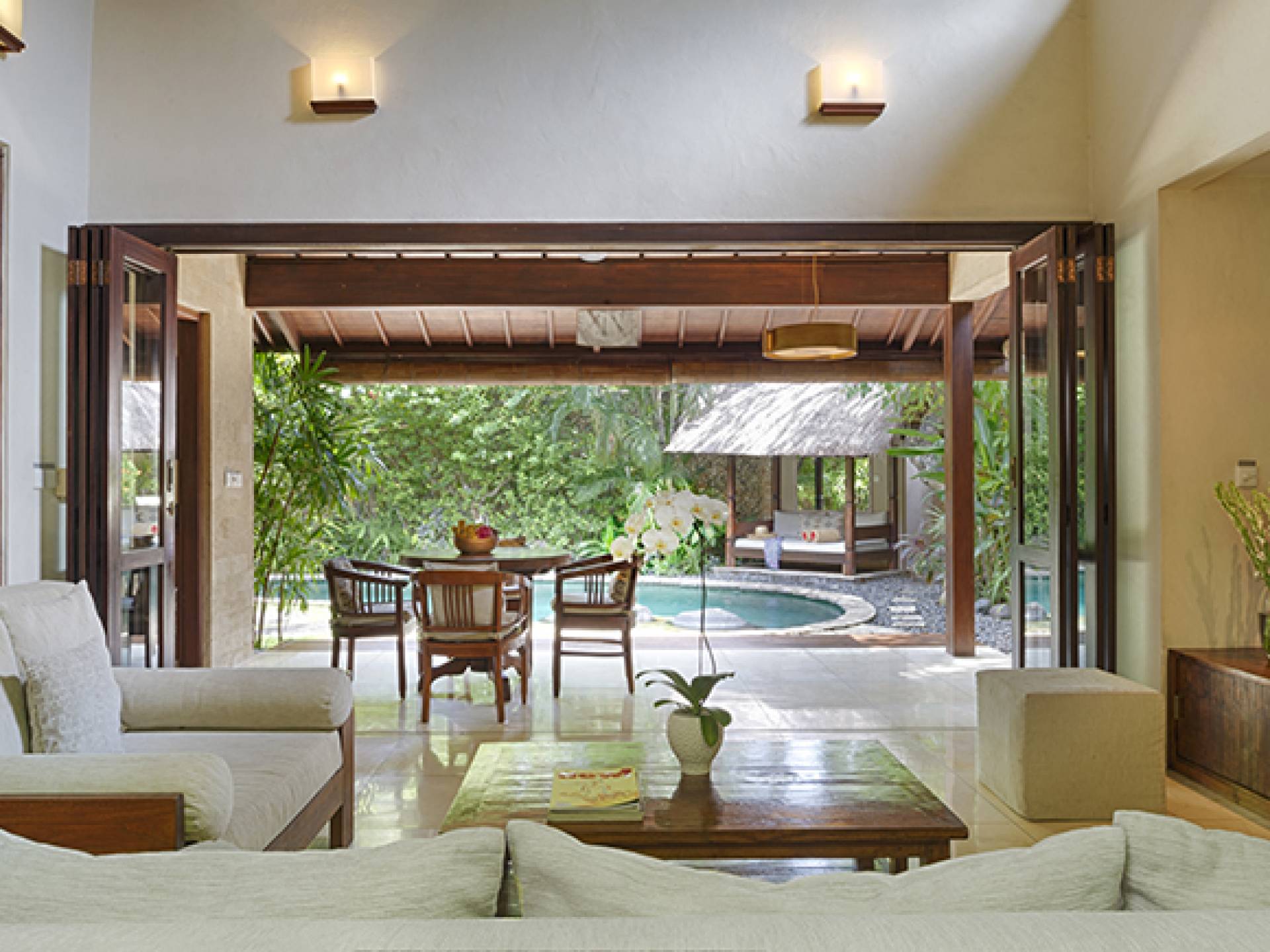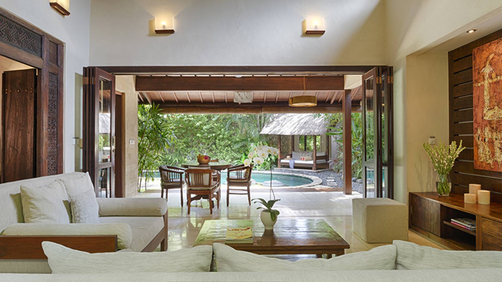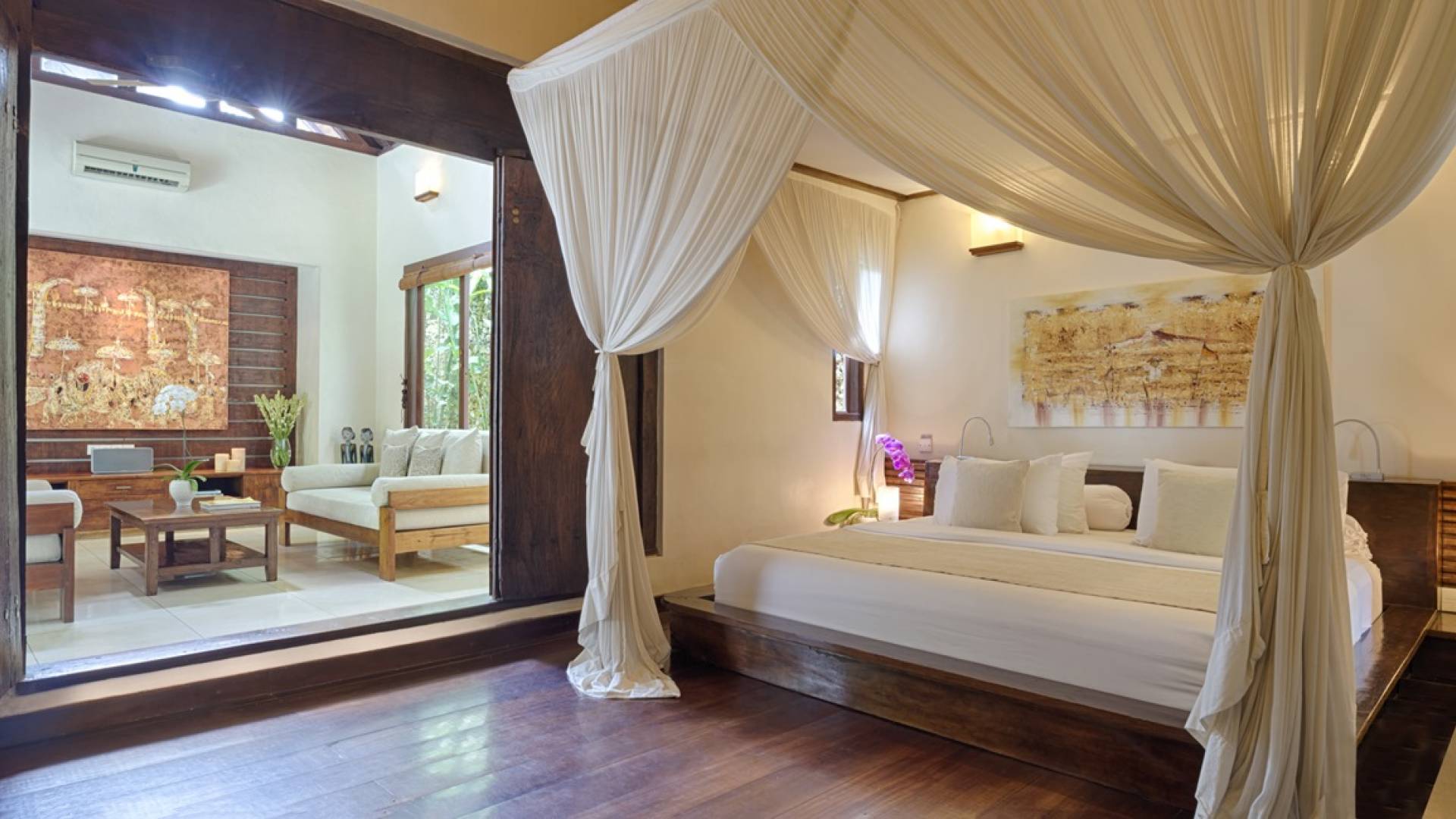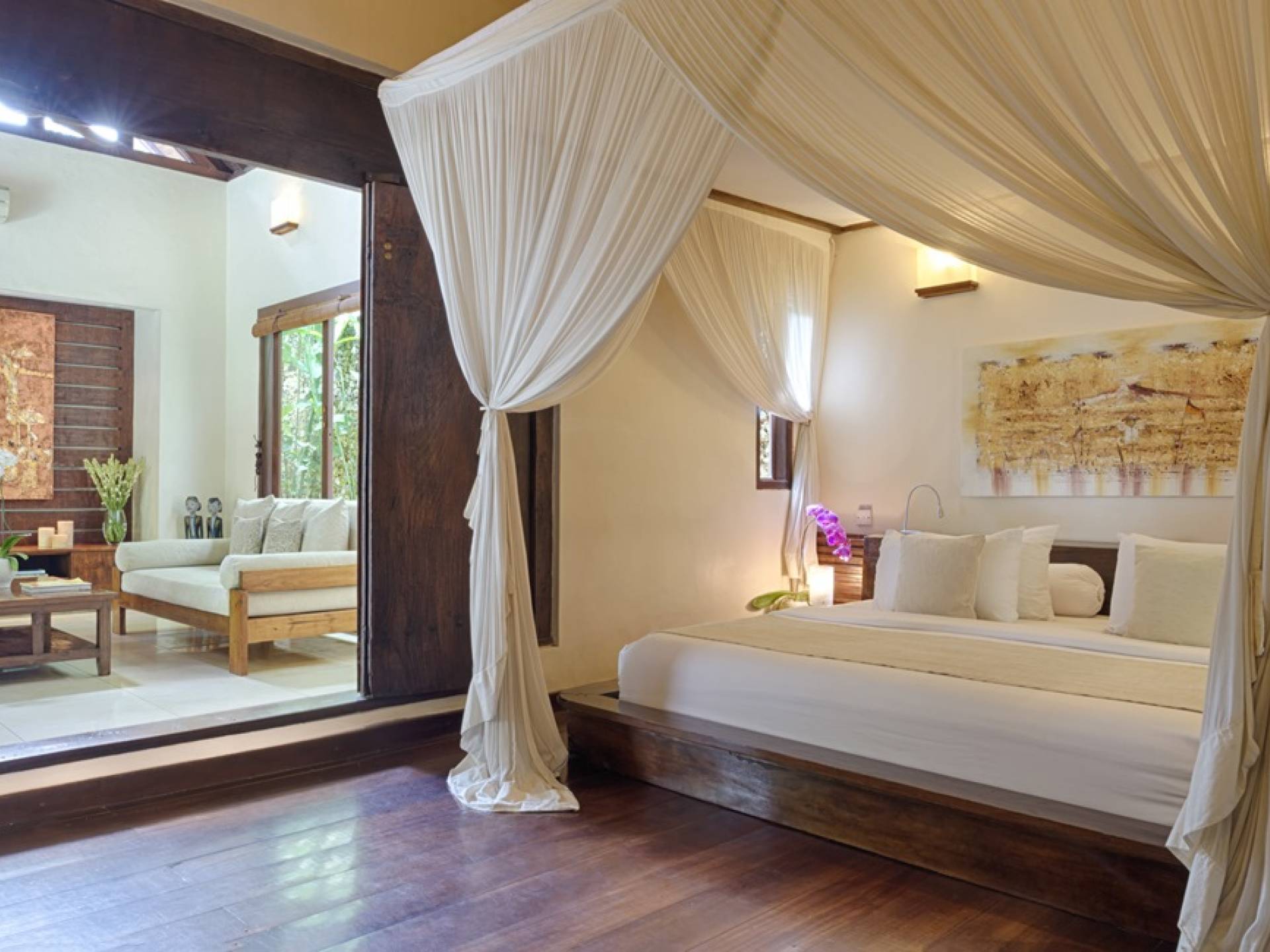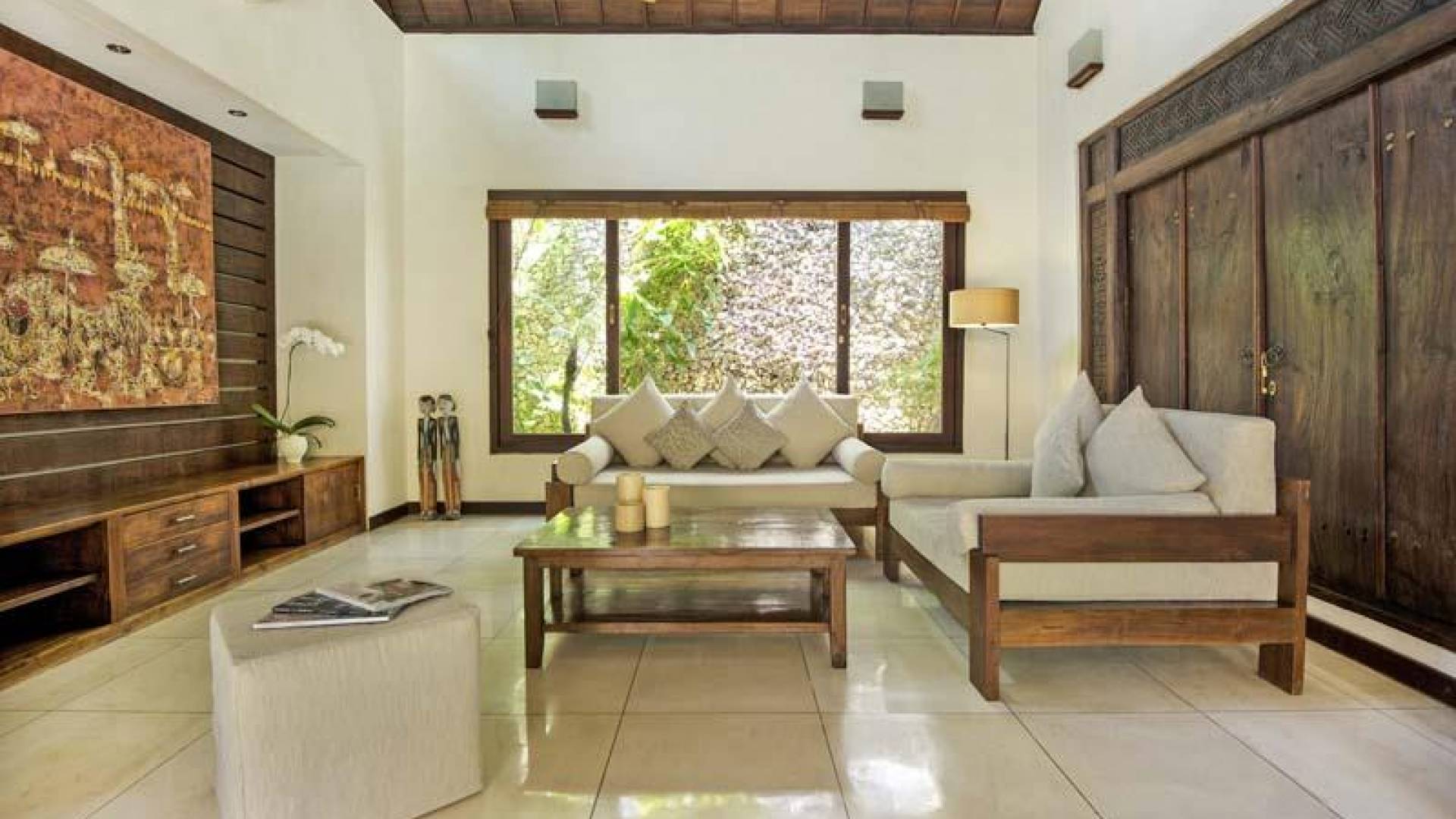 В гостиной зоне современный дизайн сочетается с роскошью, натуральным постельным бельем, произведениями искусства коренных народов и традиционными балийскими акцентами. Естественный свет проникает во все внутренние помещения, а вилла отличается открытой планировкой с высокими потолками и раздвижными стеклянными дверями, которые позволяют мягкому тропическому бризу циркулировать по вилле. Конечно, вы можете выбрать изоляцию от окружающей среды и насладиться арендой на время отпуска с кондиционером.