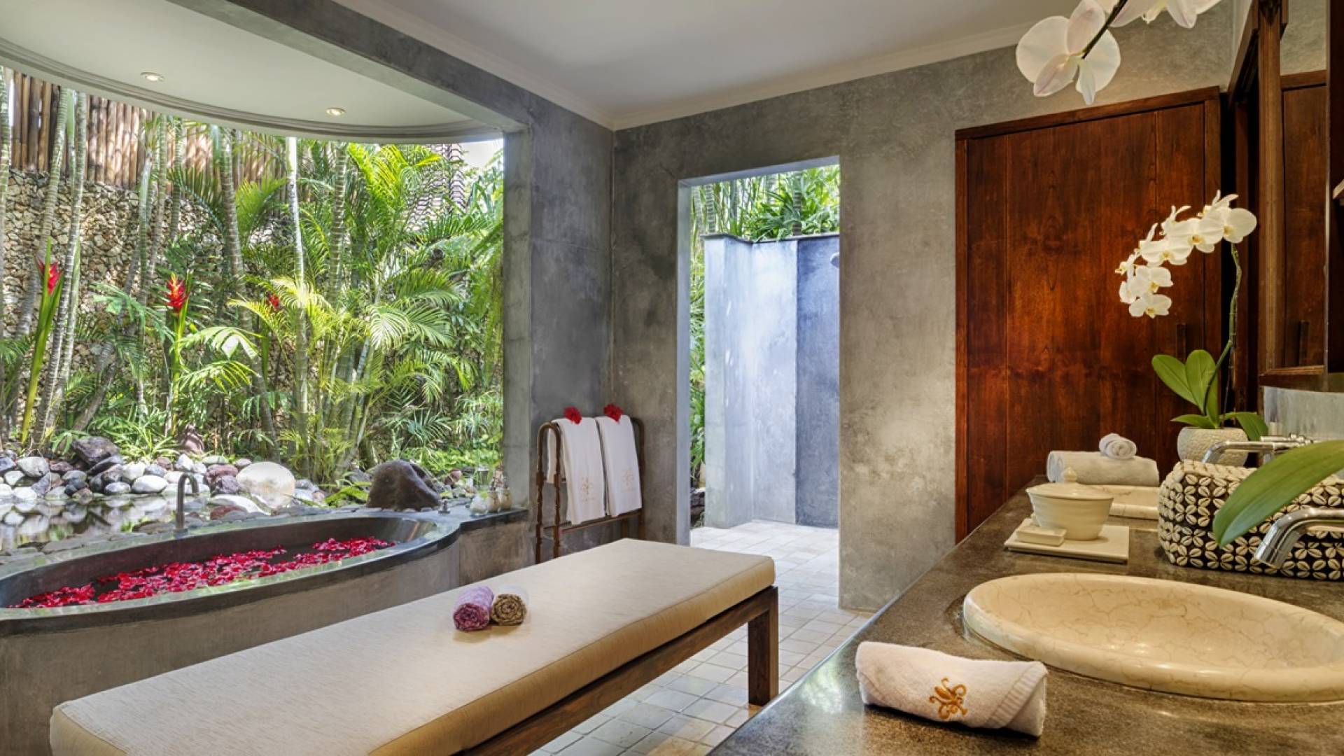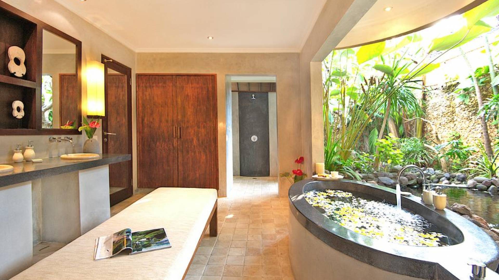 Пройдите через великолепную резную старинную яванскую дверь, заключенную в потрясающую замысловатую раму, с изумительной спальней идеальных пропорций с кроватью размера «king-size». А сюрпризы на Вилле Кубу IX бесконечны. Задержите дыхание, войдя в ванную комнату на вилле, где природа и роскошь сочетаются с большой ванной из терраццо, гармонично расположенной рядом с прудом с водой и скалами посреди таинственных садов в джунглях. Посмотрите на картинку и представьте себя и своего любимого человека этой красотой, которую невозможно описать словами.
