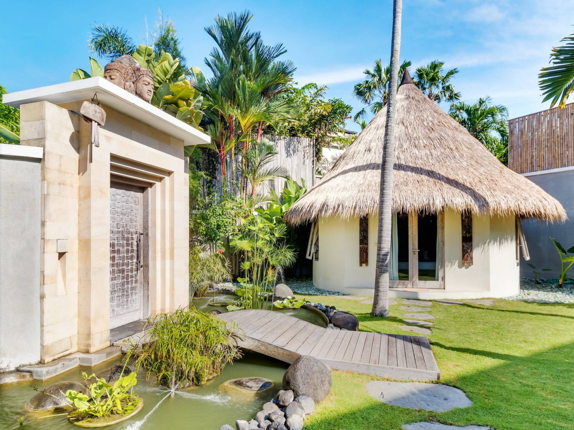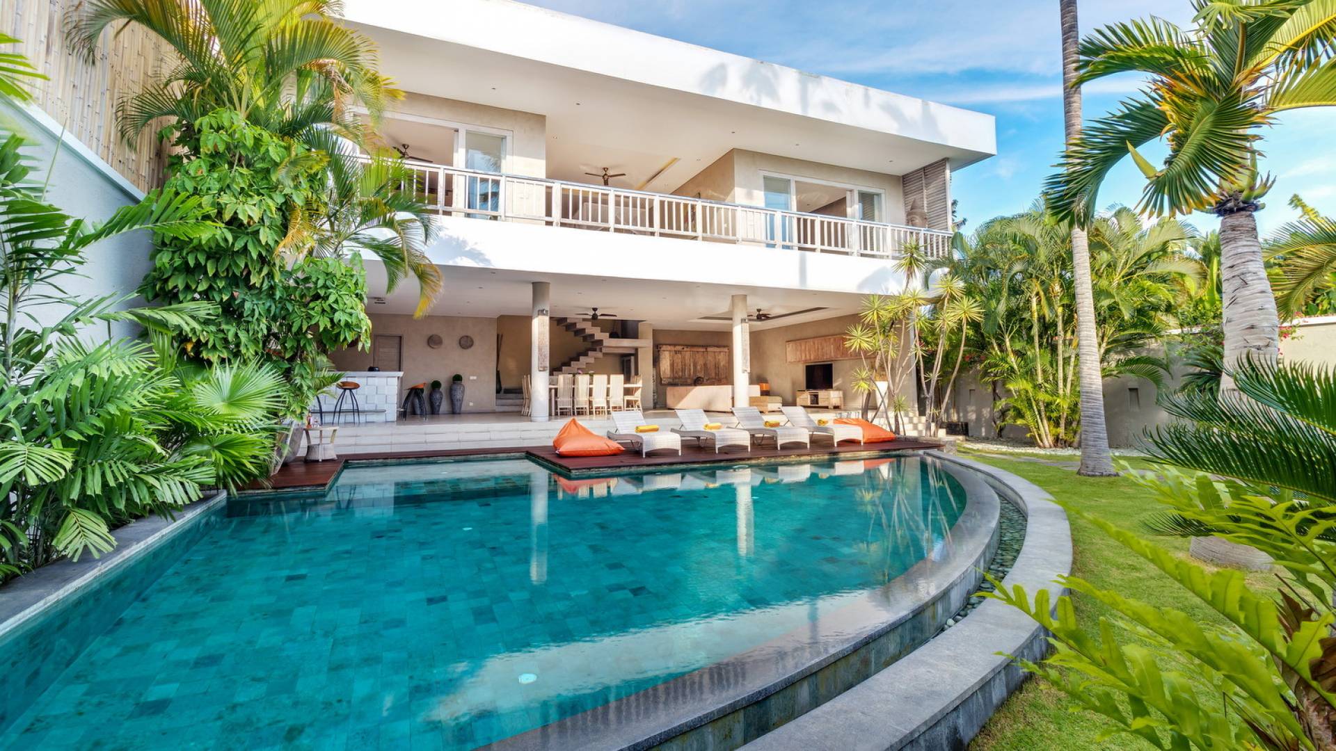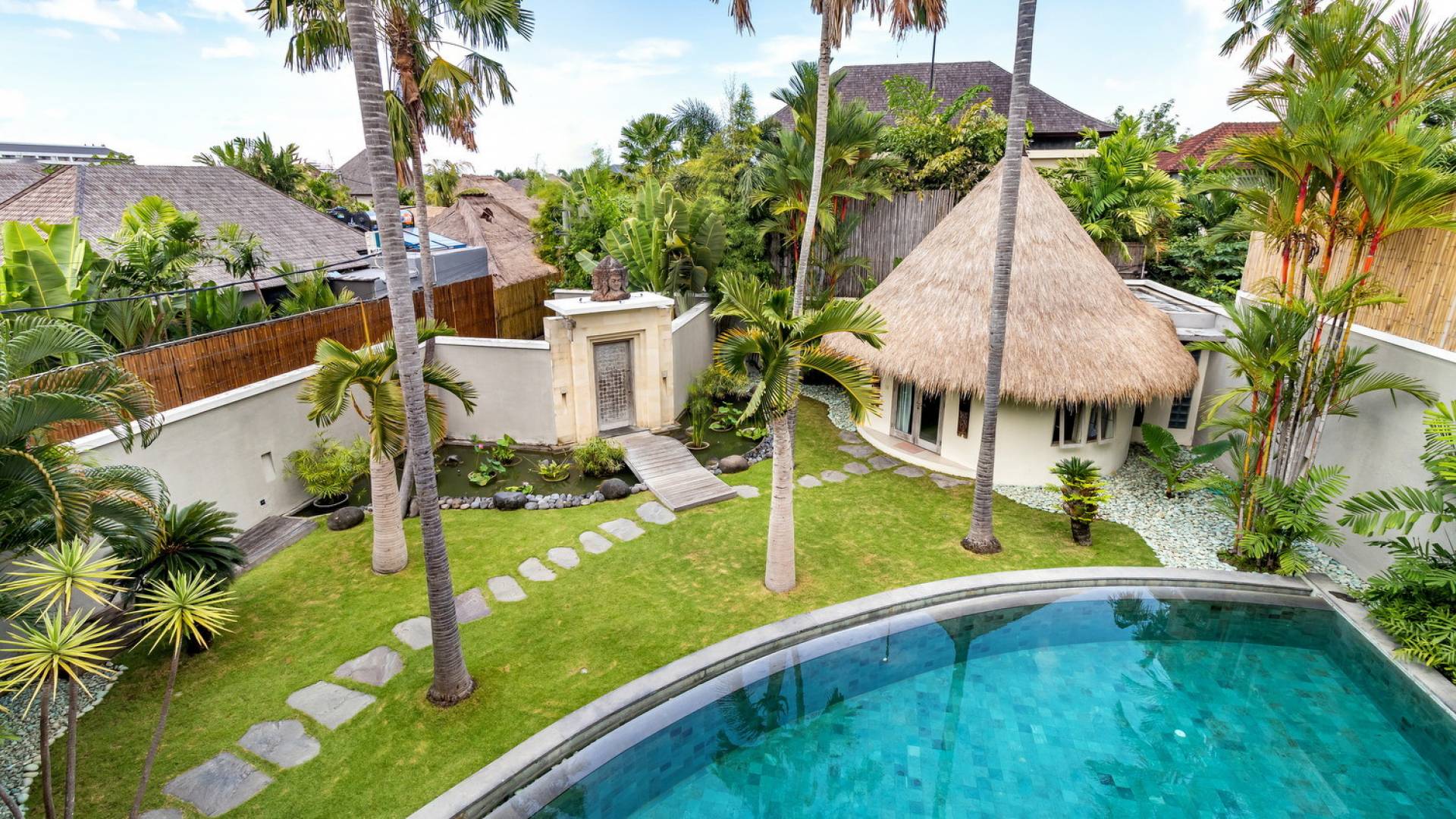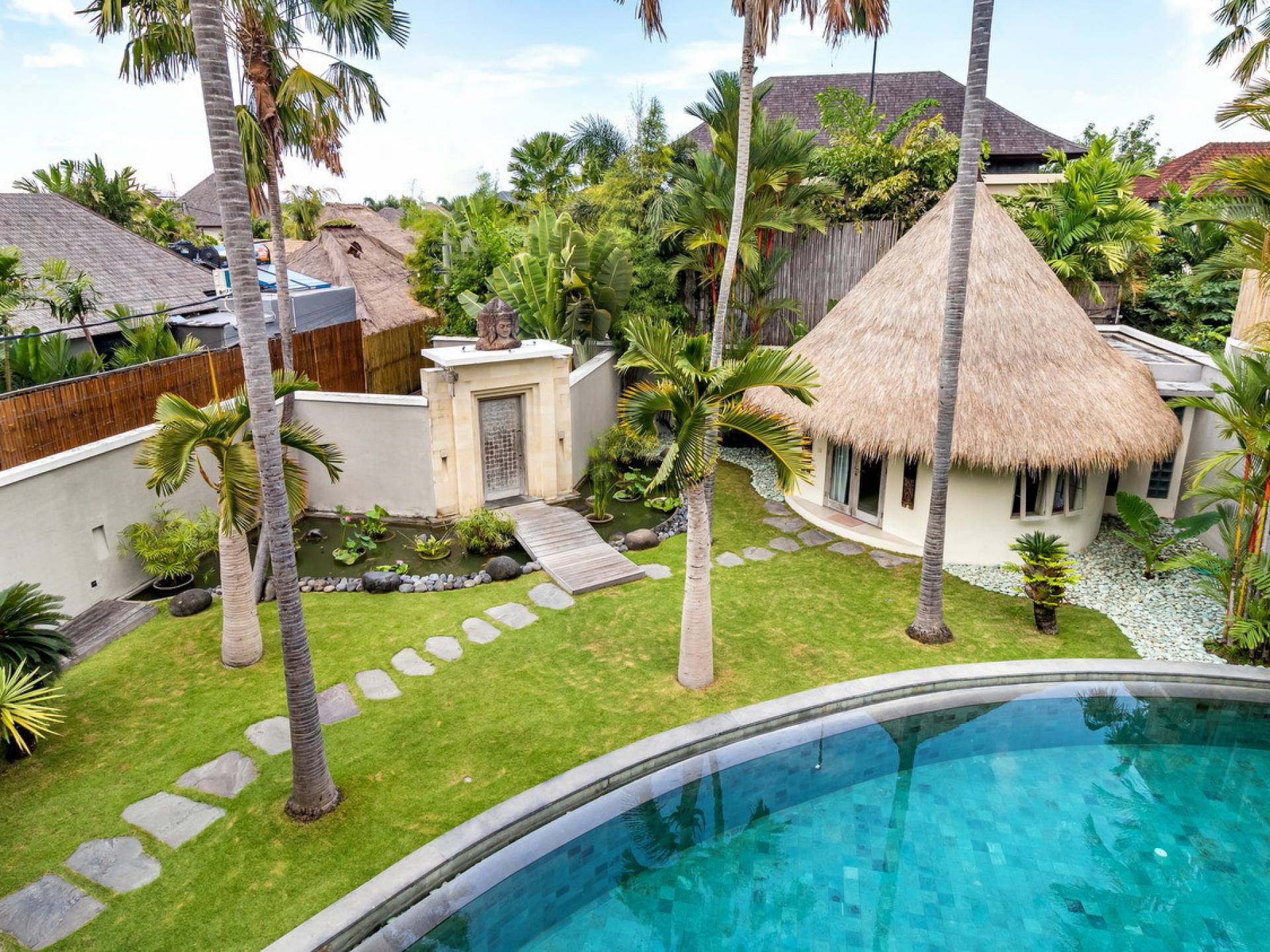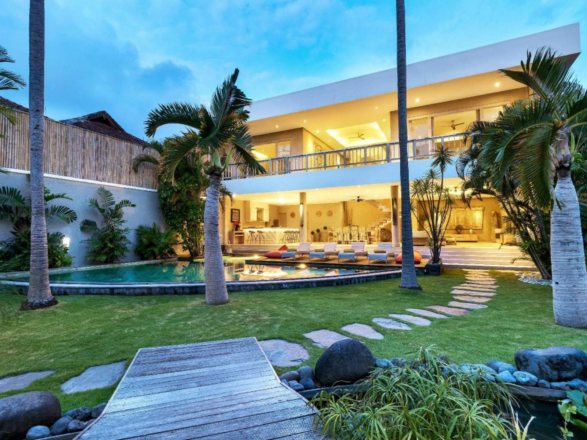 Вилла Lisa представляет собой современный двухэтажный павильон, увенчанный зеленью на крыше, которая спускается каскадом в пышный тропический сад. Купаясь в треугольном бассейне или загорая на шезлонгах у бассейна, вам захочется провести отпуск прямо в Эдемском саду. Тихий пруд с лотосами, качающиеся пальмы и более экзотическая зелень растут вокруг просторного сада, обнесенного стеной, что создает идеальную атмосферу праздника для полного расслабления вместе с близкими вам людьми.