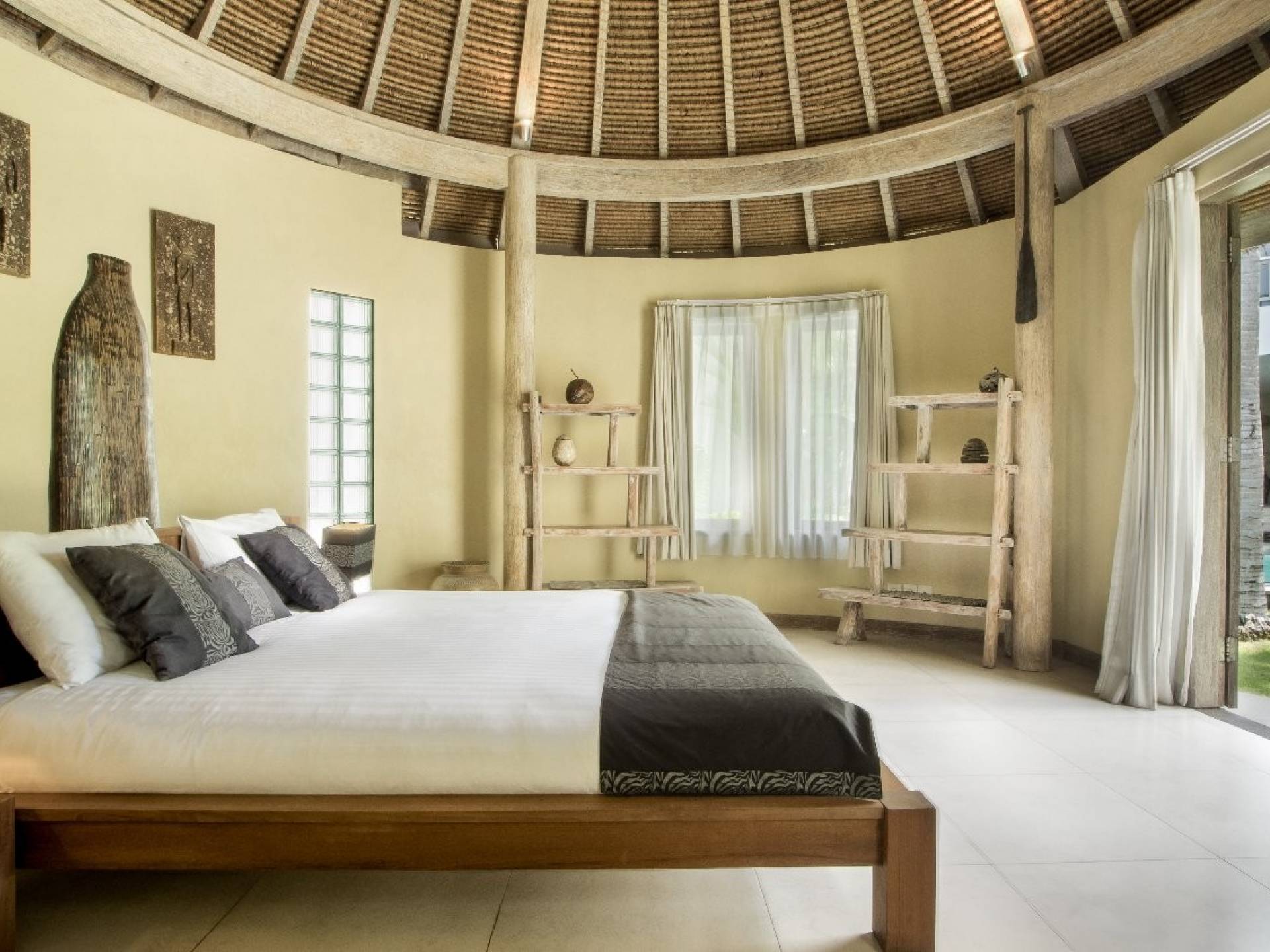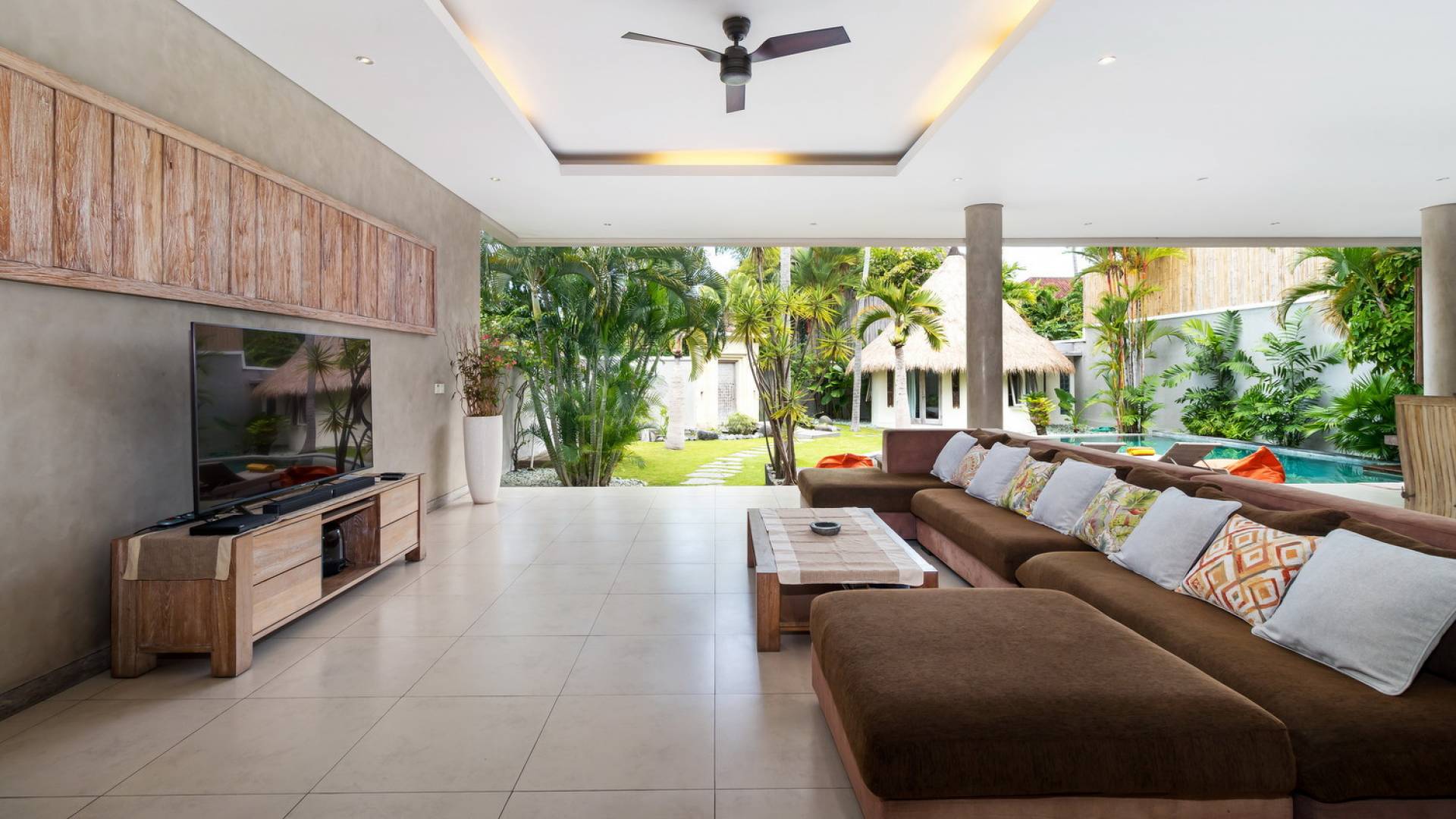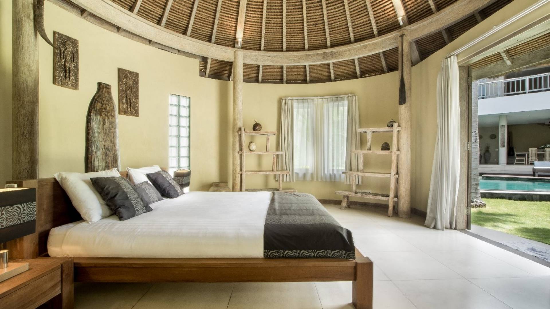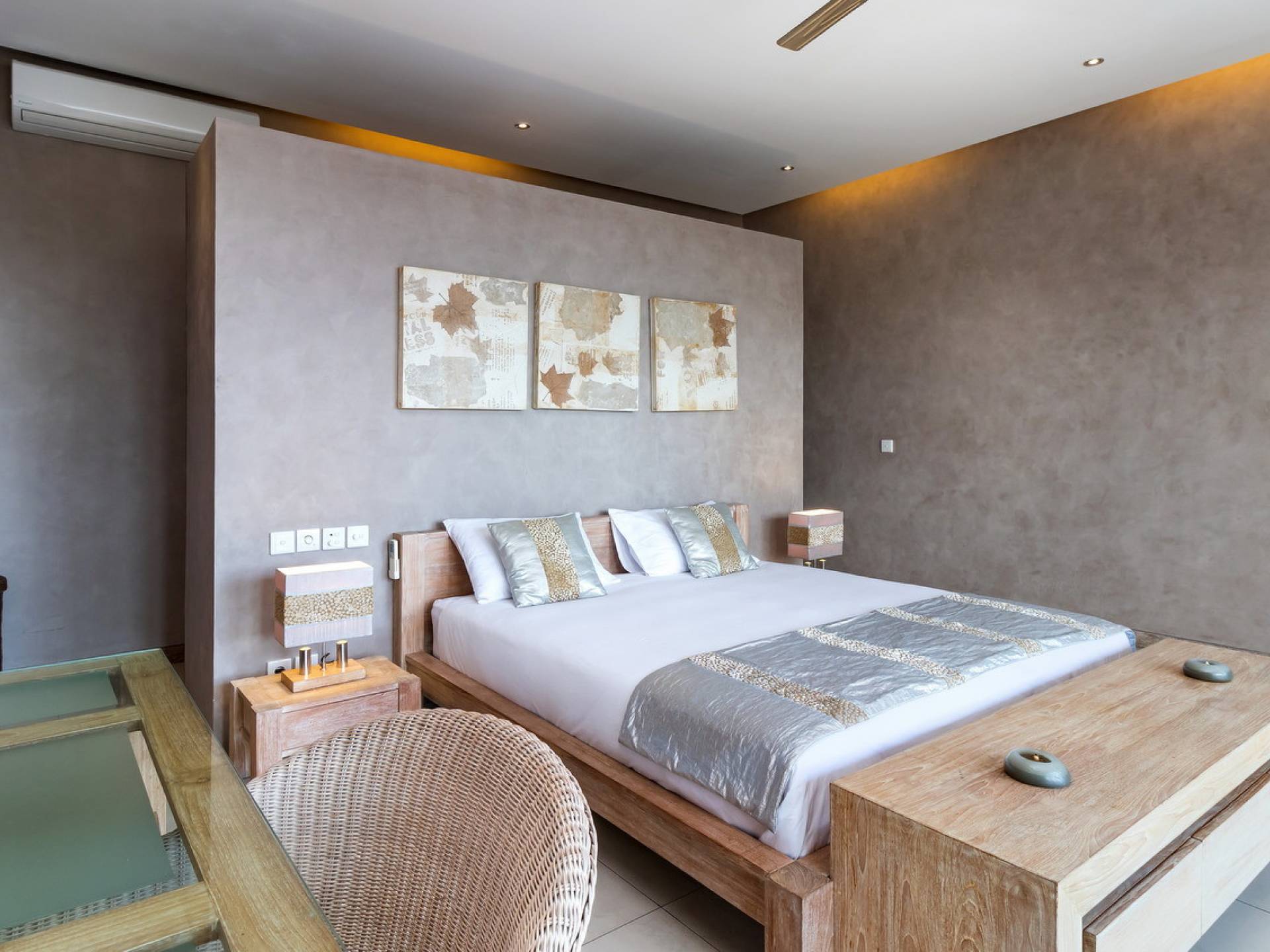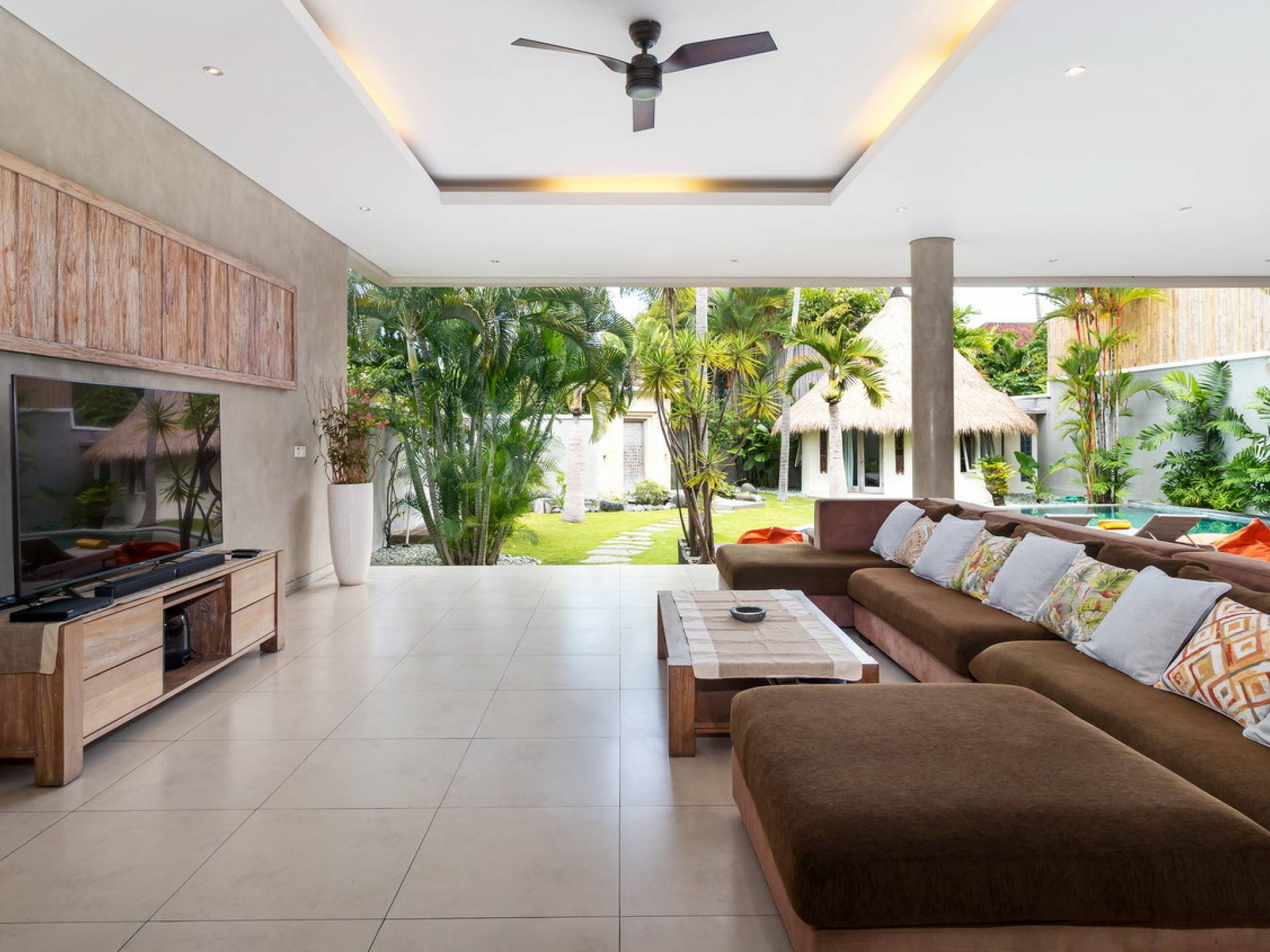 Вилла Lisa представляет собой современный двухэтажный павильон, увенчанный зеленью на крыше, которая спускается каскадом в пышный тропический сад. Купаясь в треугольном бассейне или загорая на шезлонгах у бассейна, вам захочется провести отпуск прямо в Эдемском саду. Тихий пруд с лотосами, качающиеся пальмы и более экзотическая зелень растут вокруг просторного сада, обнесенного стеной, что создает идеальную атмосферу праздника для полного расслабления вместе с близкими вам людьми.