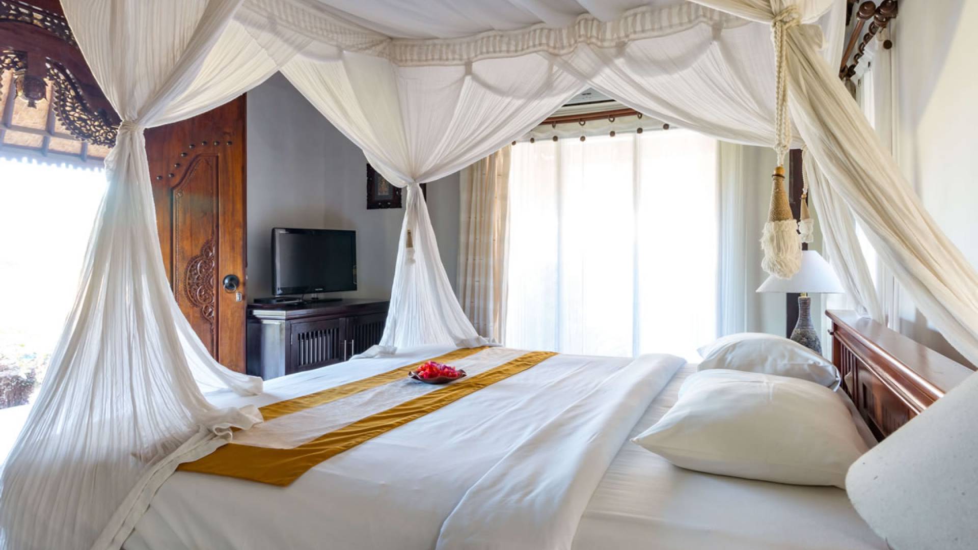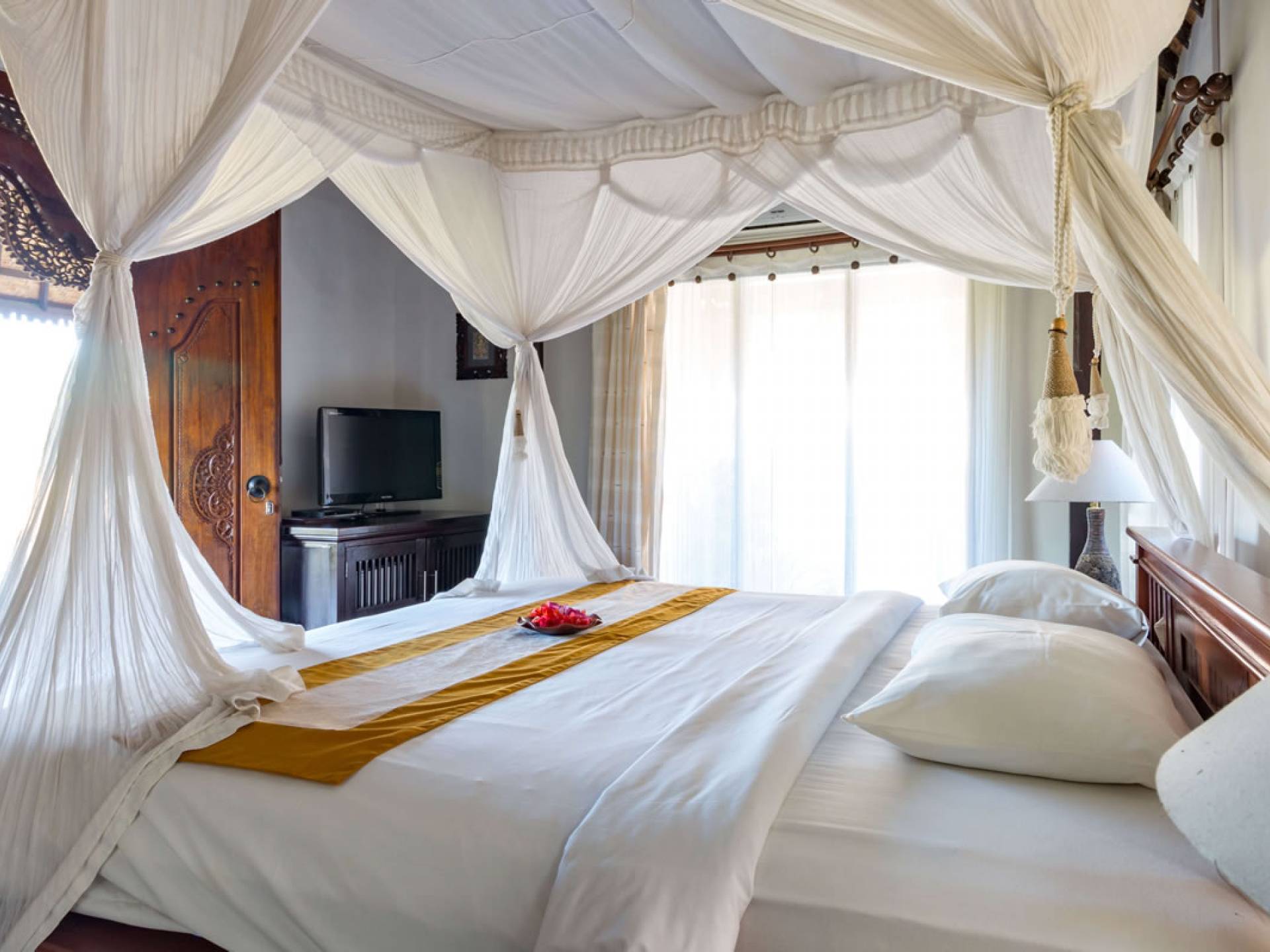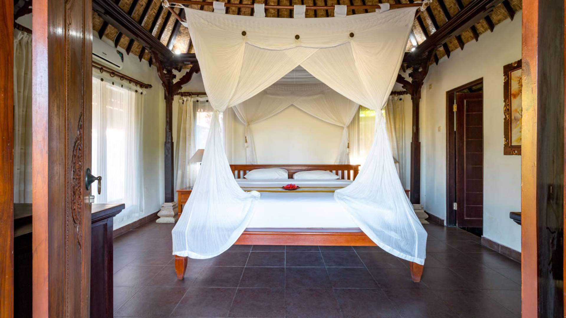 Улучшенная вилла Taman Di Blayu состоит из двуспальной кровати размера «queen-size», виллы в балийском стиле с видом на рисовые поля и ванной комнаты с ванной и душем на открытом воздухе. Так что отдохните от напряженного образа жизни и почувствуйте себя единым целым с людьми и природой!