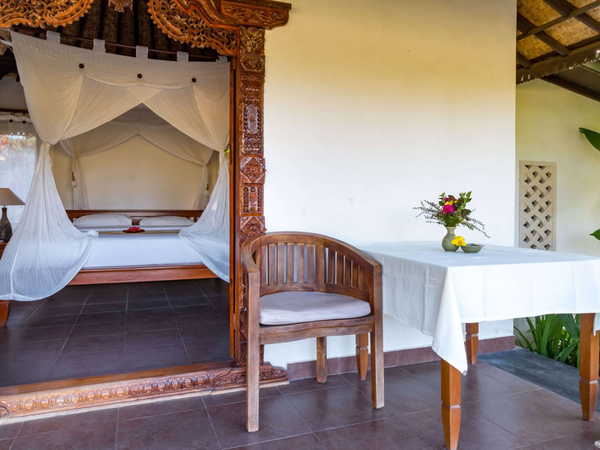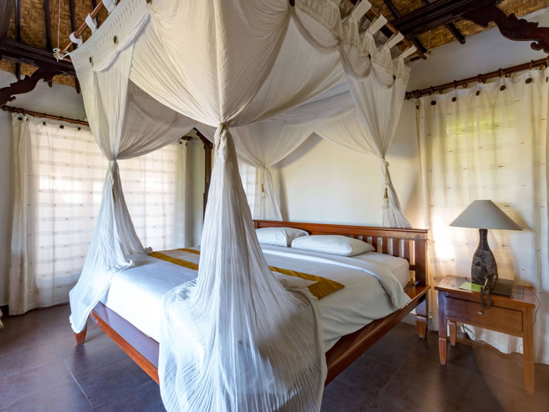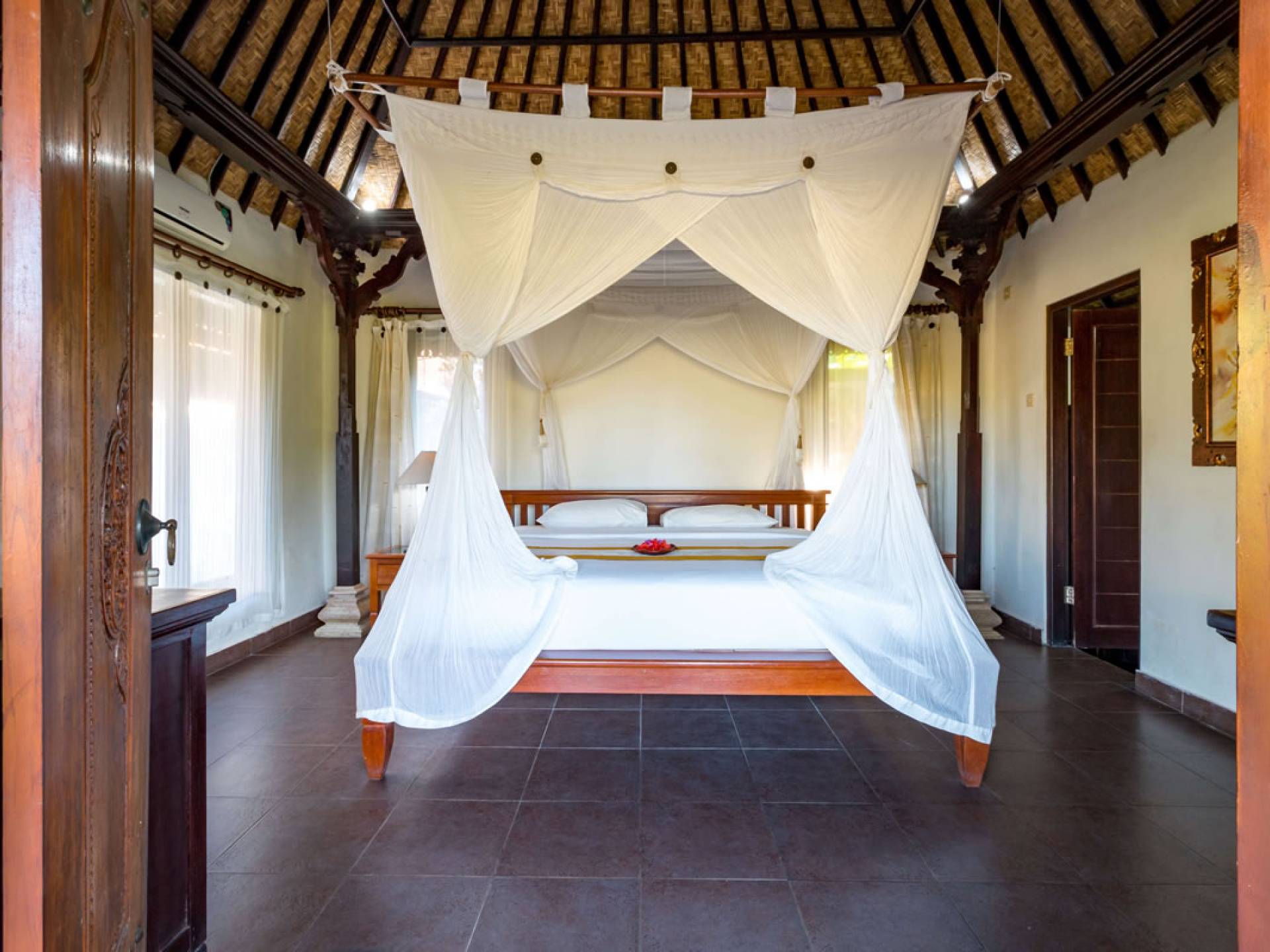 Улучшенная вилла Taman Di Blayu состоит из двуспальной кровати размера «queen-size», виллы в балийском стиле с видом на рисовые поля и ванной комнаты с ванной и душем на открытом воздухе. Так что отдохните от напряженного образа жизни и почувствуйте себя единым целым с людьми и природой!