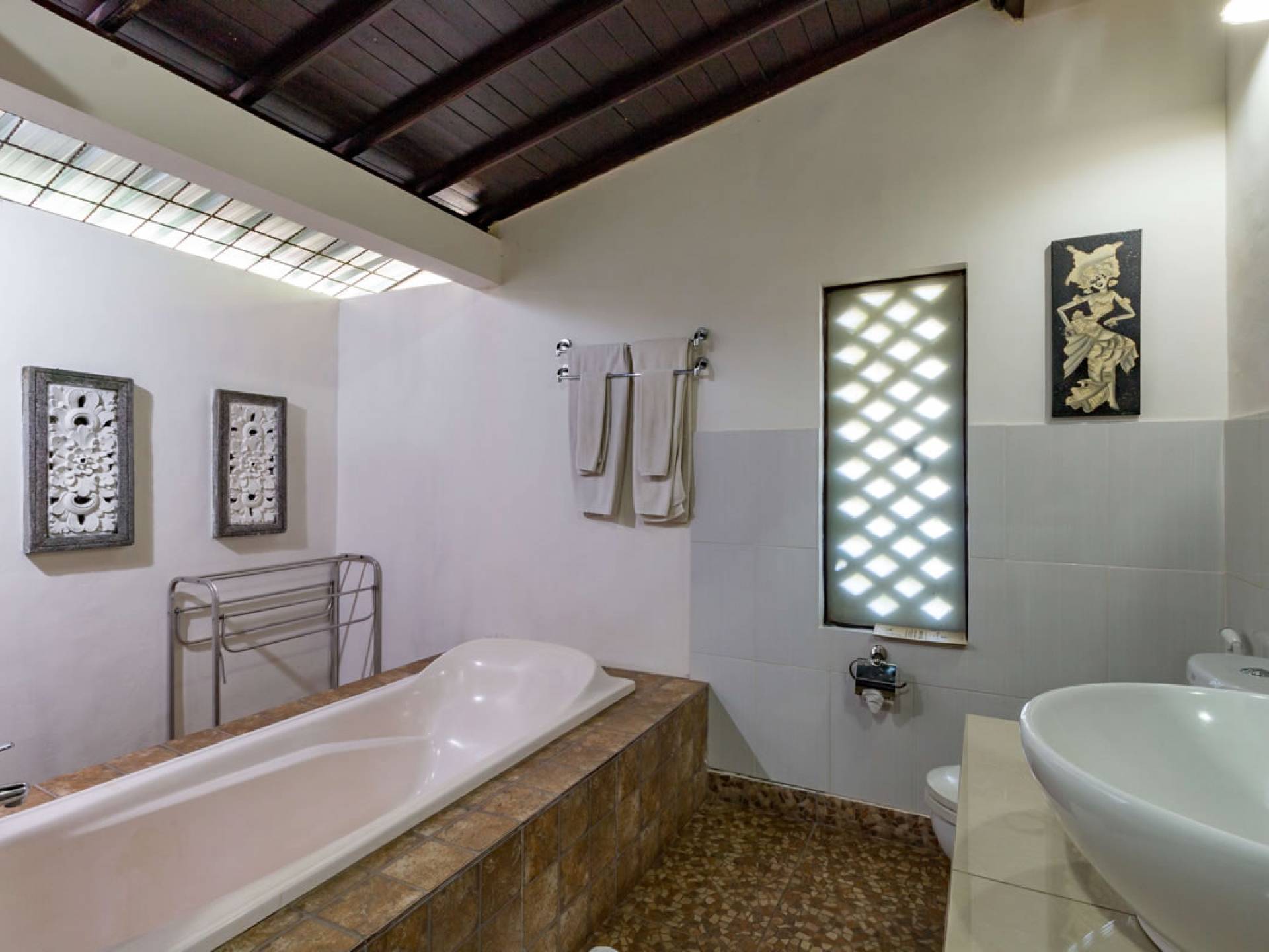 Убуд и его арт-центр находится всего в 30 минутах езды, а пляжные достопримечательности печально известной Кута - всего в 1 часе езды. В самом Таман Ди Блаю находится роскошный старинный дворец Пури Белаю. Павильоны под открытым небом, окруженные пышными умиротворяющими садами, и высокий бассейн сделают ваше пребывание на нашей вилле еще более приятным. Наслаждайтесь романтическим ужином при свечах во время медового месяца или устройте вечеринку у бассейна, например барбекю, с друзьями и семьей.