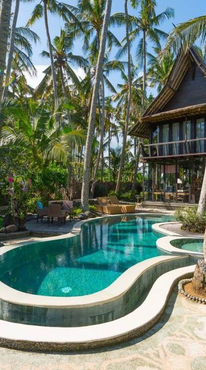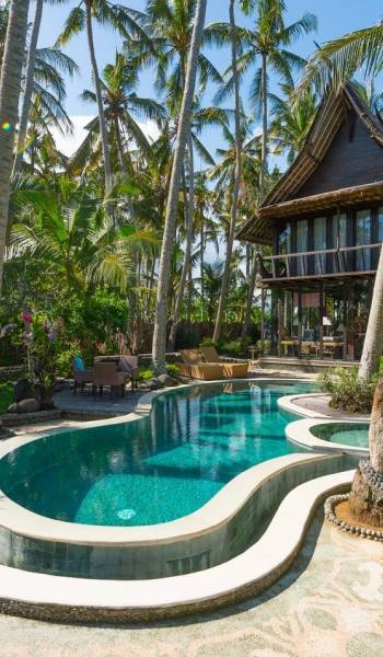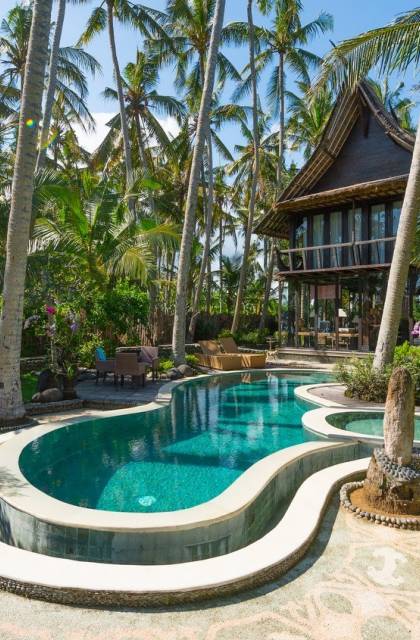 Если вы ищете тихое и уединенное место для отдыха и хотите остановиться у океана в окружении пальм и рисовых полей, вилла Keong Bali вам подойдет. Эта экзотическая деревянная вилла с 3 спальнями и просторным тропическим садом расположена недалеко от океана в районе Табанан. Дорога до виллы из аэропорта Нгурах-Рай займет 1,5-2 часа, но оно того стоит.