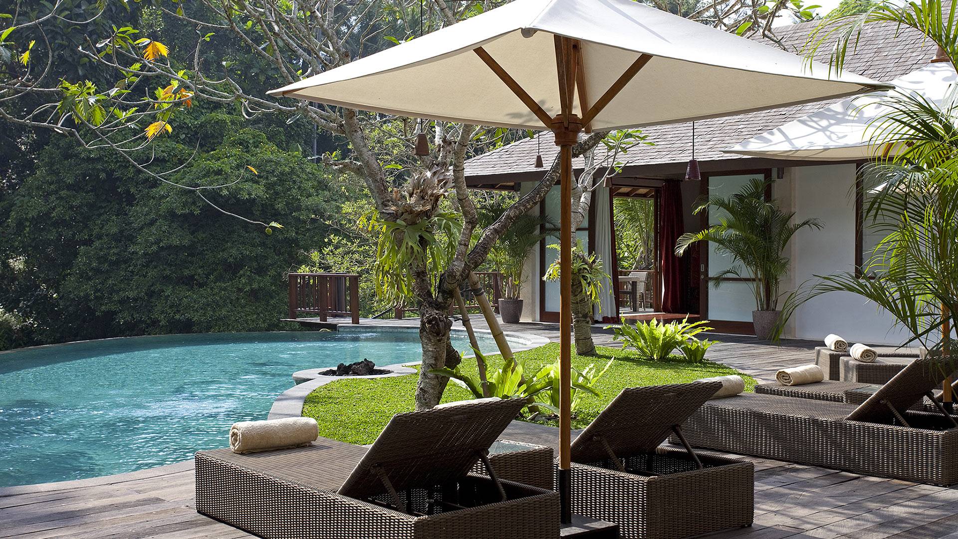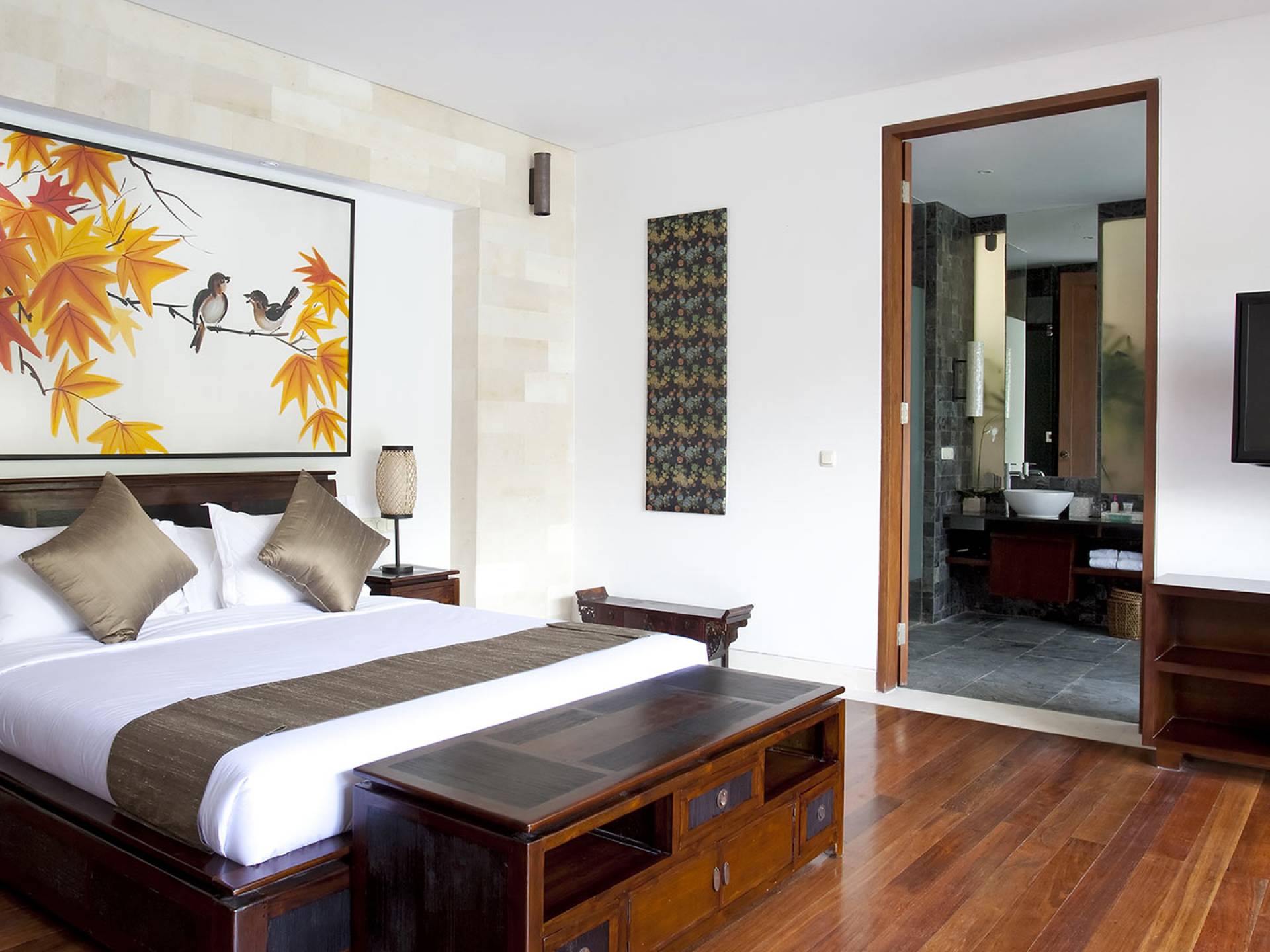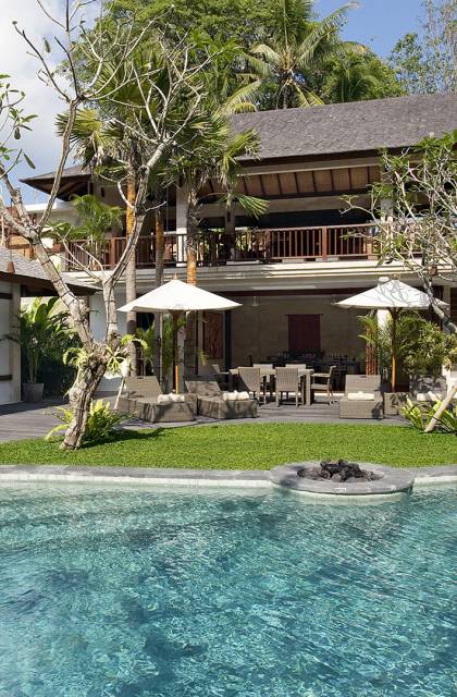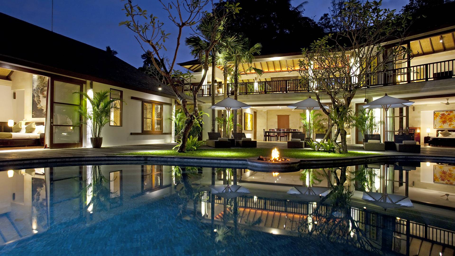 Вилла Iskandar Bali состоит из четырех спален с кондиционерами и двуспальными кроватями, четырех ванных комнат (три с ванной и душем, одна с душем), частного бассейна произвольной формы, а также на выбор крытый и открытый. гостиная и столовая.
