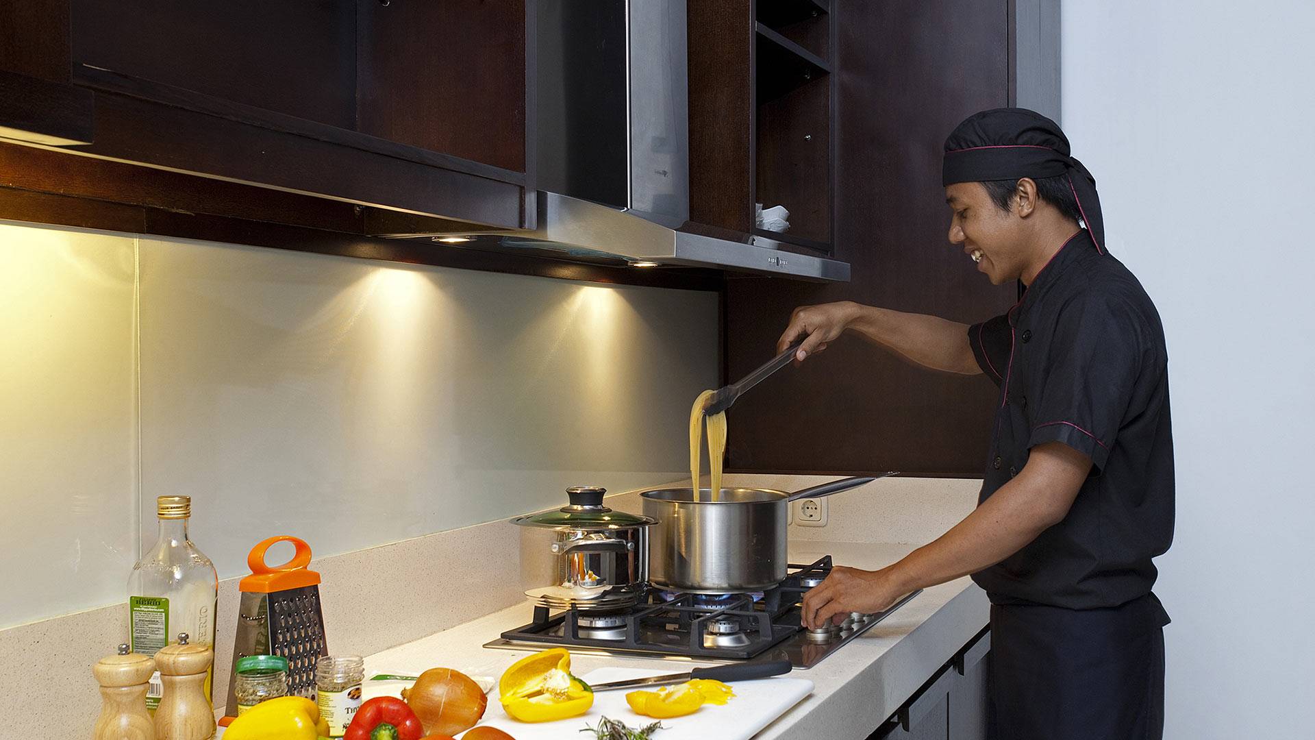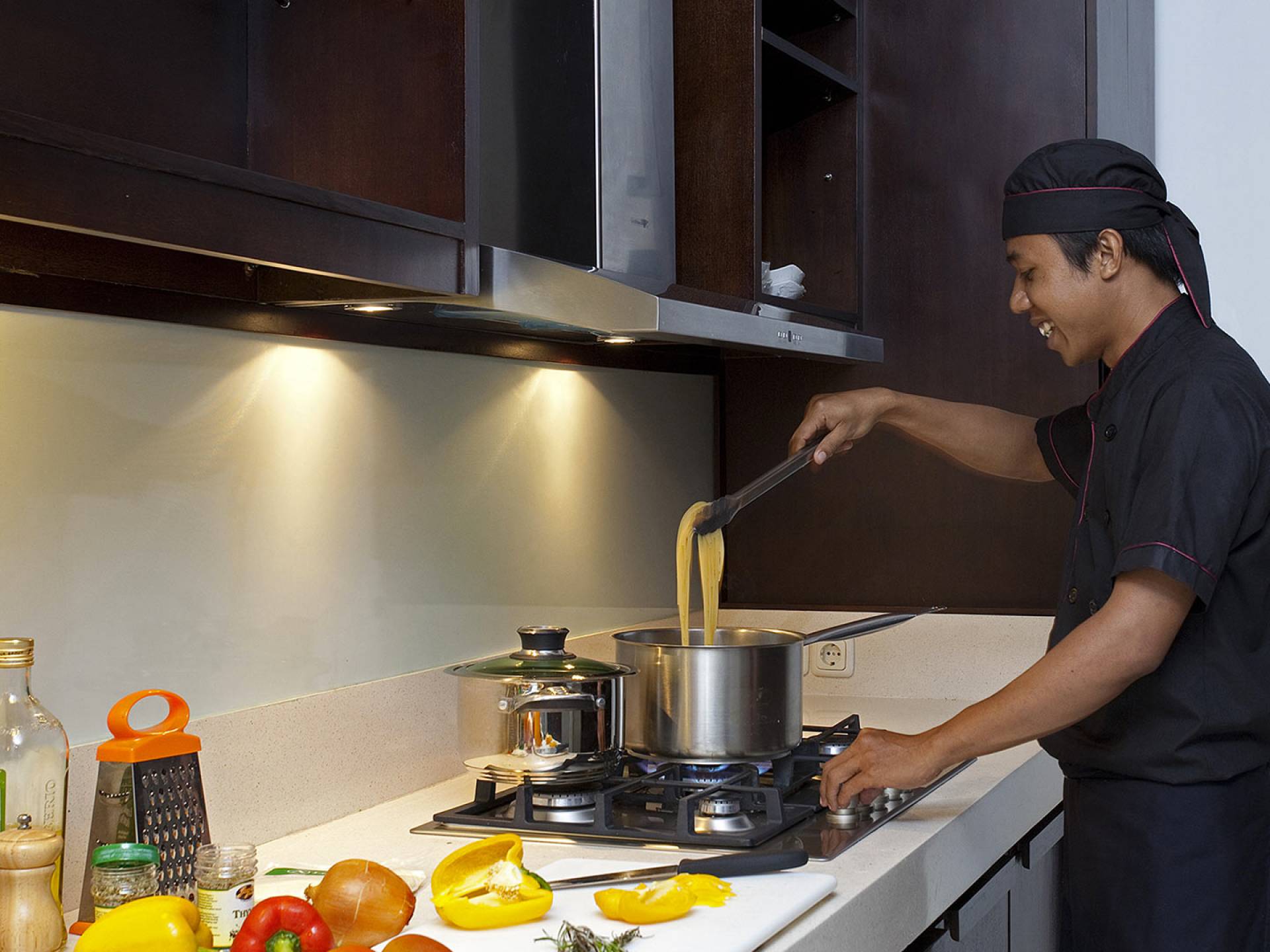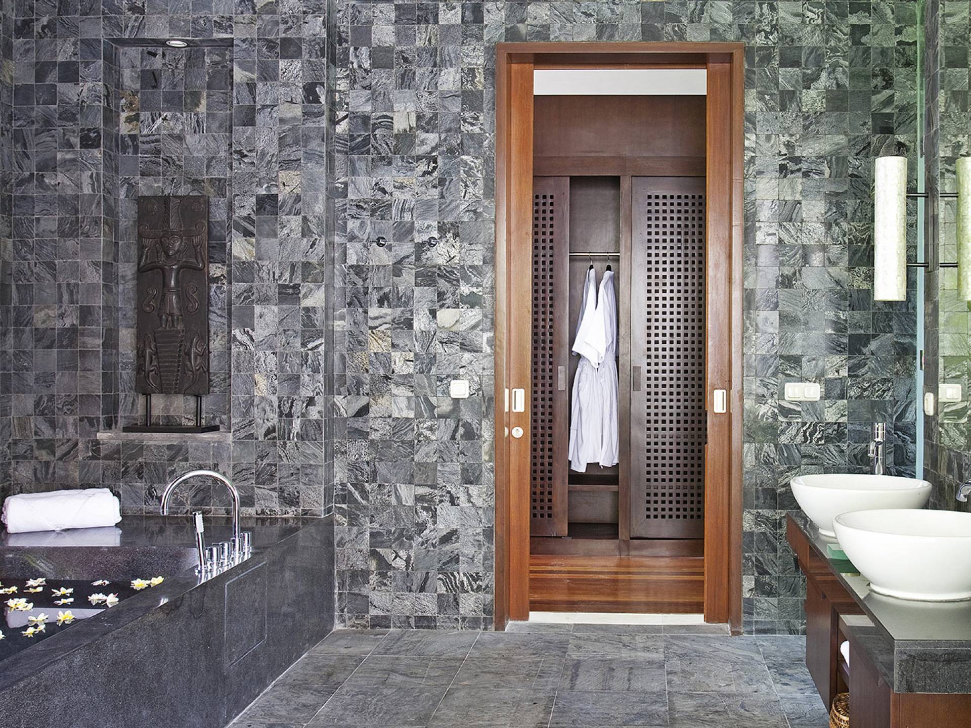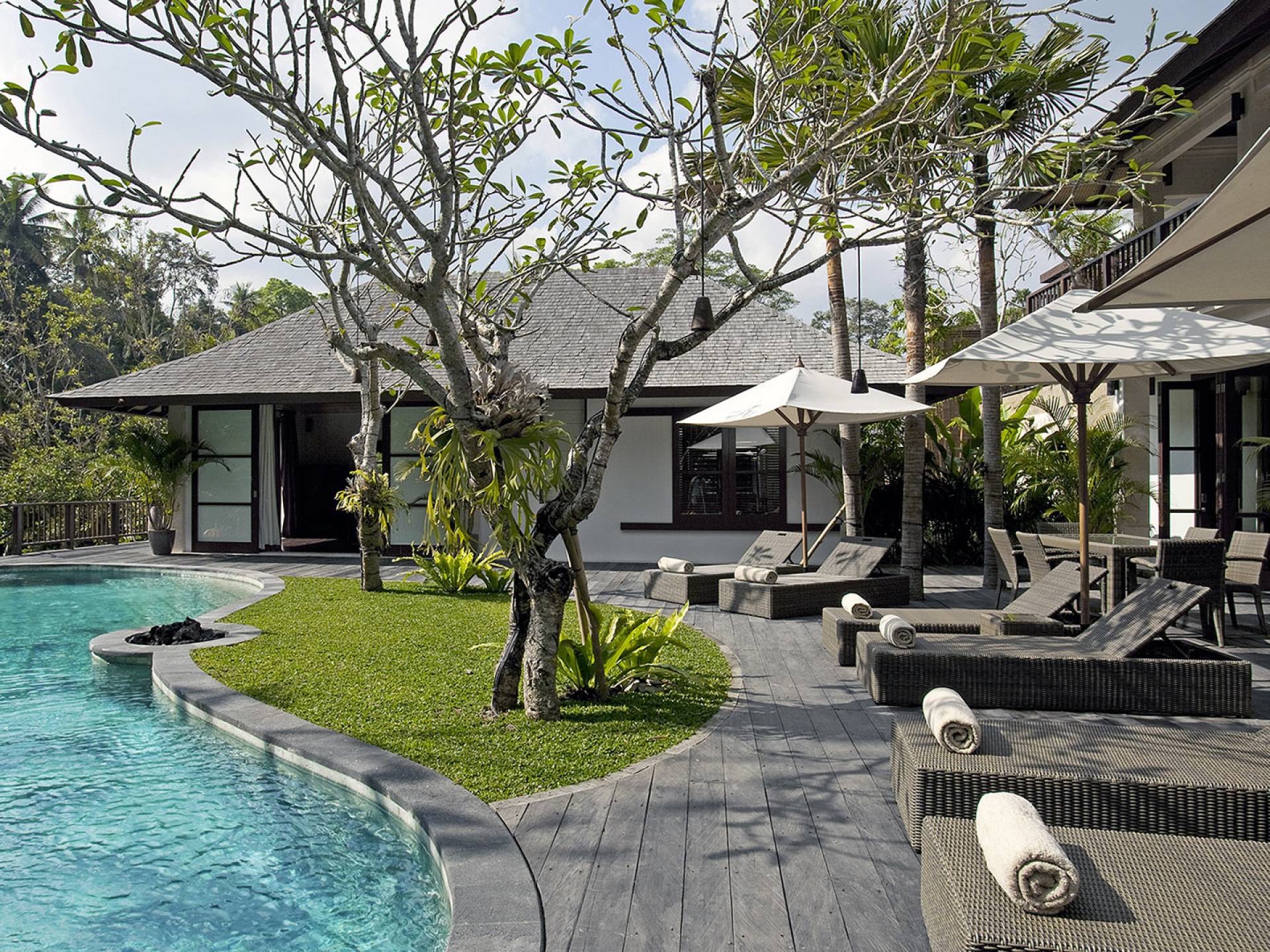 Вилла Iskandar Bali состоит из четырех спален с кондиционерами и двуспальными кроватями, четырех ванных комнат (три с ванной и душем, одна с душем), частного бассейна произвольной формы, а также на выбор крытый и открытый. гостиная и столовая.