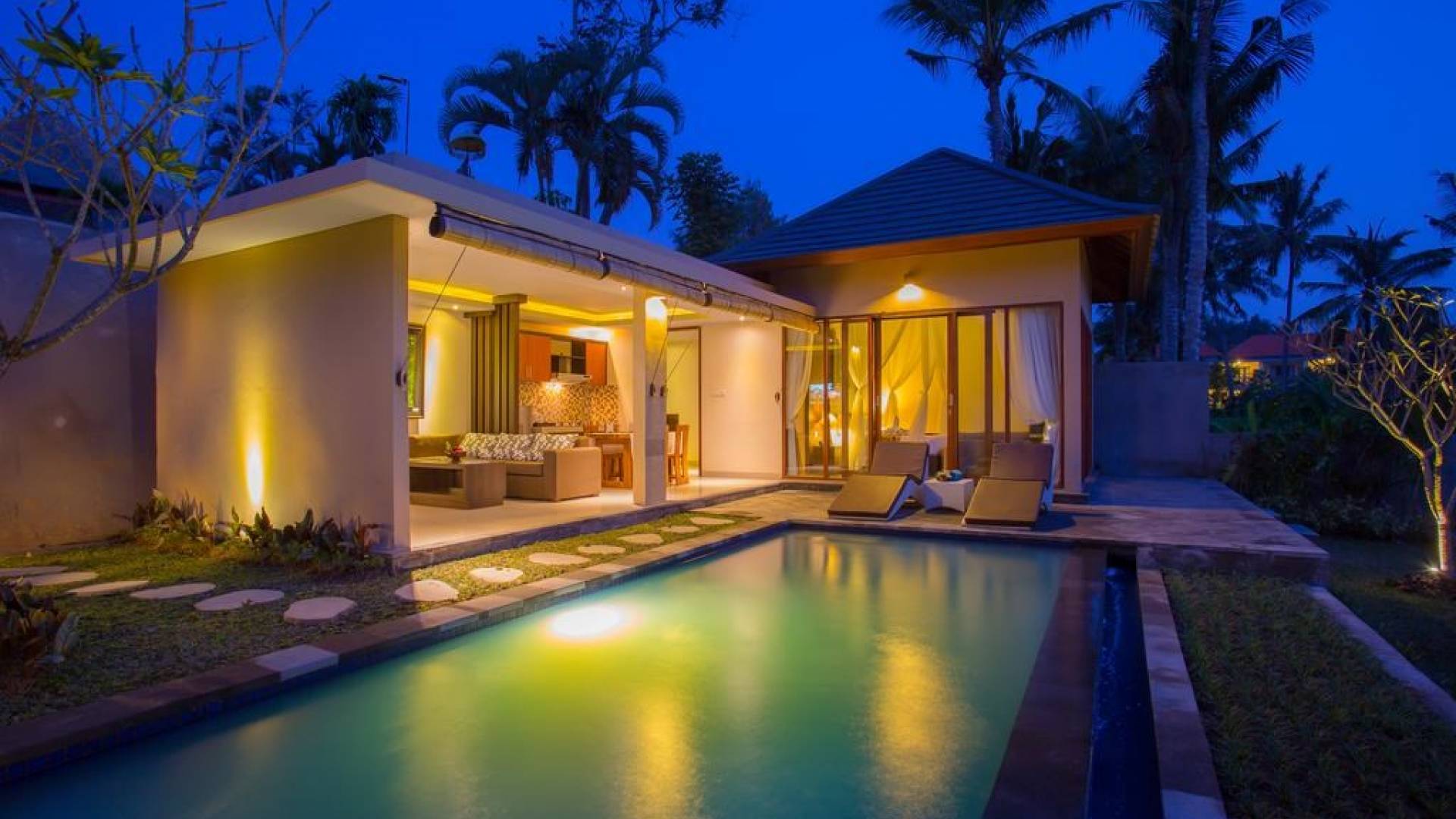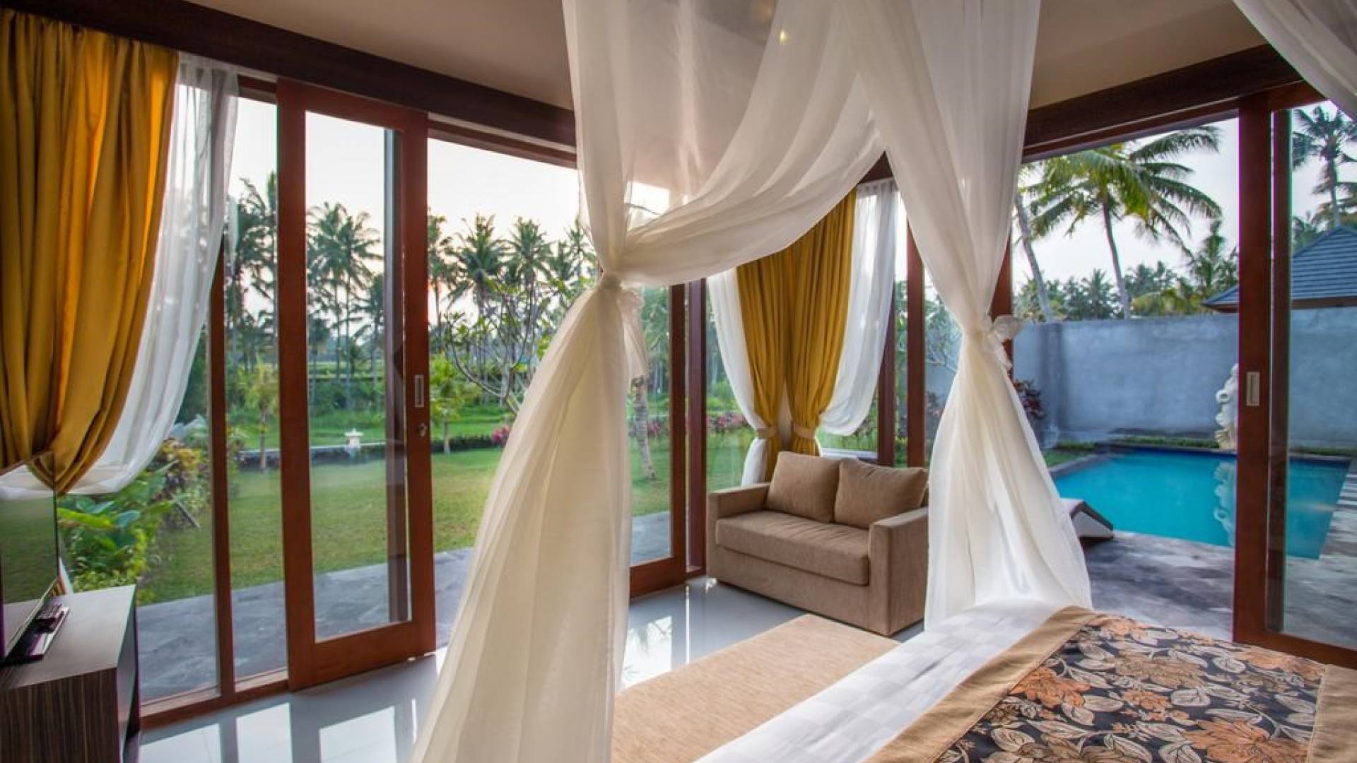 Эта вилла с бассейном имеет частный бассейн, 1 спальню, 1 двуспальную кровать, 1 гостиную, 1 душ с ванной, балкон, террасу и кухню. Вилла окружена яркими тропическими садами, цветущими деревьями, а некоторые из них окружены красивым рисовым полем.