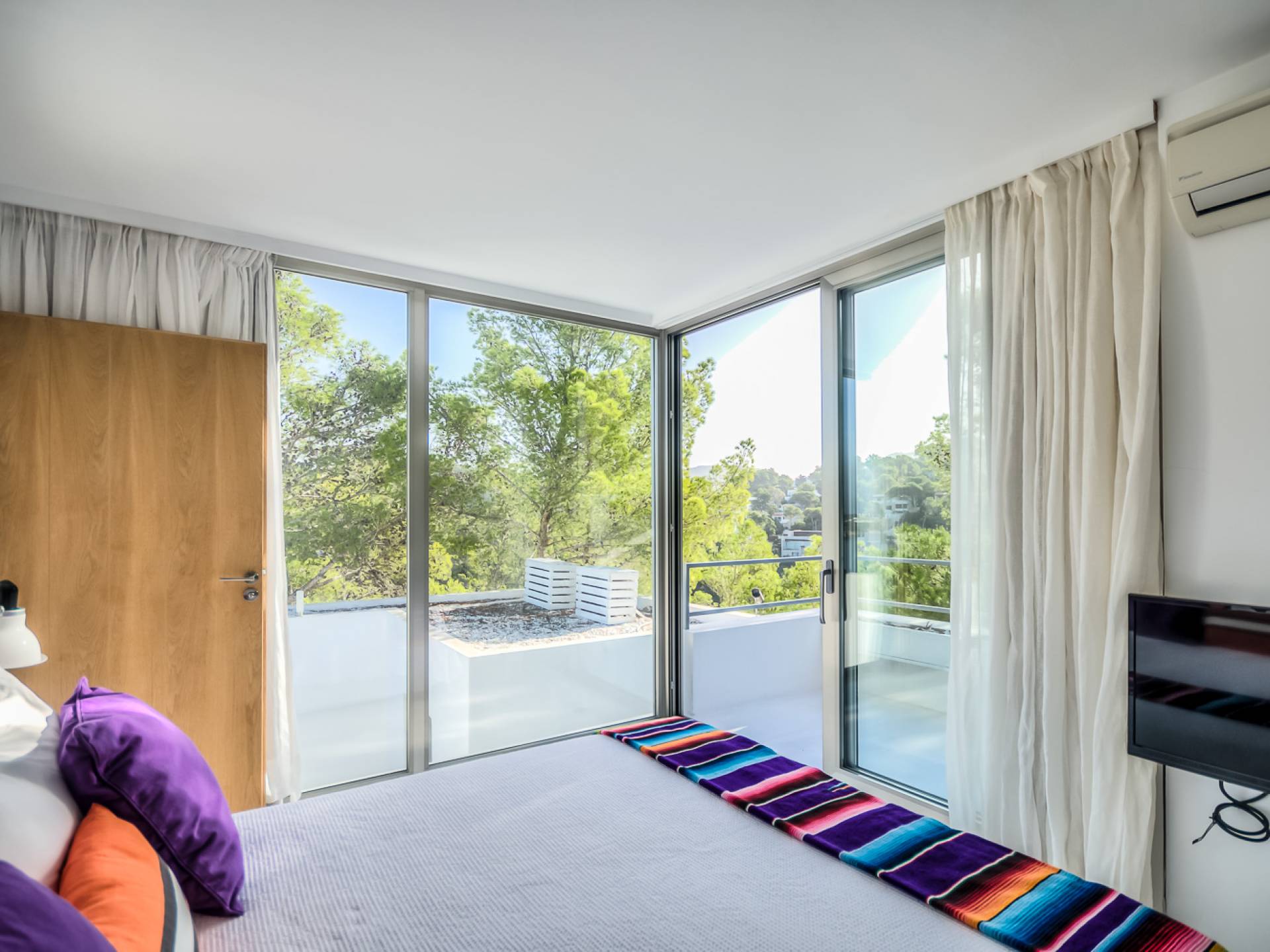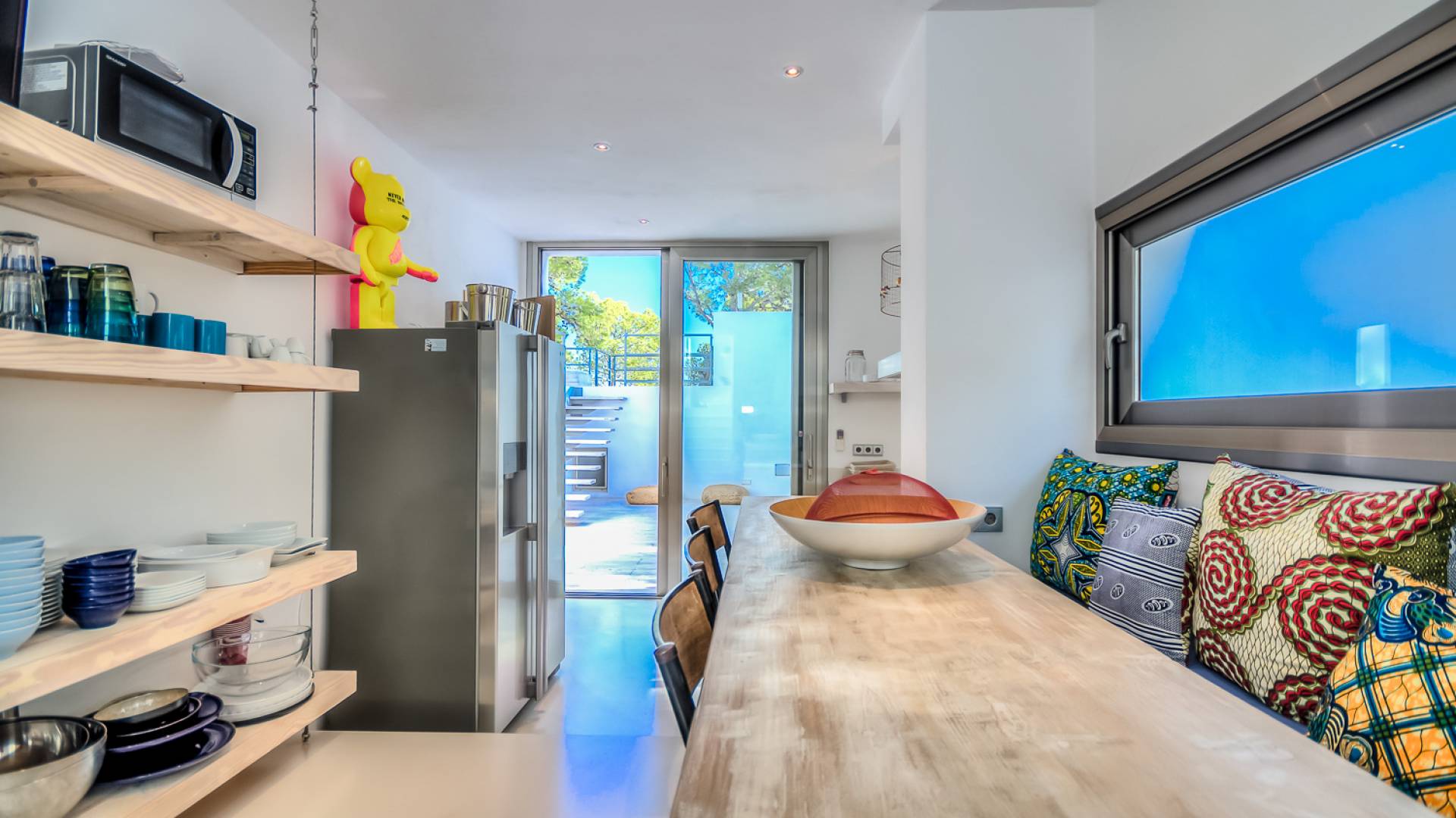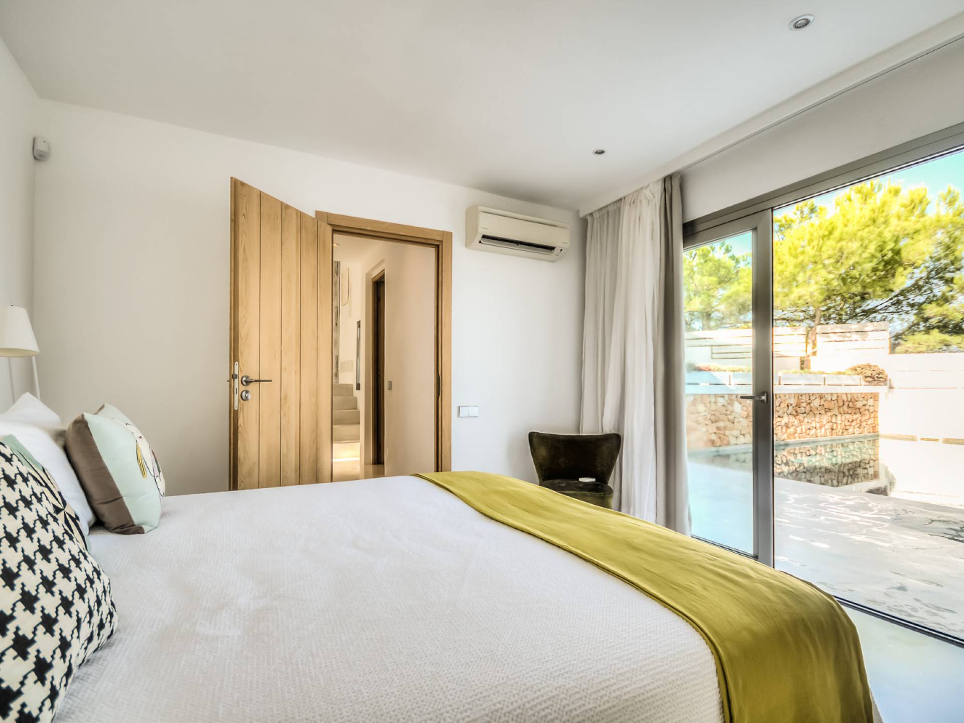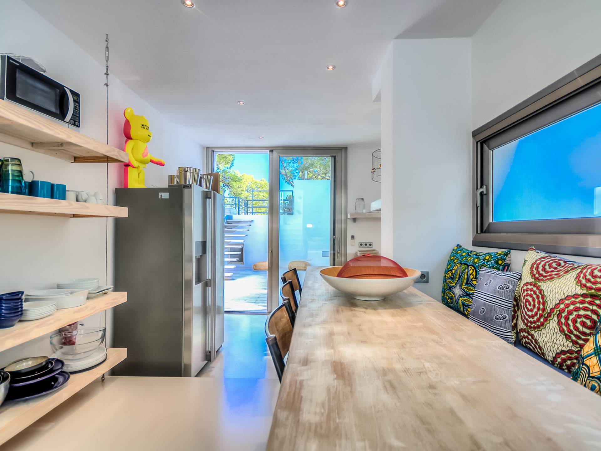 Вилла в стиле пляжного домика с умным дизайном, расположенная в нескольких минутах от пляжа Кала Моли. Can Cala Moli Ibiza может похвастаться потрясающим видом на море и потрясающими розовыми закатами, идеально подходит для семей и друзей, чтобы насладиться средиземноморским миром Ибицы. Он имеет шесть потрясающих больших спален с ванными комнатами, великолепный просторный бассейн с несколькими террасами и полностью оборудованную летнюю кухню. Ближайший пляж - Кала Моли, всего в 5 минутах ходьбы (1 км). Деревня Сан-Хосе находится в 8 минутах езды, город Ибица и аэропорт - в 20 минутах от дома.