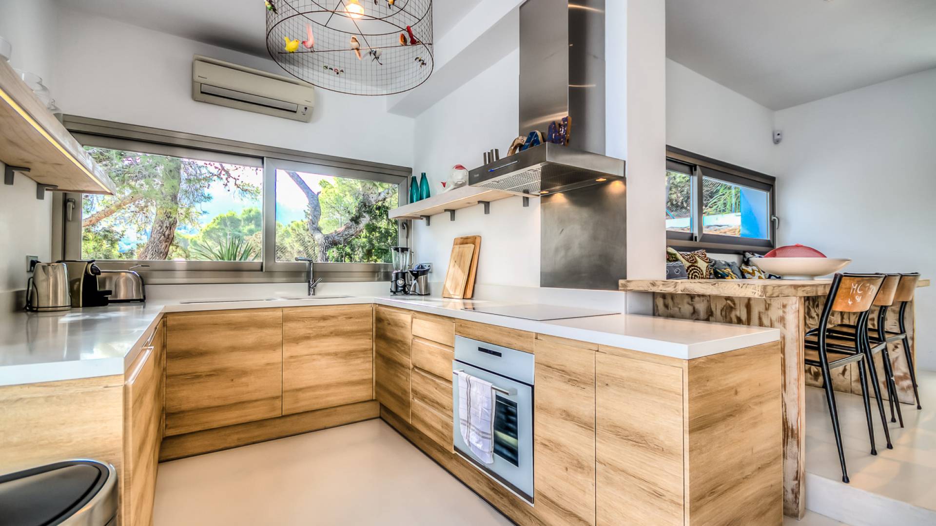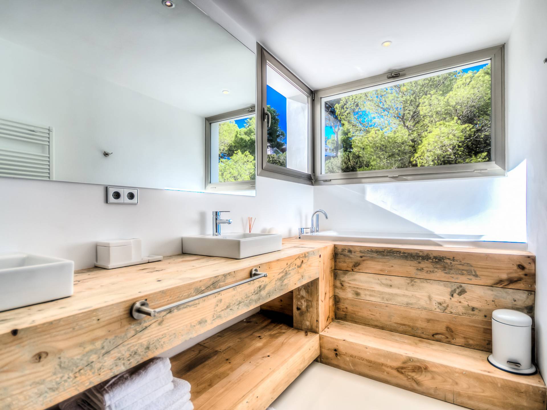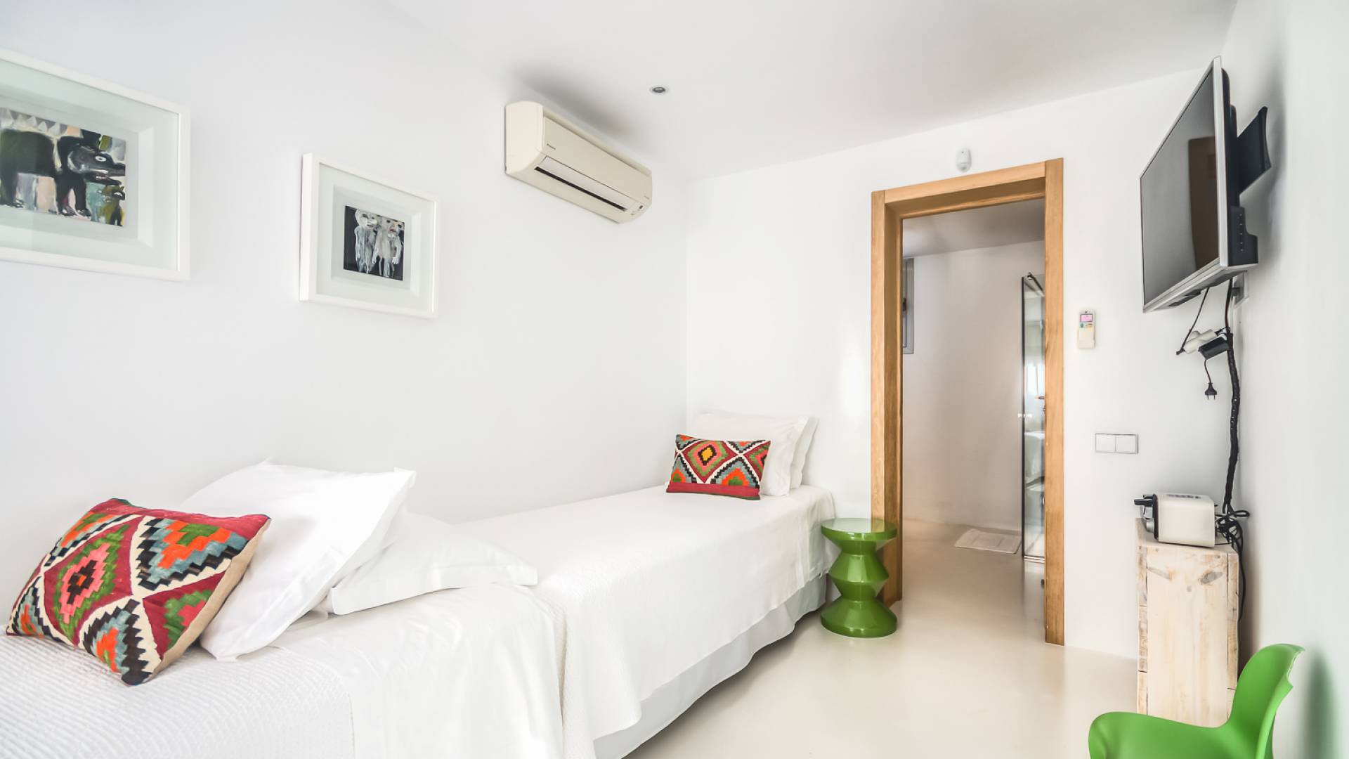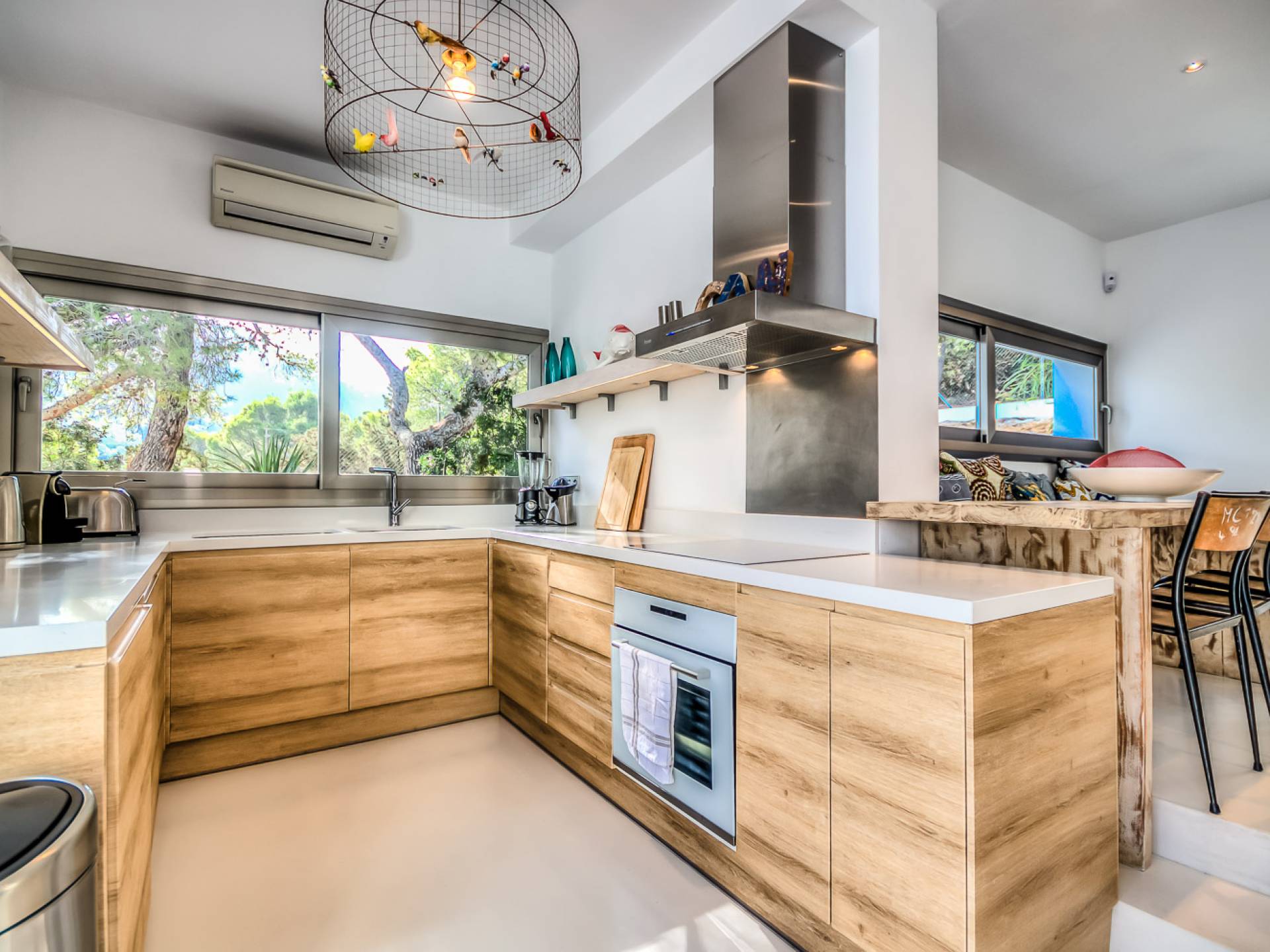 Вилла в стиле пляжного домика с умным дизайном, расположенная в нескольких минутах от пляжа Кала Моли. Can Cala Moli Ibiza может похвастаться потрясающим видом на море и потрясающими розовыми закатами, идеально подходит для семей и друзей, чтобы насладиться средиземноморским миром Ибицы. Он имеет шесть потрясающих больших спален с ванными комнатами, великолепный просторный бассейн с несколькими террасами и полностью оборудованную летнюю кухню. Ближайший пляж - Кала Моли, всего в 5 минутах ходьбы (1 км). Деревня Сан-Хосе находится в 8 минутах езды, город Ибица и аэропорт - в 20 минутах от дома.