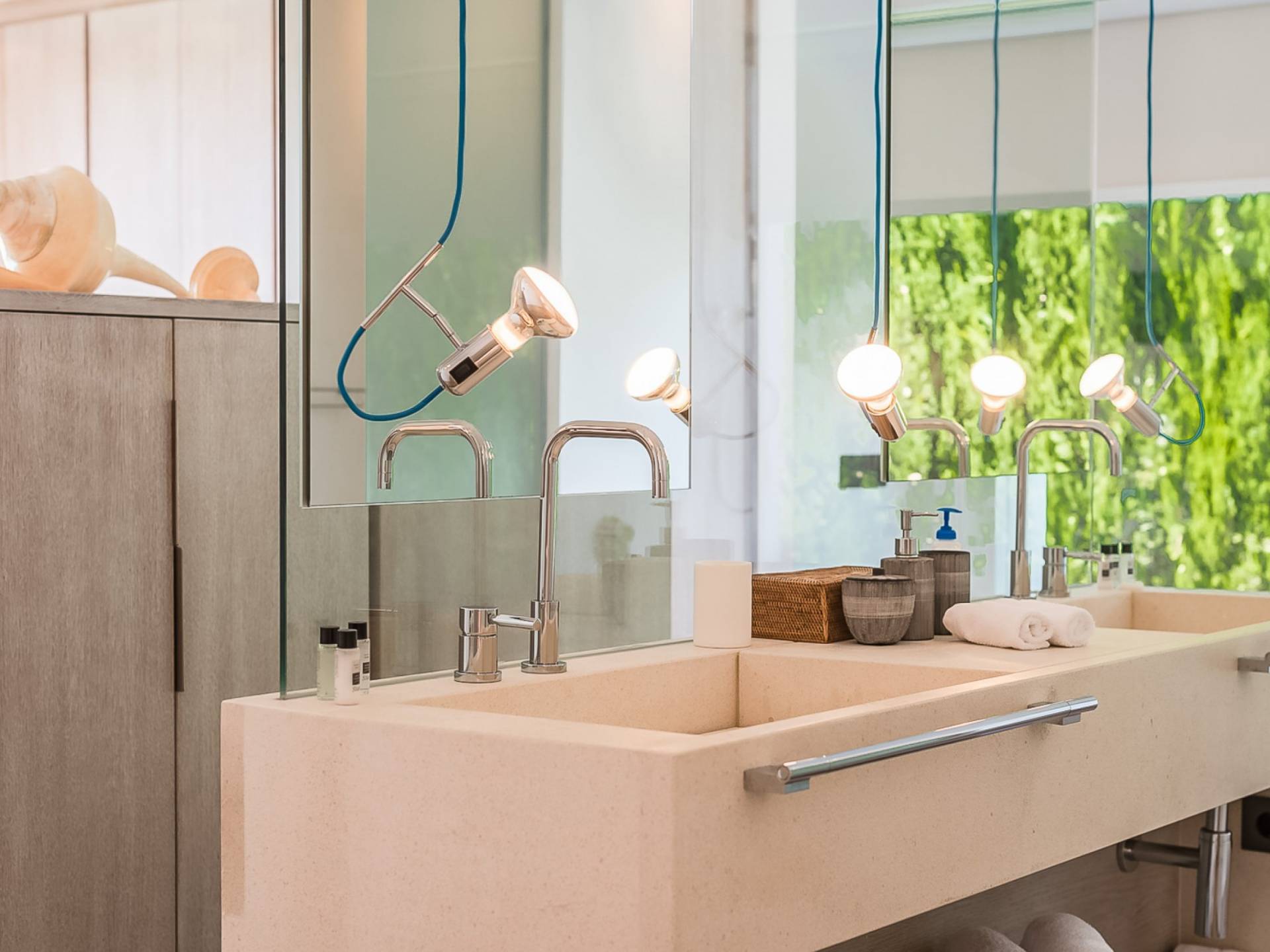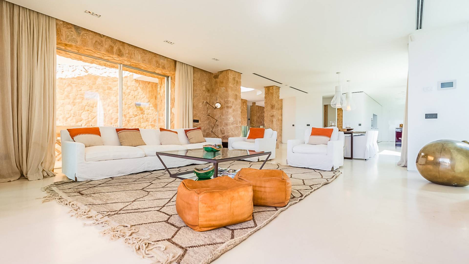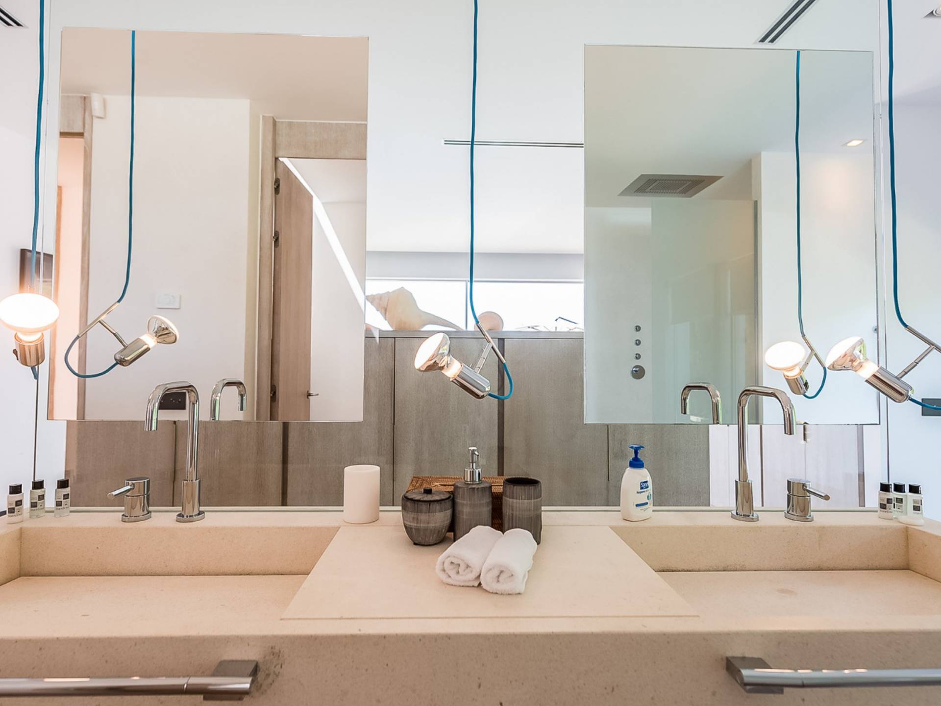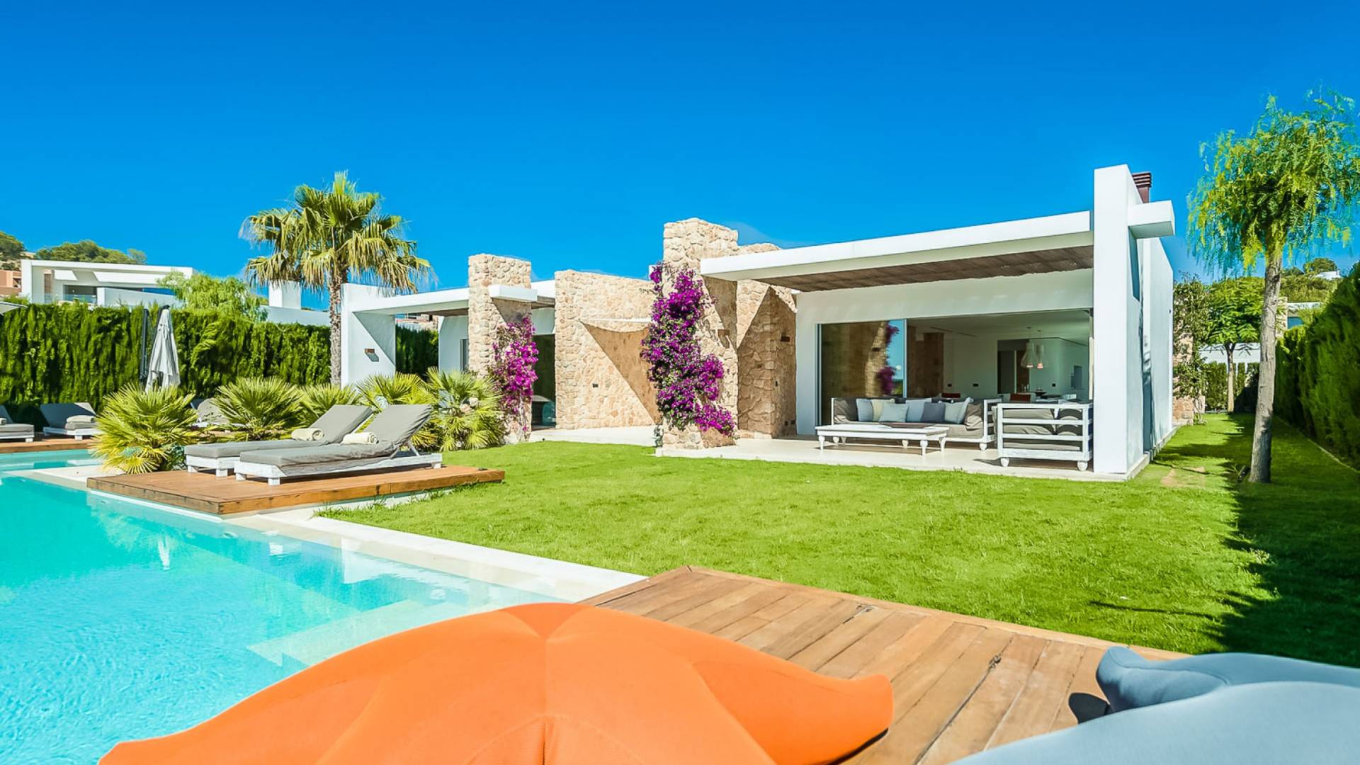 Эта роскошная вилла была спроектирована в стиле минимализма с чистыми открытыми пространствами, в которых сочетаются камень, мрамор, дерево и железо. Жилые зоны имеют выход на красивую террасу с частным бассейном, откуда вы можете увидеть самые захватывающие закаты на острове. Дом полностью кондиционирован и очень светлый, в нем есть большая гостиная со встроенной обеденной зоной, полностью оборудованная современная кухня с центральным островом, высокоскоростной Wi-Fi по всей вилле, включая сад, ТВ / игровая комната, включая спутниковое ТВ, Apple ТВ и Netflix, гостевой туалет, открытый гараж и полностью оборудованная прачечная.