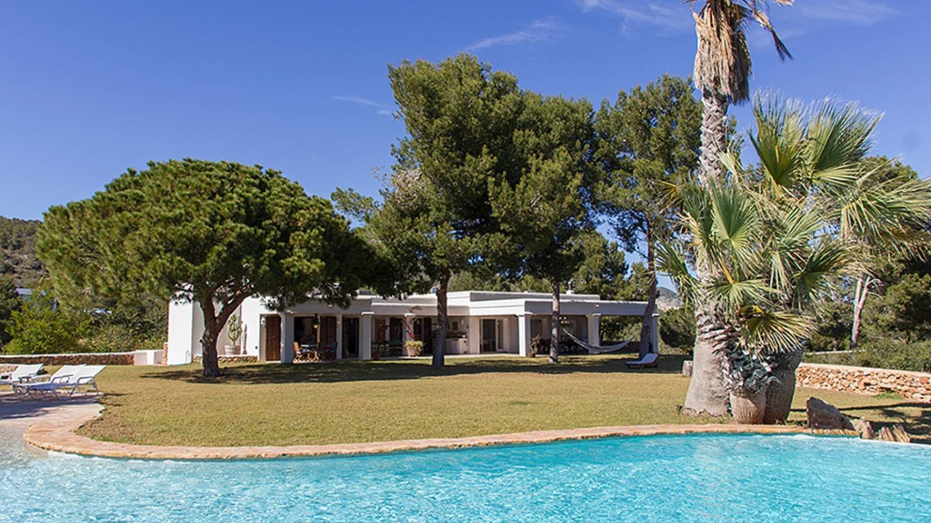 Аэропорт находится всего в нескольких минутах ходьбы, другие популярные места развлечений, такие как Ушуайя, пляж Нассау и рестораны, такие как KM5, находятся в нескольких минутах езды на автомобиле. Этот дом идеально подходит для семей и друзей, желающих понежиться на солнце Ибицы. Он расположен в красивой природной среде и может похвастаться захватывающим видом на сельскую местность и море.