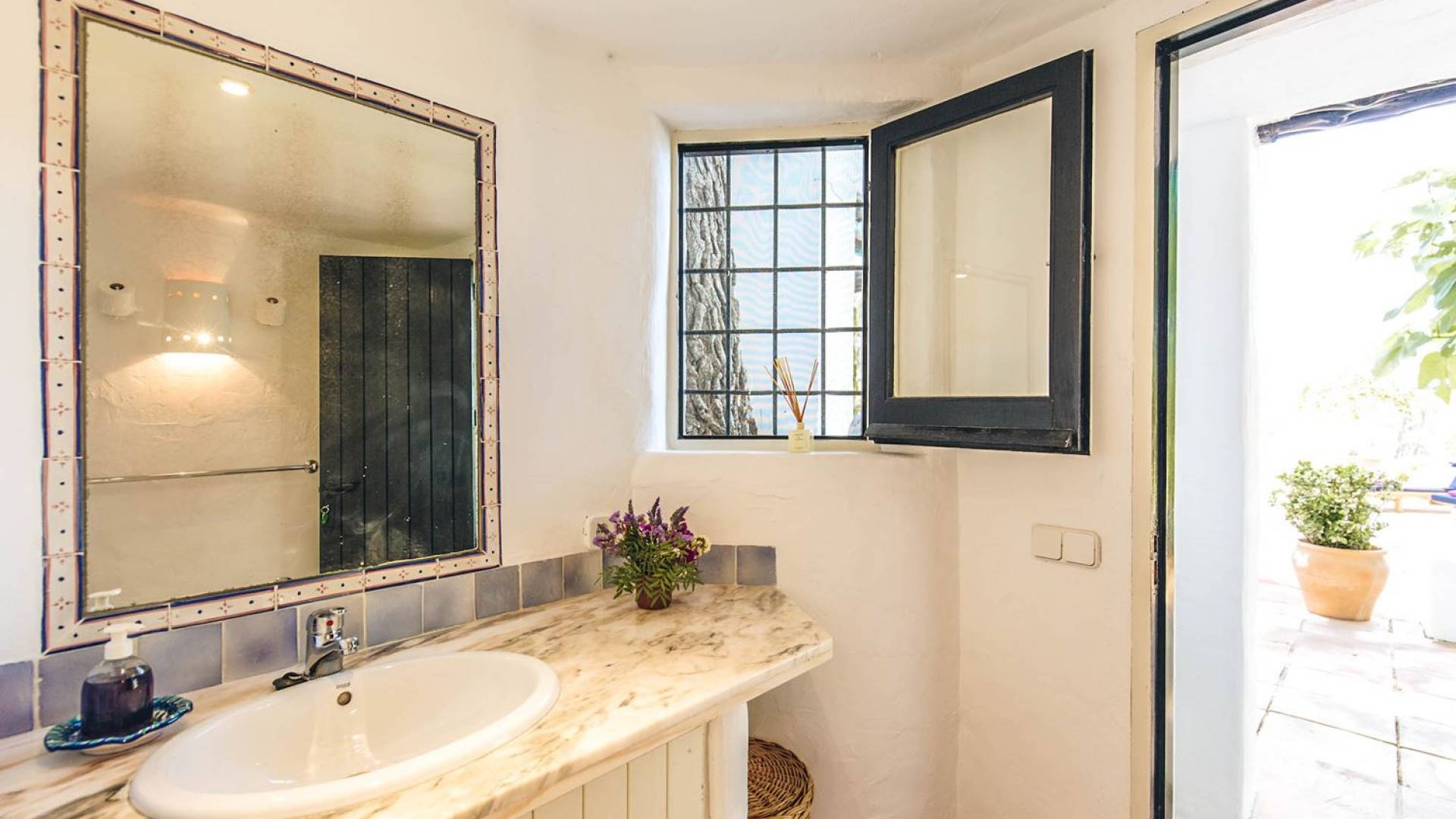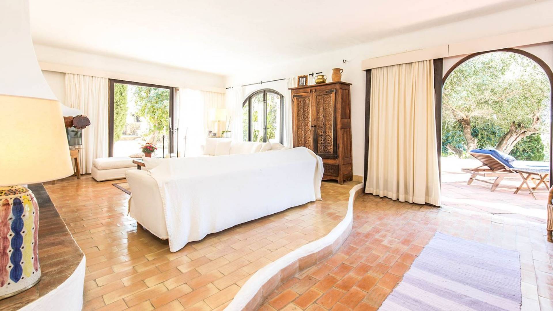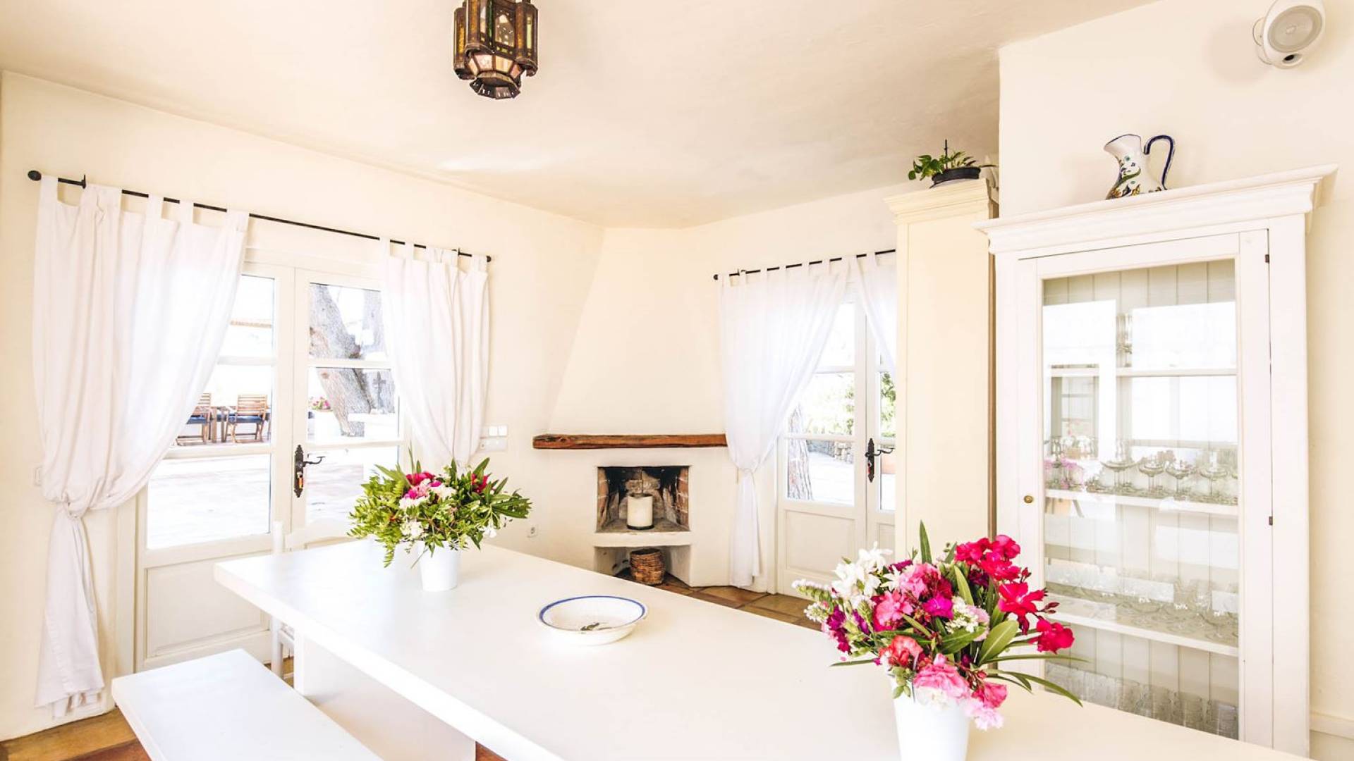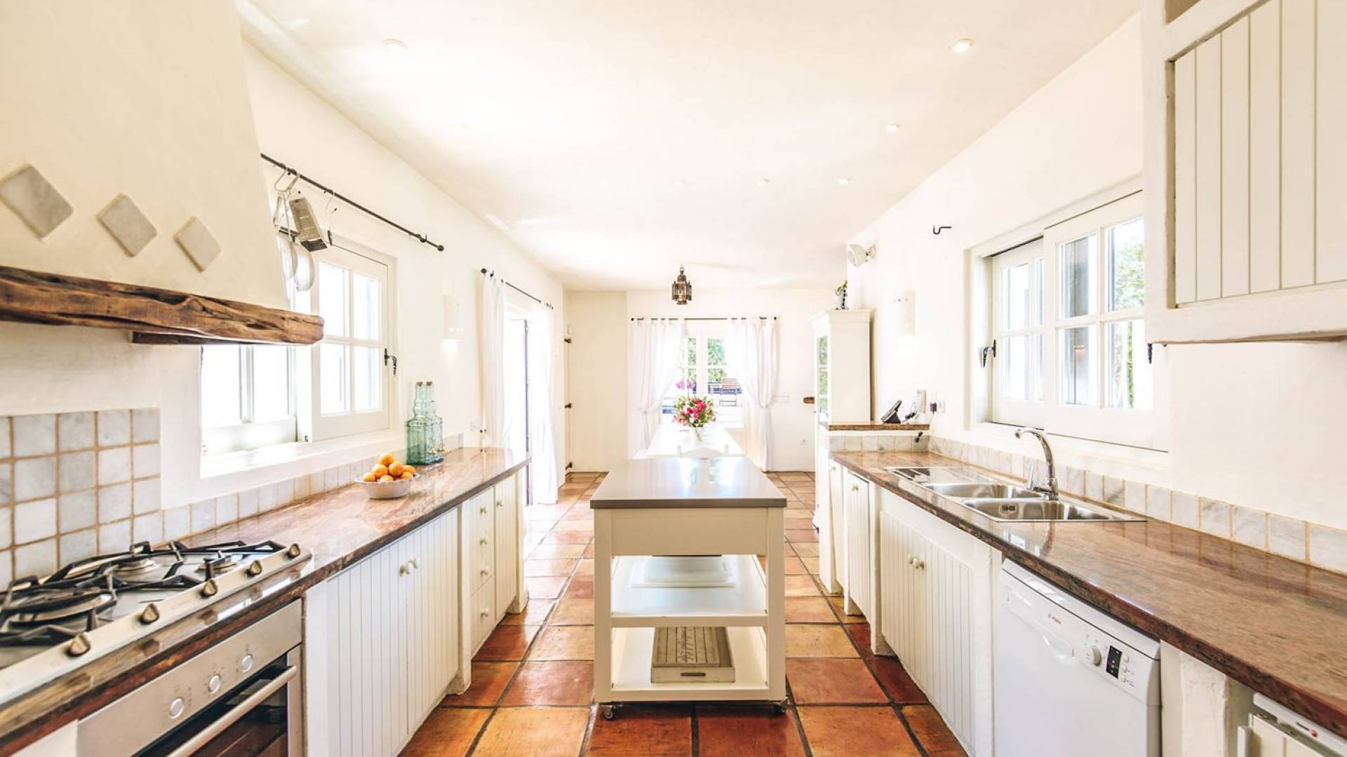 Внутри есть просторная гостиная с огромными диванами и камином; есть большой телевизор с доступом к спутниковому пакету Movistar, двойные стеклянные двери, ведущие на террасу, ведущую к бассейну, кондиционер, Wi-Fi и система Sonos. В холле на первом этаже есть гостевой туалет для удобства. Большая, светлая кухня в традиционном стиле полностью оборудована и имеет открытую планировку с обеденной зоной, а также имеет двойные стеклянные двери, ведущие на террасу.