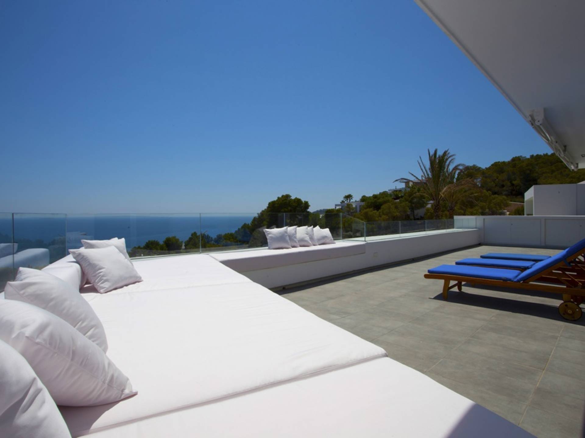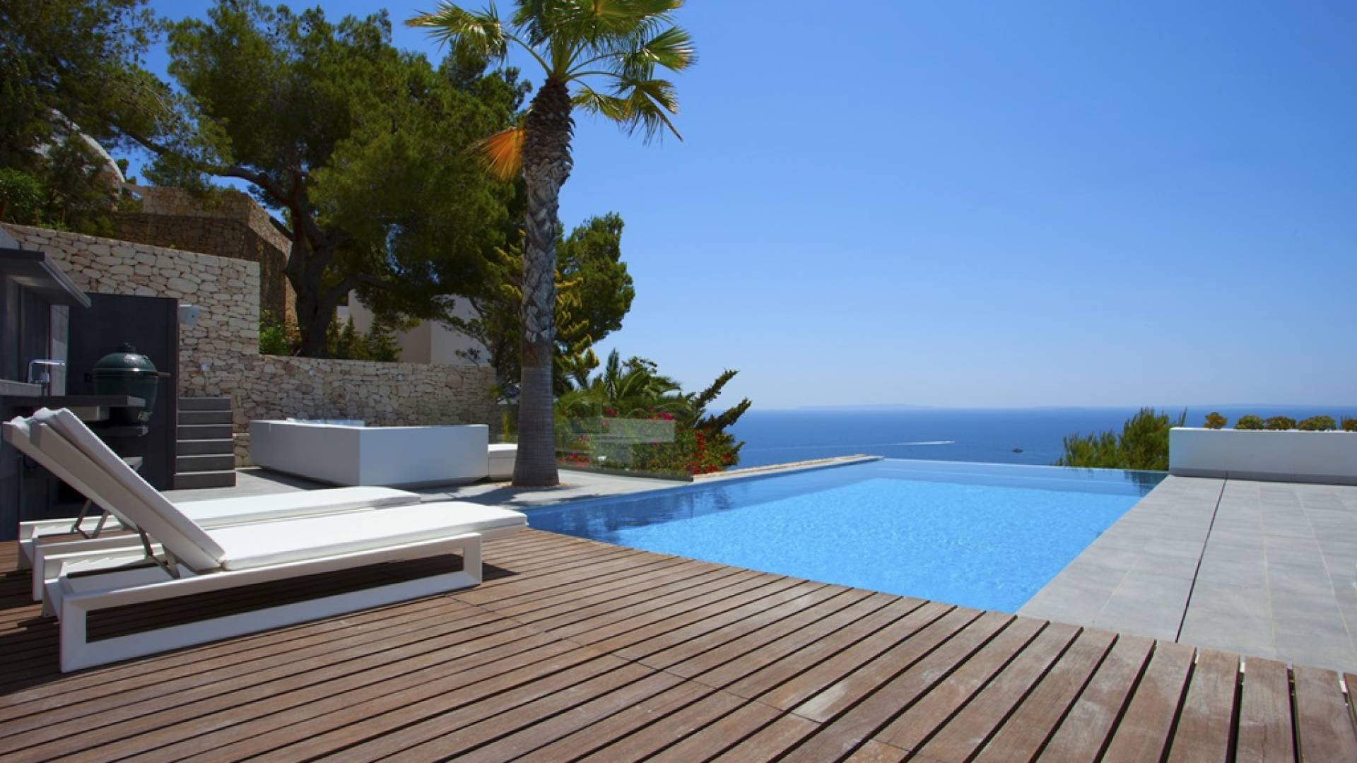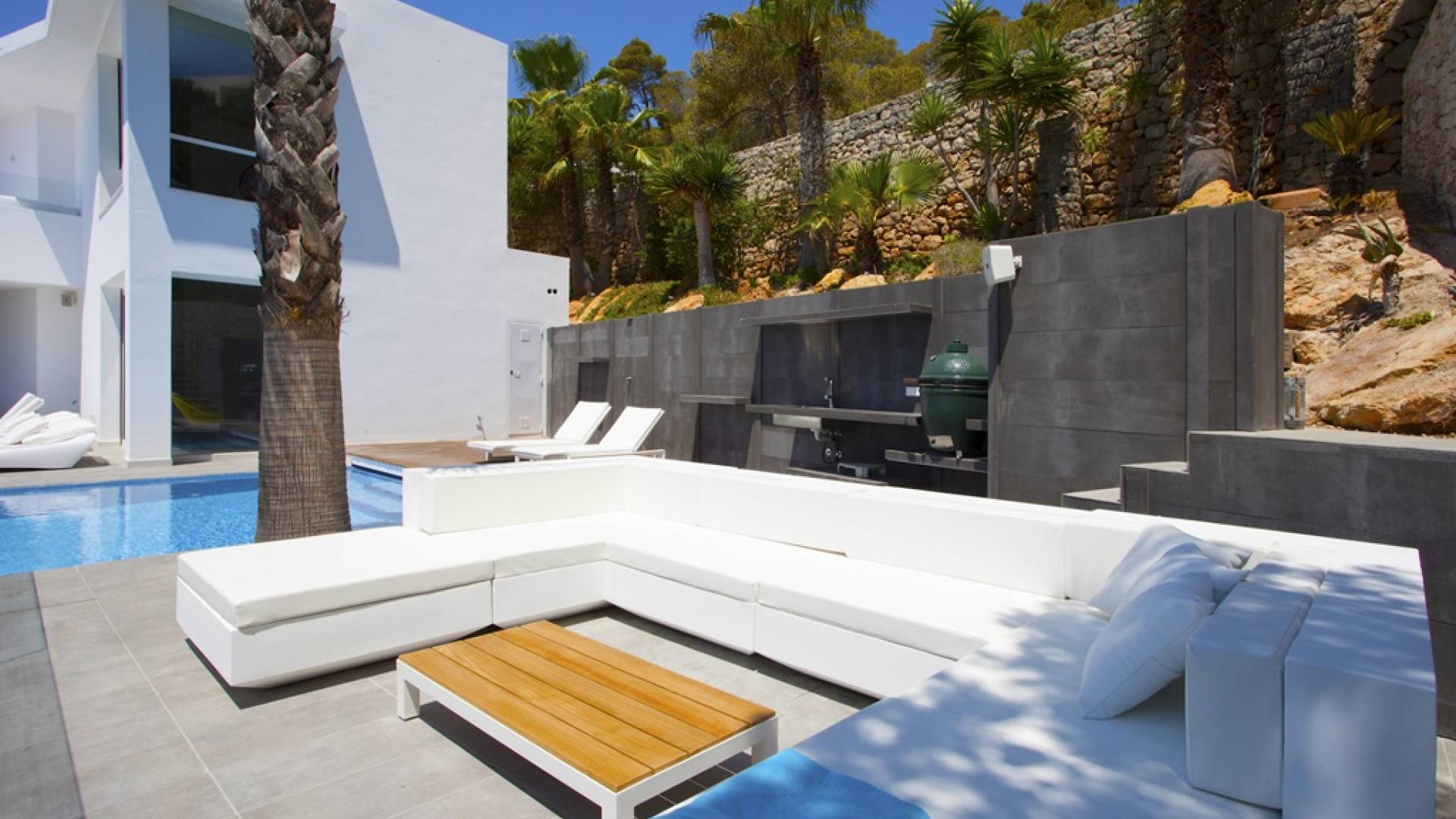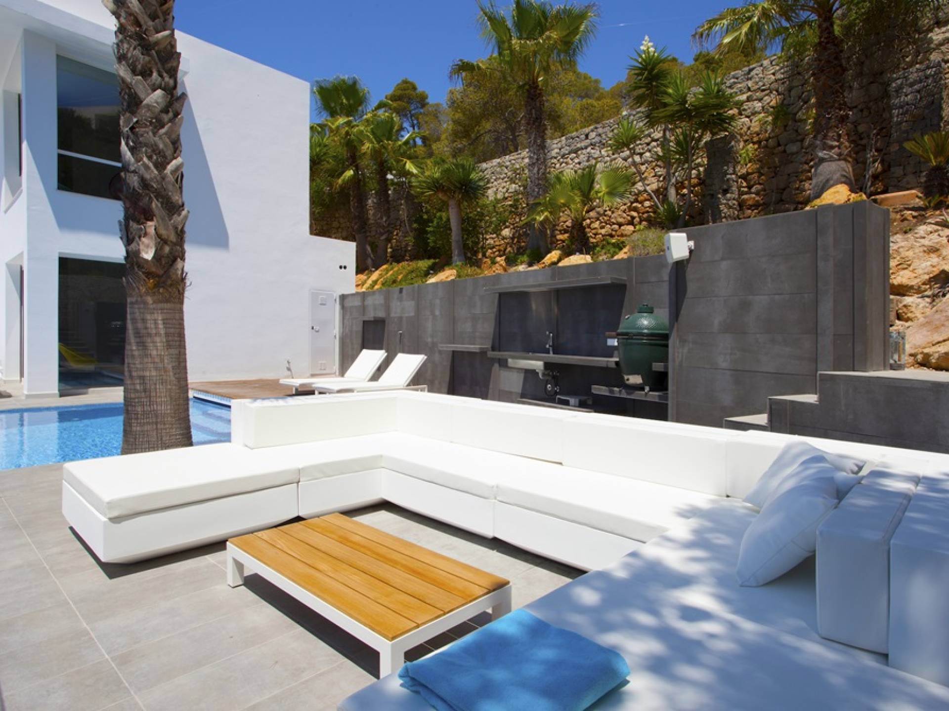 Снаружи есть пейзажный бассейн с системой струйного течения, так что вы можете плавать часами, любуясь великолепными видами. На открытом патио есть крытая обеденная зона на 10 человек, 10 шезлонгов вокруг бассейна, а также удобный лаундж-уголок для отдыха. Здесь вы можете насладиться захватывающим видом на море, лодки и остров Форментера. . На вилле также есть душ на открытом воздухе и площадка для барбекю Big Green Egg.