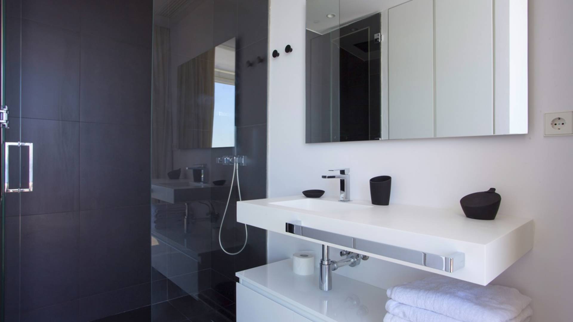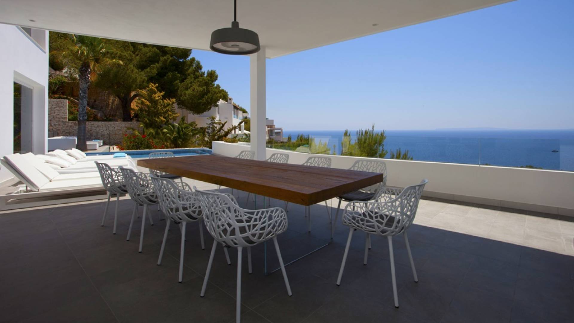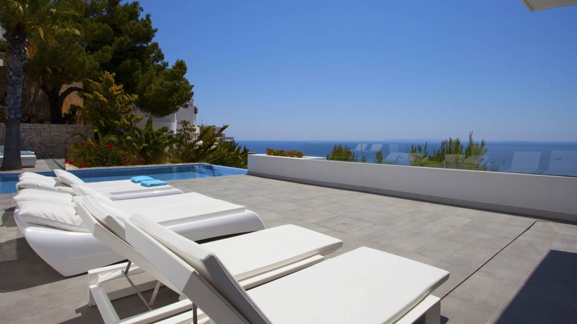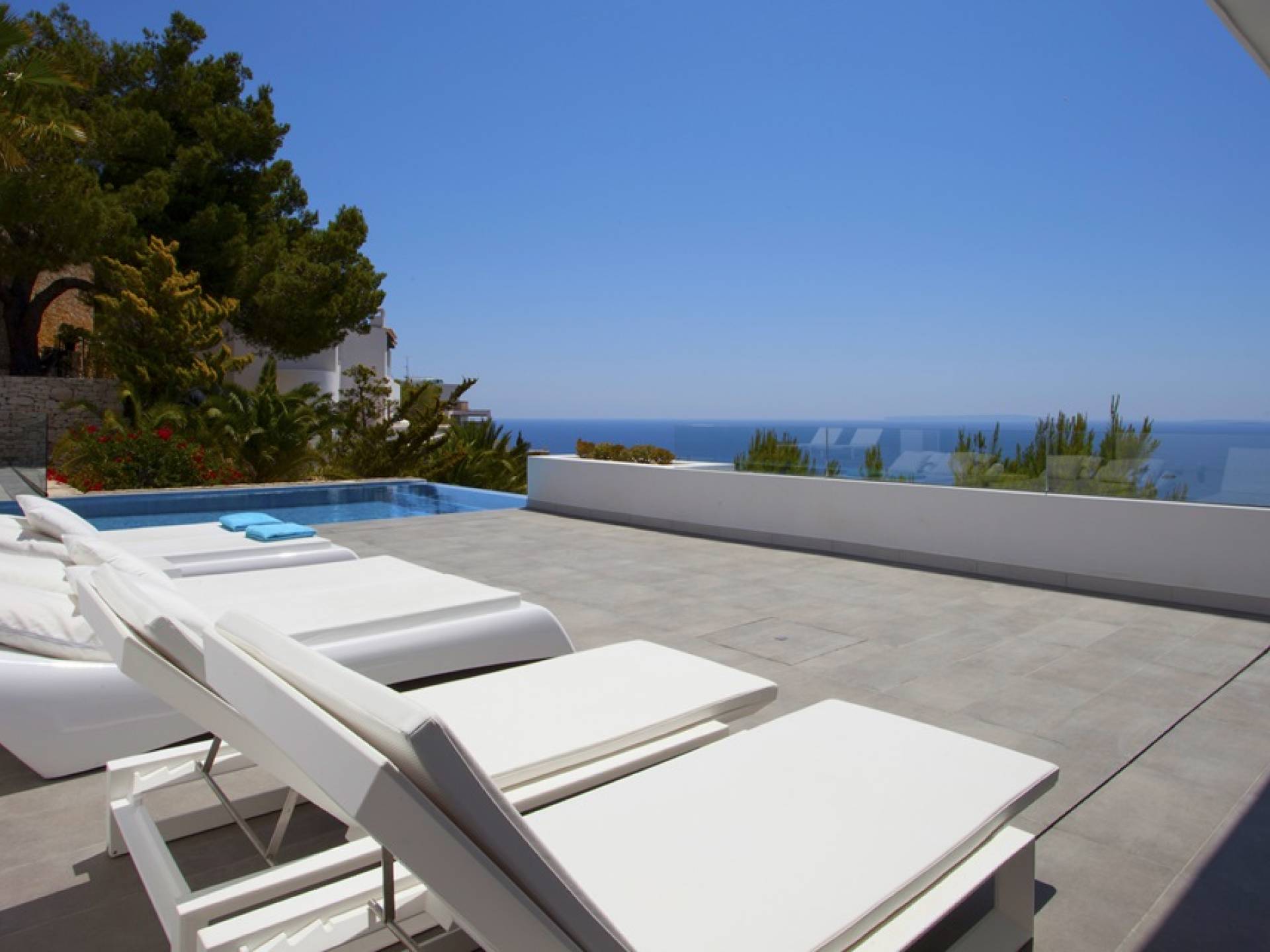 Снаружи есть пейзажный бассейн с системой струйного течения, так что вы можете плавать часами, любуясь великолепными видами. На открытом патио есть крытая обеденная зона на 10 человек, 10 шезлонгов вокруг бассейна, а также удобный лаундж-уголок для отдыха. Здесь вы можете насладиться захватывающим видом на море, лодки и остров Форментера. . На вилле также есть душ на открытом воздухе и площадка для барбекю Big Green Egg.
