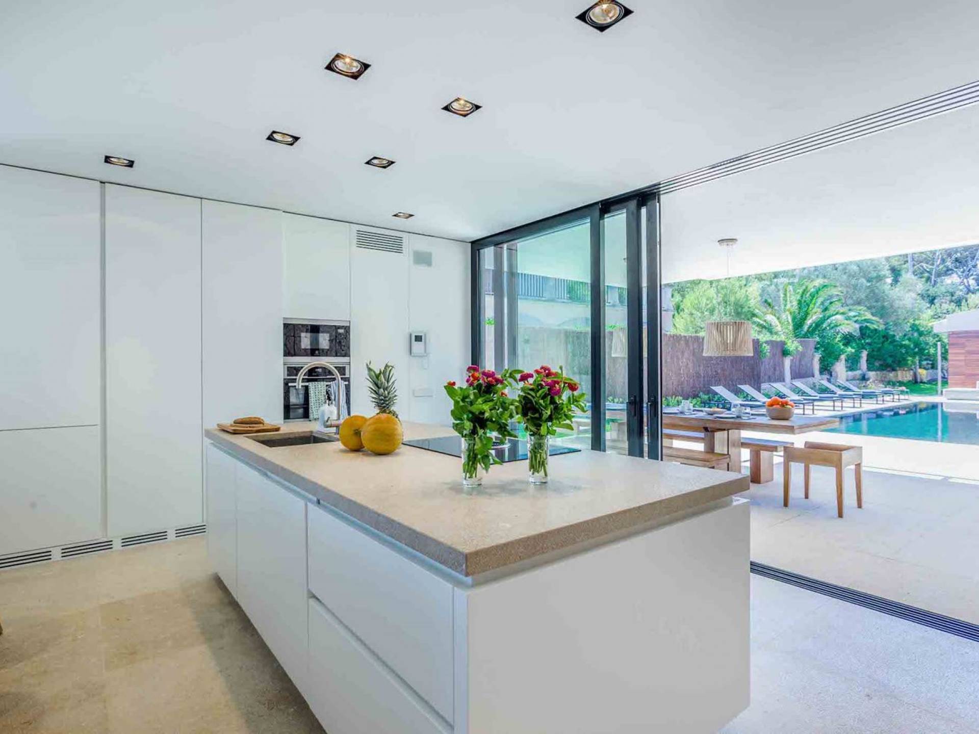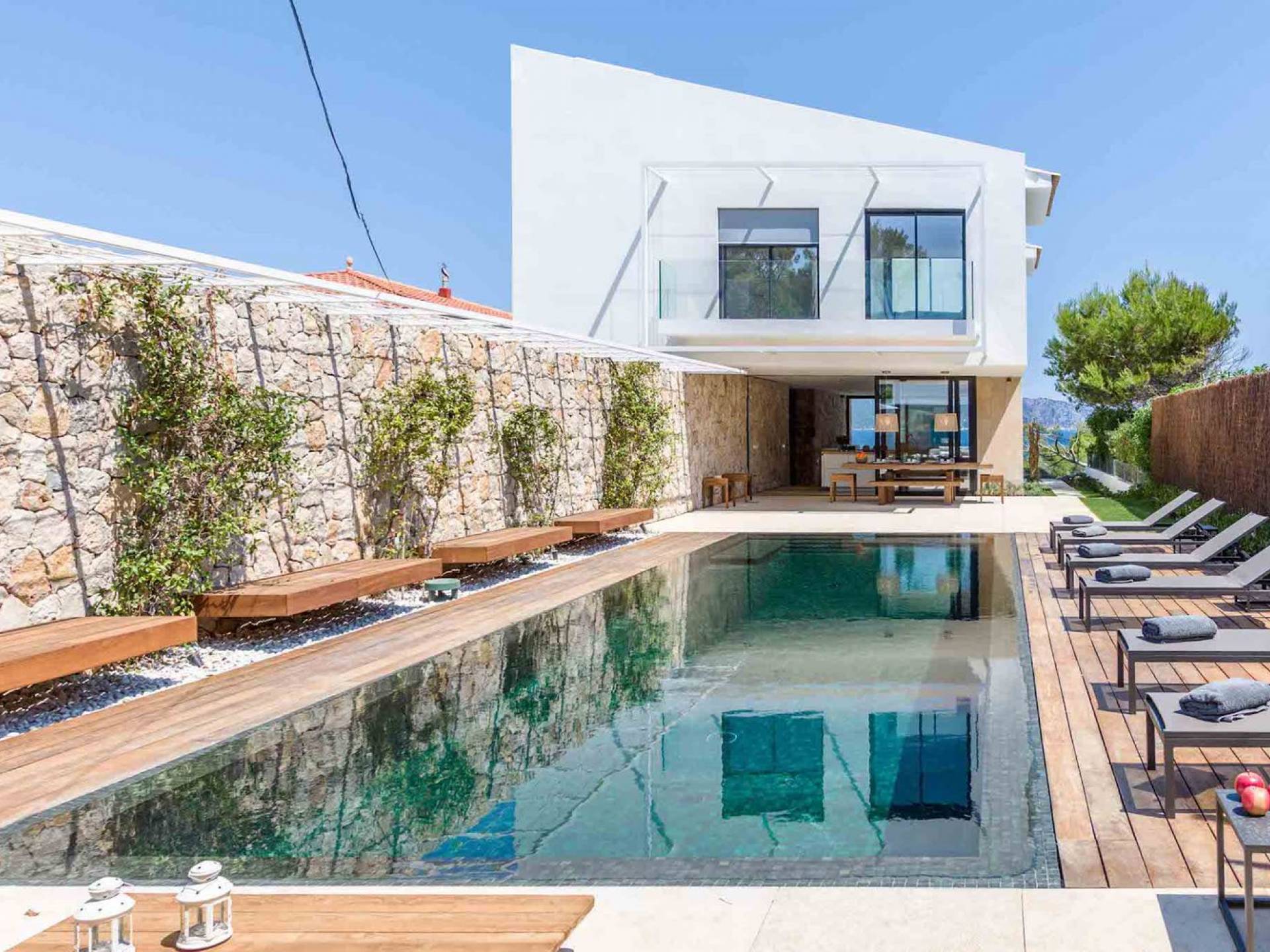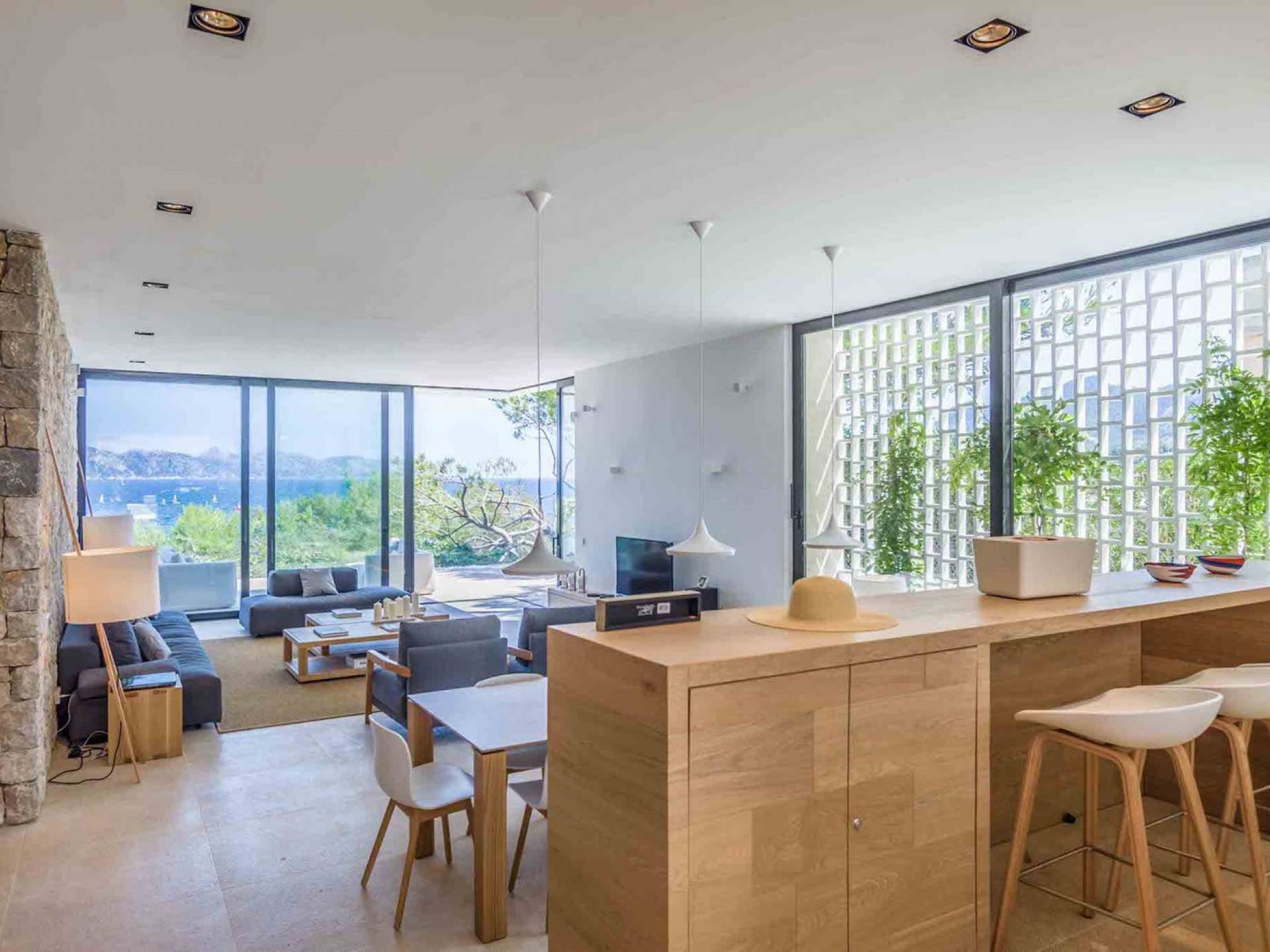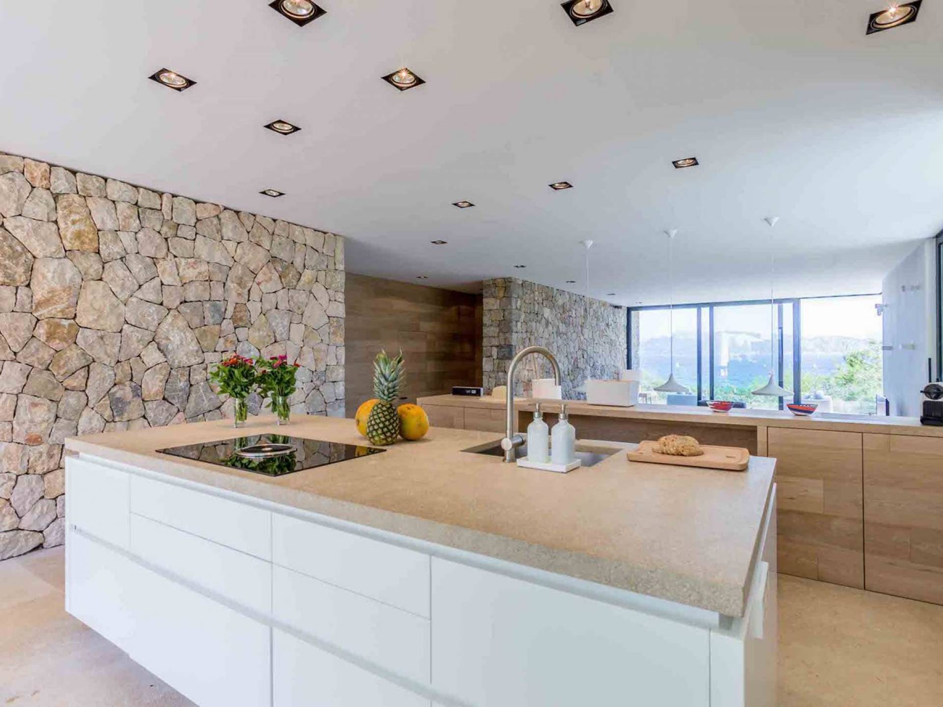 Из полностью оборудованной открытой кухни вы можете выйти на террасу, расположенную рядом с бассейном, где вы можете насладиться великолепным видом во время обеда или выпить коктейль после ужина, расслабившись в одной из нескольких зон отдыха на улице. В подвале дома находится прачечная, а на верхнем этаже - фантастическая терраса на крыше с прекрасным видом на море и горы. В саду у бассейна находится открытая ванная комната, а также отдельная гостевая спальня с двуспальной кроватью и ванной комнатой.