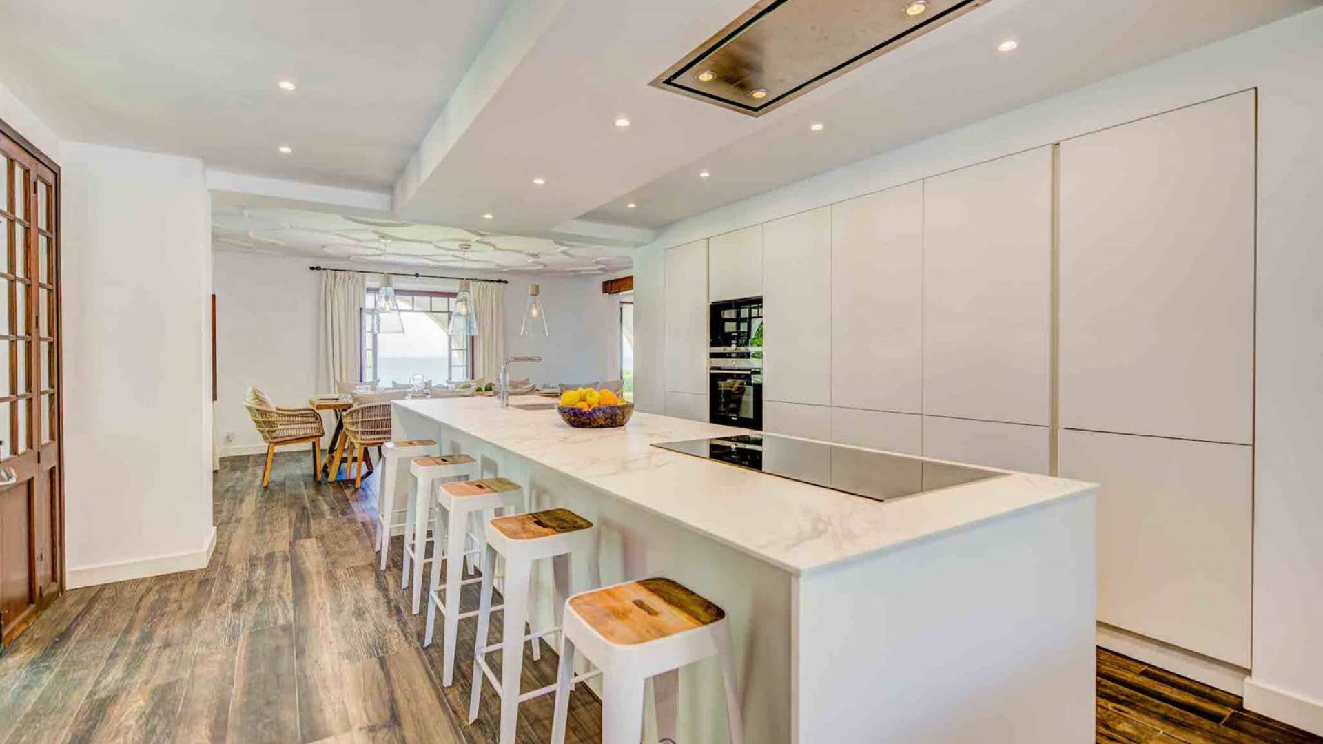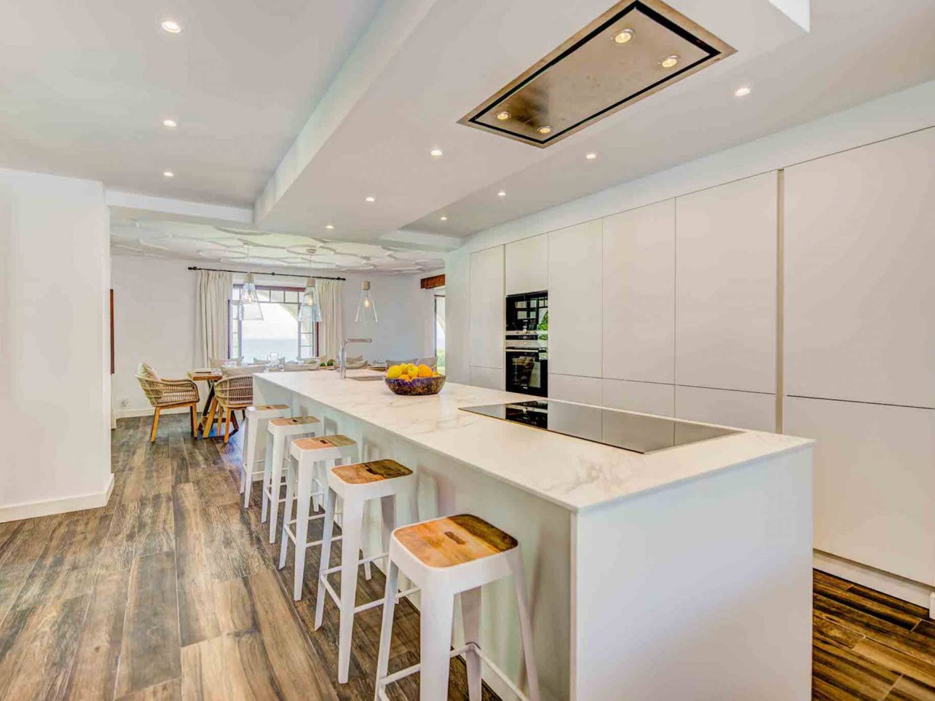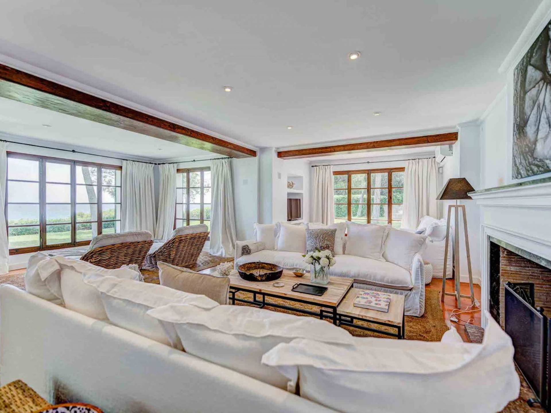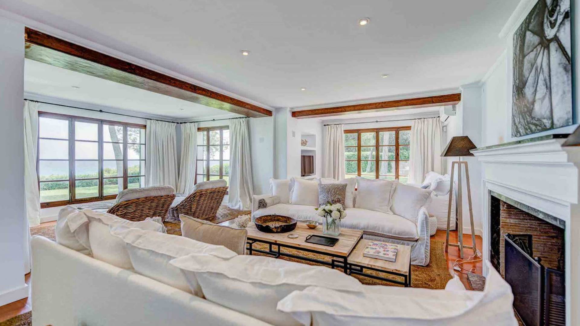 Огромные окна во всем доме делают его очень светлым, и почти из всех открываются прекрасные виды. В гостиной большой камин, отдельный ТВ-уголок и огромные роскошные диваны, а в обеденной зоне - ближе к недавно отремонтированной, полностью оборудованной кухне - большой обеденный стол.