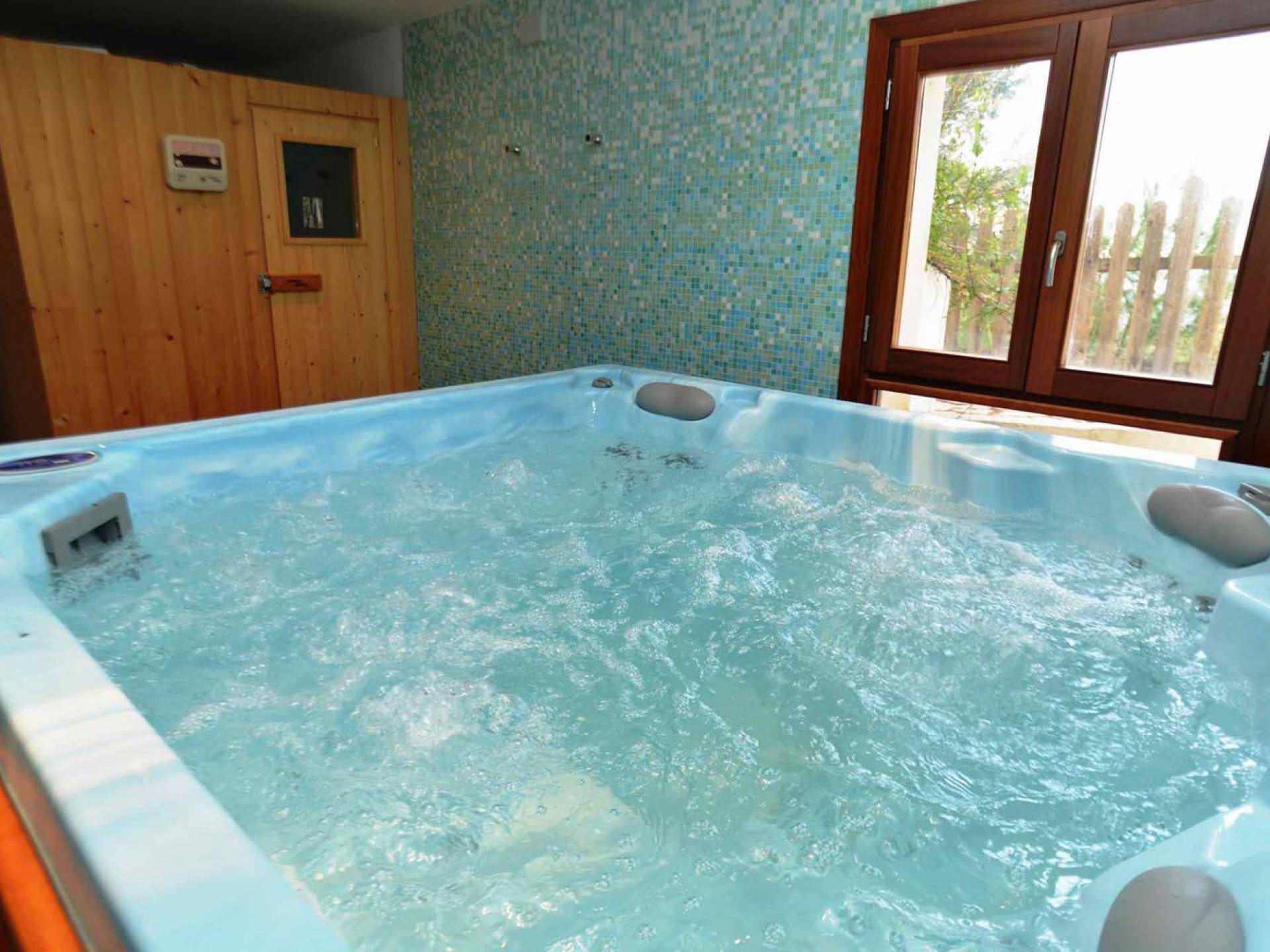 На нижнем этаже находится детская площадка, СПА-зал с сауной и джакузи; находясь в саду, лестница ведет к прекрасному бассейну со встроенной зоной для детей.