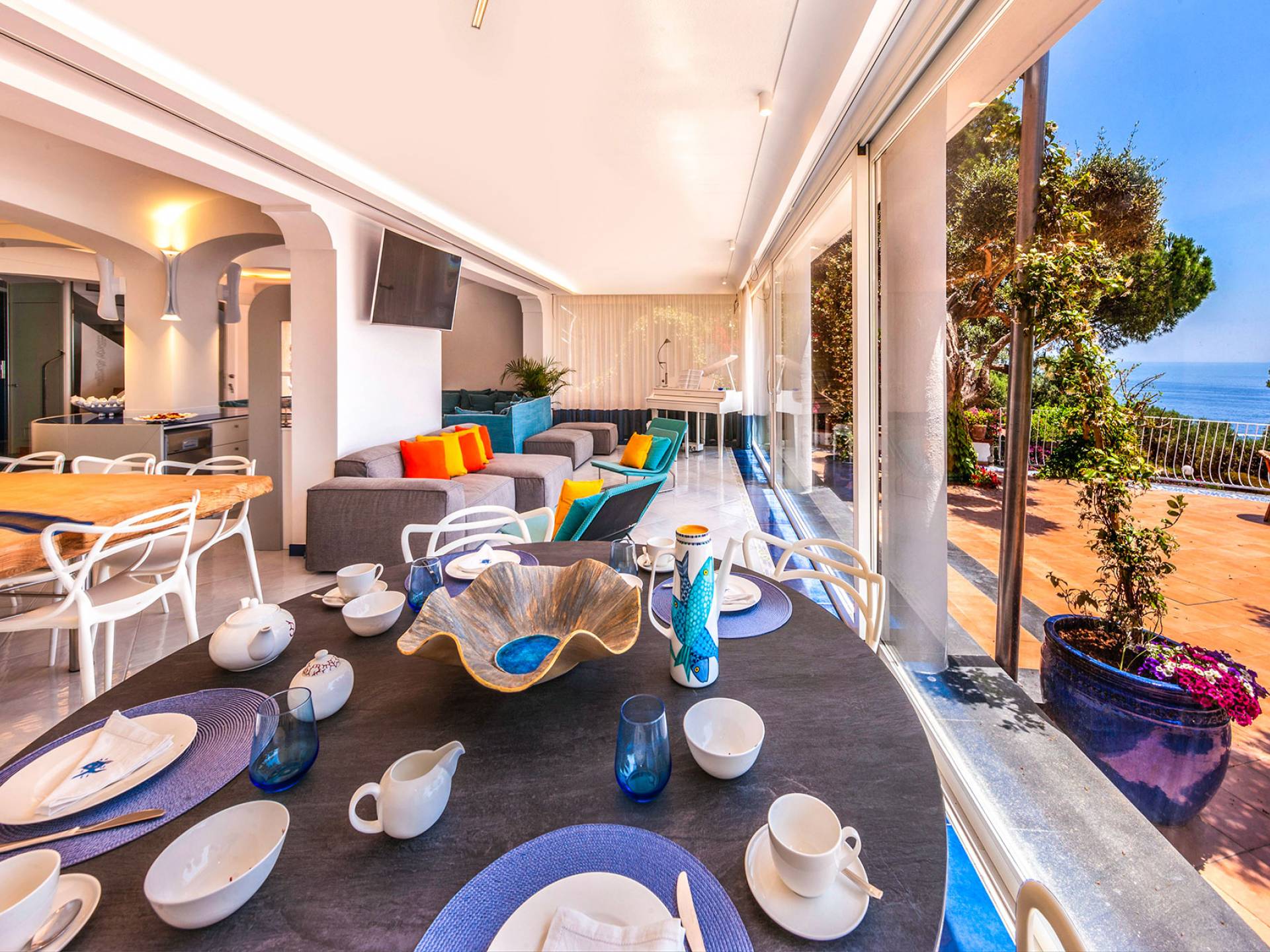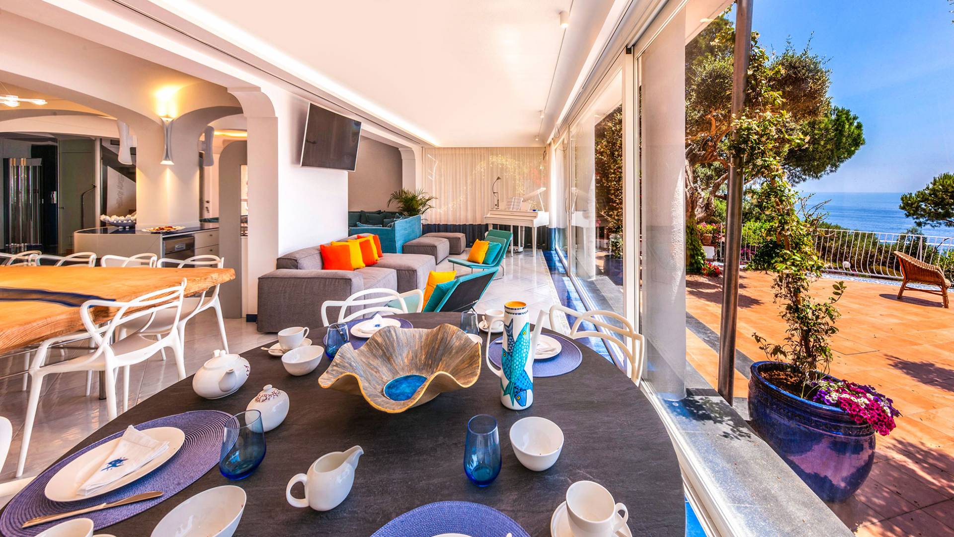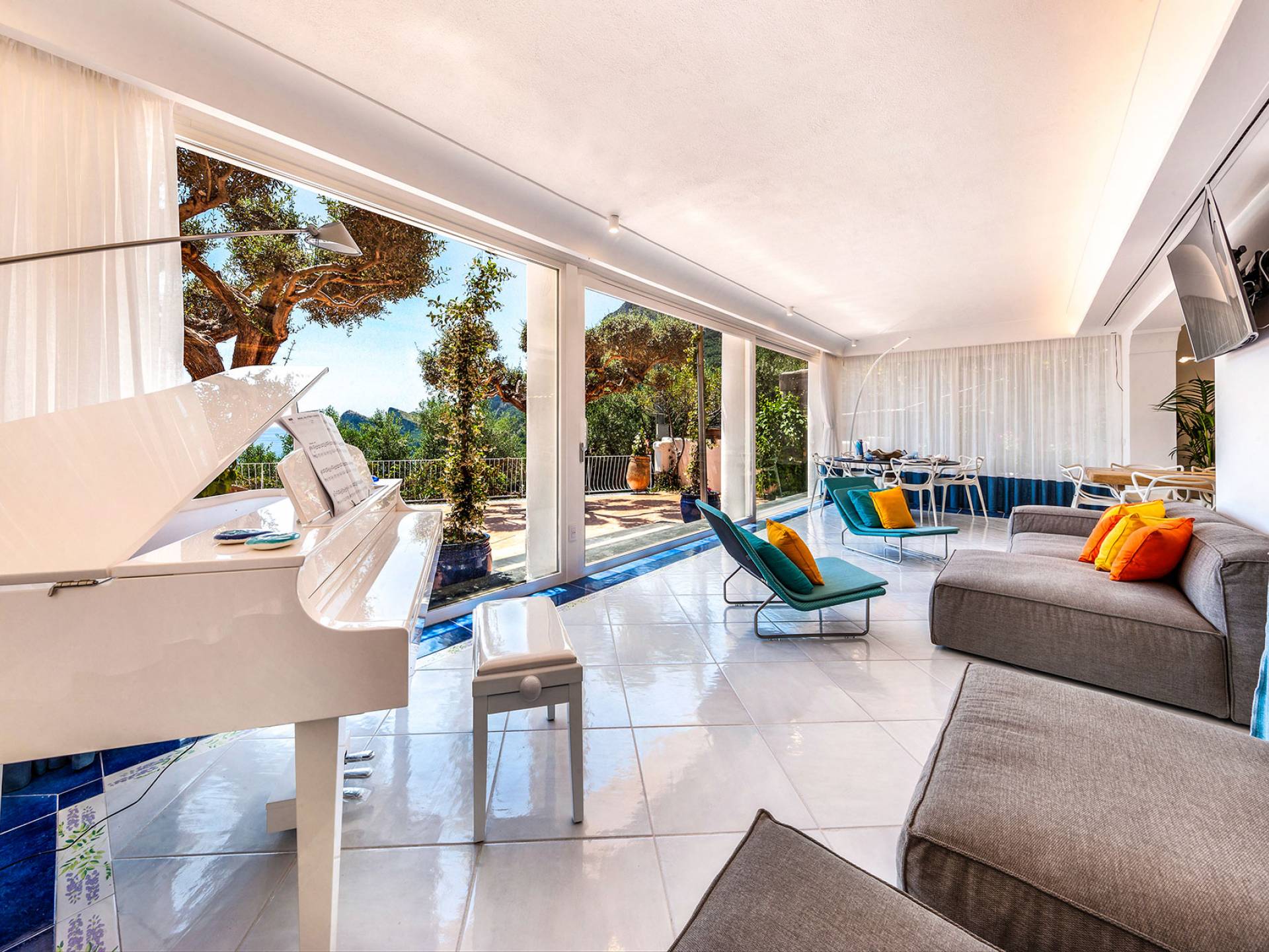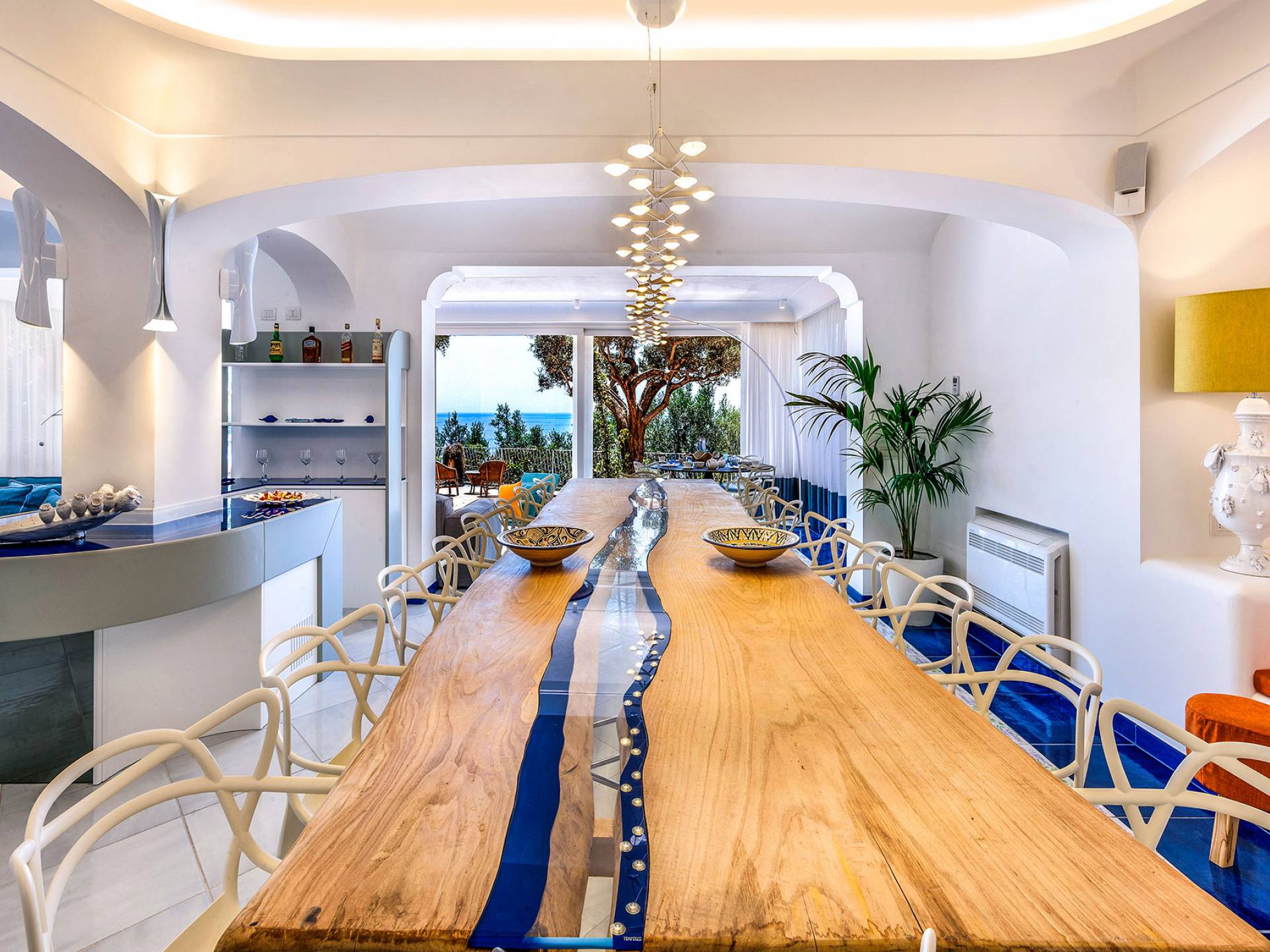 Вилла Бепина Сорренто - это роскошная вилла с 7 спальнями и частным бассейном. Расположенный недалеко от города Нерано и Марина-дель-Кантоне, этот трехэтажный дом предлагает впечатляющий вид на море практически со всех сторон. Интерьеры включают в себя просторную гостиную, обеденную зону с видом на сад, полностью оборудованную кухню, барный уголок и вместительные террасы с видом на побережье. В общей сложности семь спален с вымытыми стенами светлых тонов, современными тканями, книгами и предметами доступны для гостей. Со вкусом подобранная мебель и местные материалы были подобраны и смешаны друг с другом, в результате чего получилась сбалансированная, наполненная светом атмосфера. Керамика на заказ и ручной работы. Ремонт закончился в 2019 году.