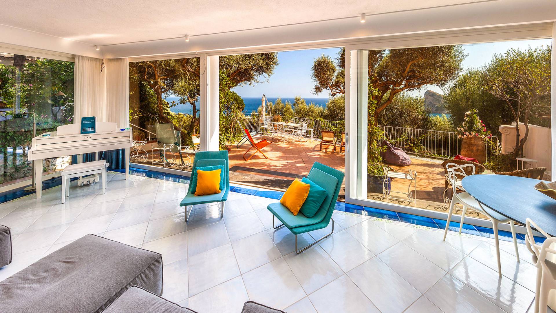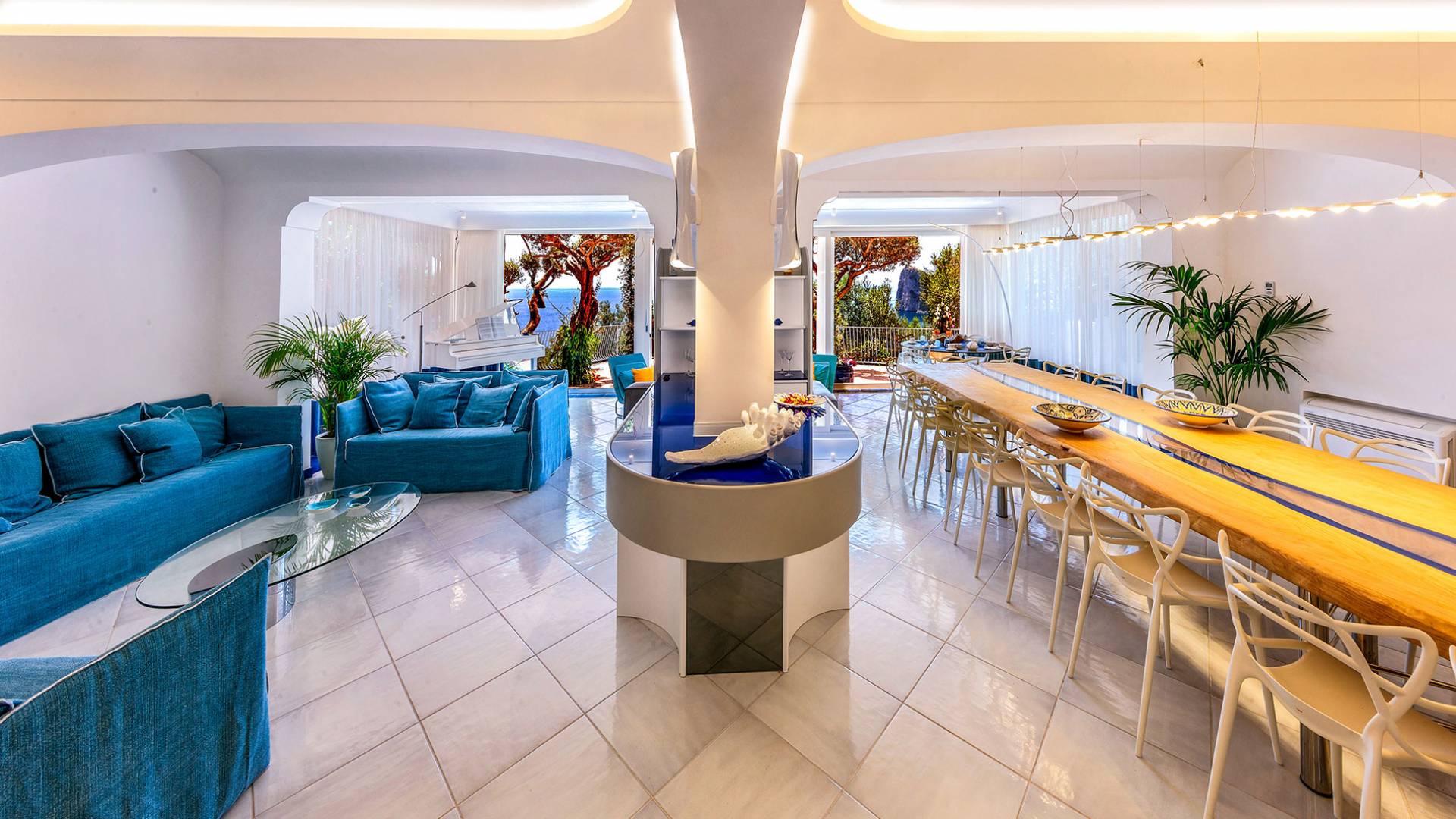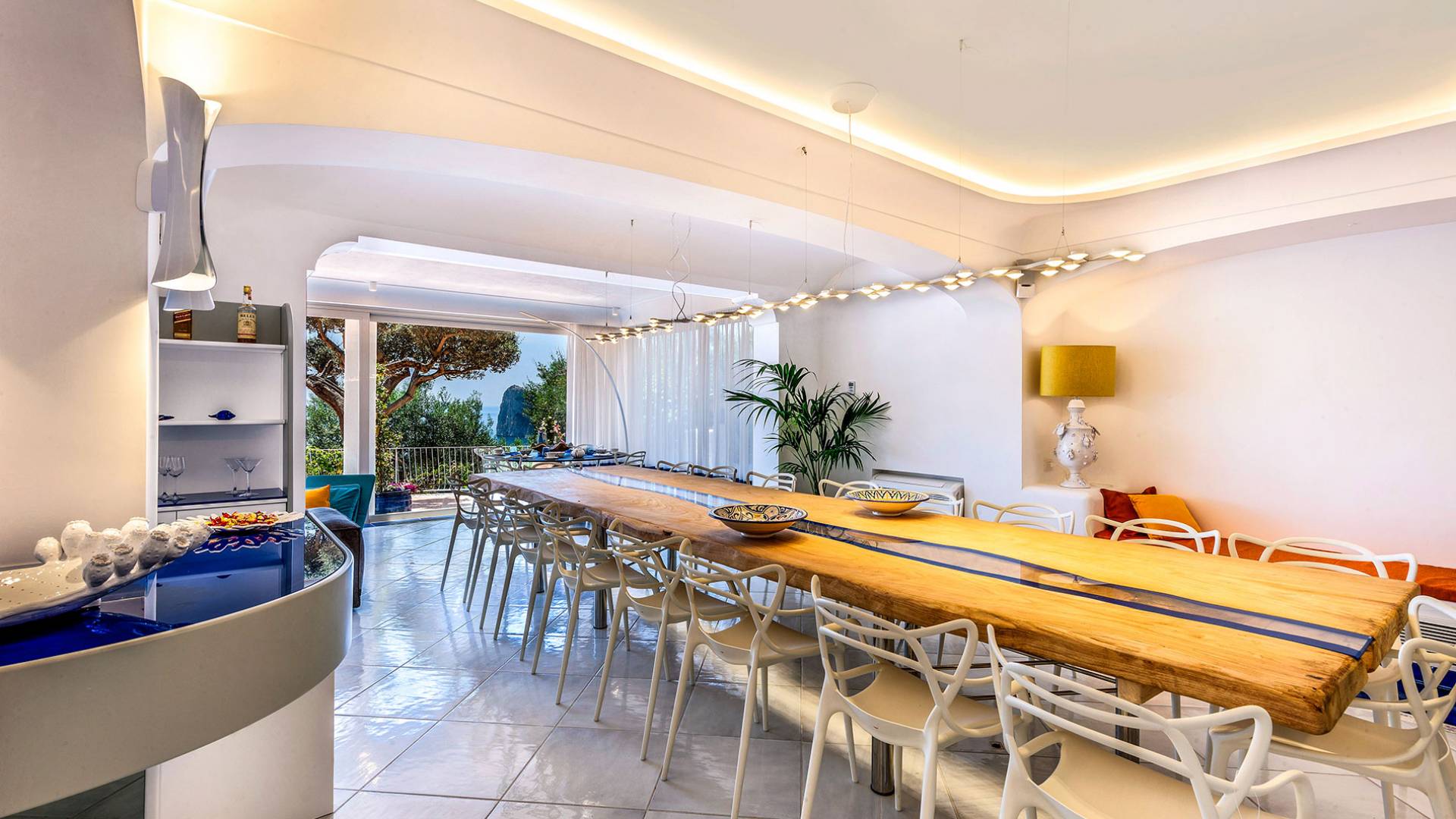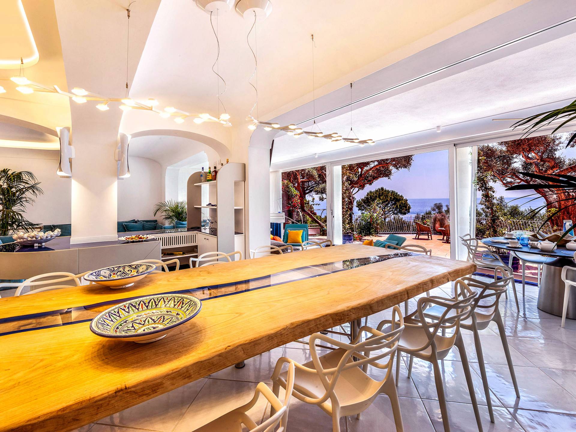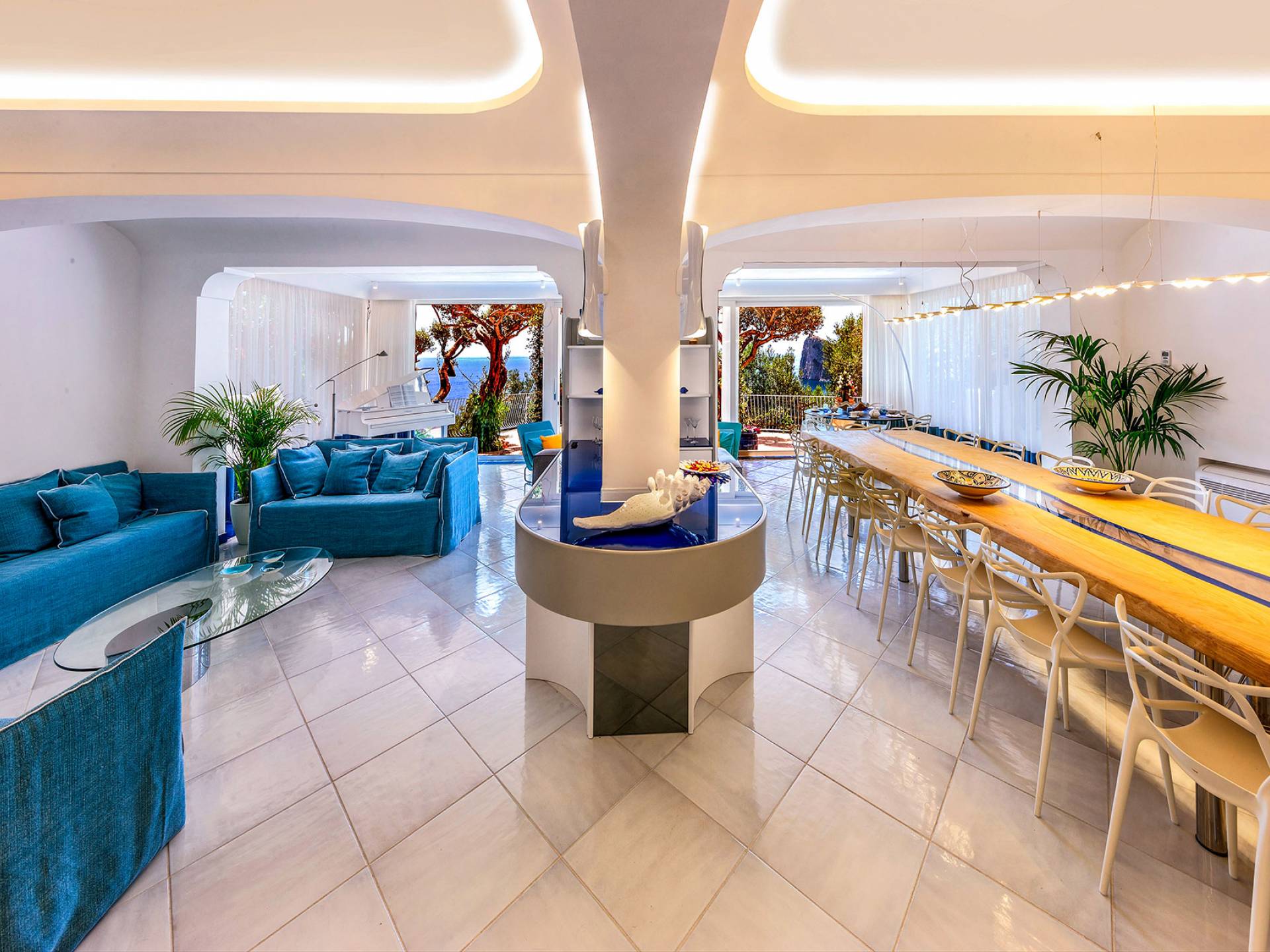 Вилла Бепина Сорренто - это роскошная вилла с 7 спальнями и частным бассейном. Расположенный недалеко от города Нерано и Марина-дель-Кантоне, этот трехэтажный дом предлагает впечатляющий вид на море практически со всех сторон. Интерьеры включают в себя просторную гостиную, обеденную зону с видом на сад, полностью оборудованную кухню, барный уголок и вместительные террасы с видом на побережье. В общей сложности семь спален с вымытыми стенами светлых тонов, современными тканями, книгами и предметами доступны для гостей. Со вкусом подобранная мебель и местные материалы были подобраны и смешаны друг с другом, в результате чего получилась сбалансированная, наполненная светом атмосфера. Керамика на заказ и ручной работы. Ремонт закончился в 2019 году.