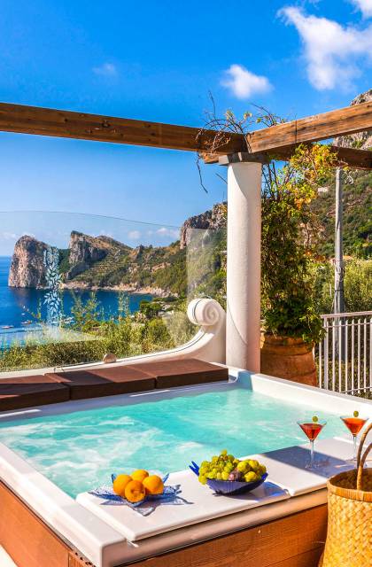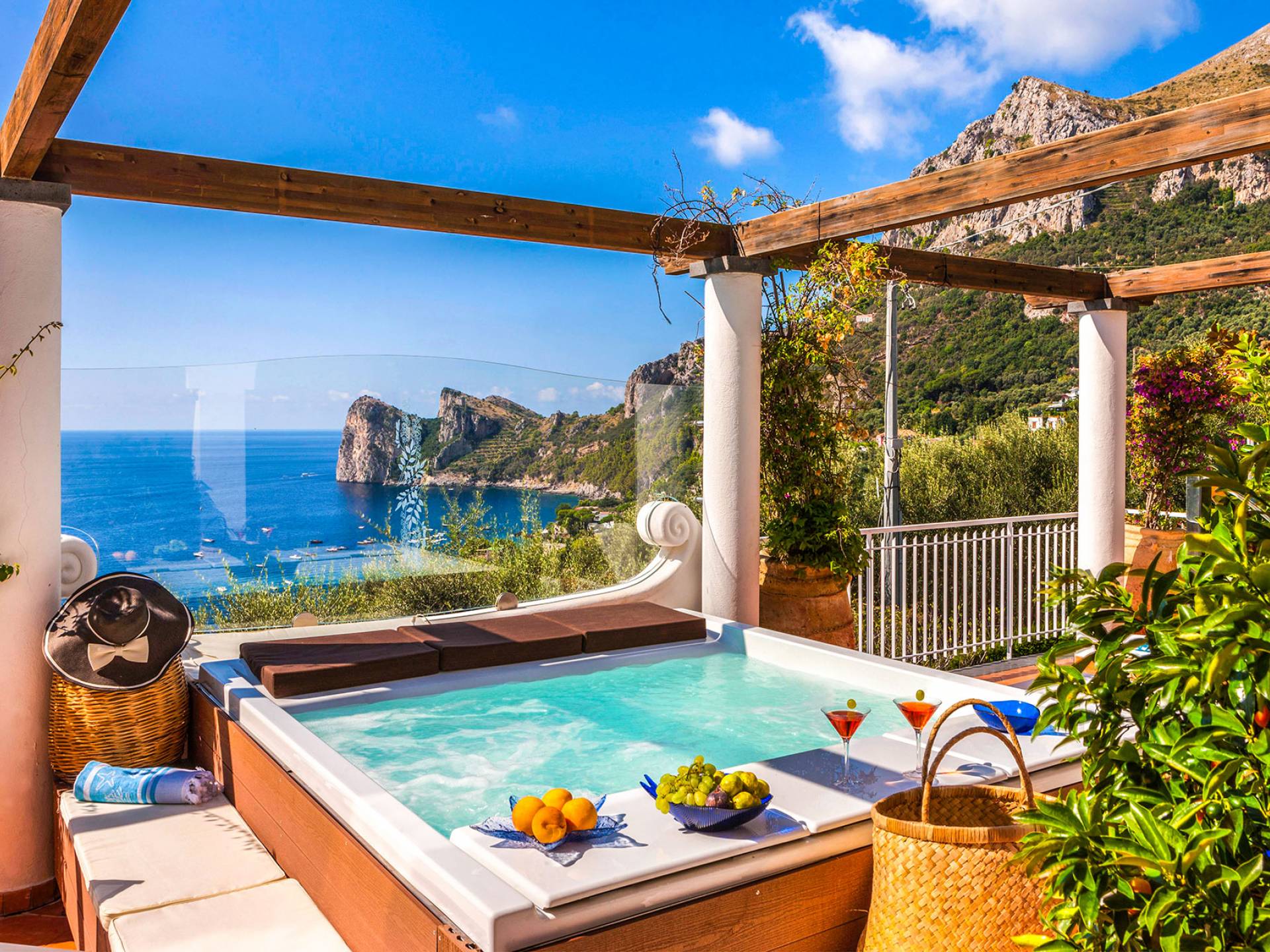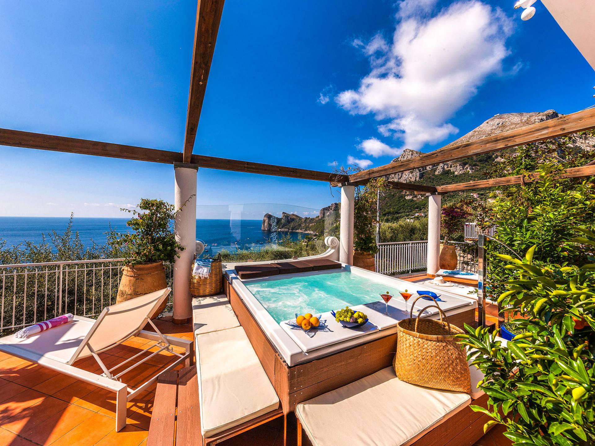 Драгоценные материалы, солярий и панорамный джакузи на верхней террасе - вот некоторые из особенностей этого веселого пляжа Марина-дель-Кантоне, недалеко от Позитано и Амальфи - на самом деле, использование частной лодки из этой пристани оказывается самый зрелищный и самый безочередной из всех доступных. Бассейн-солярий и шезлонги, есть джакузи на террасе двух главных спален.