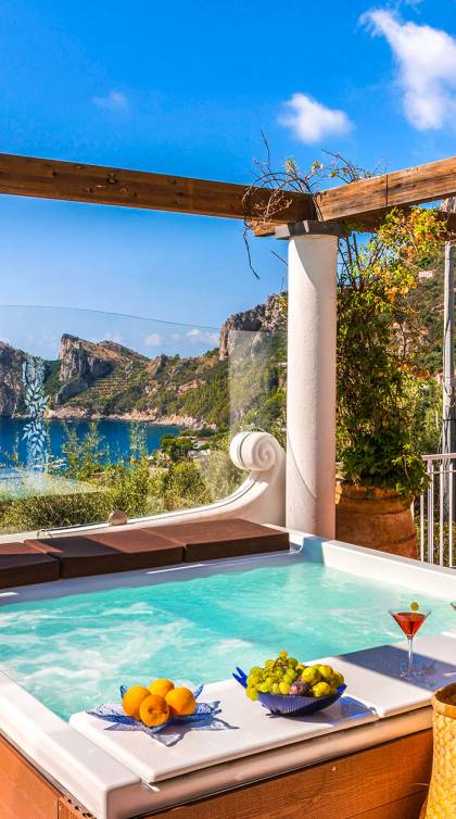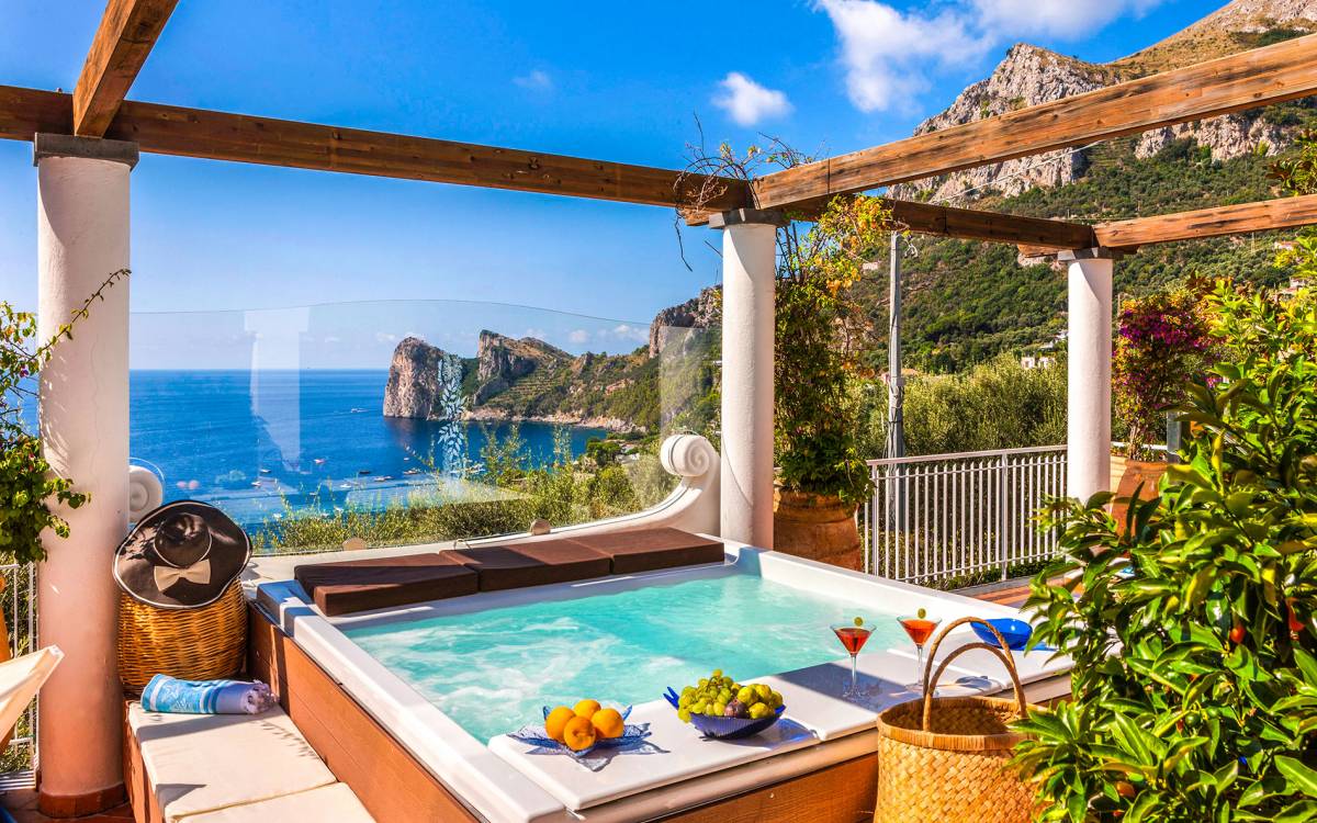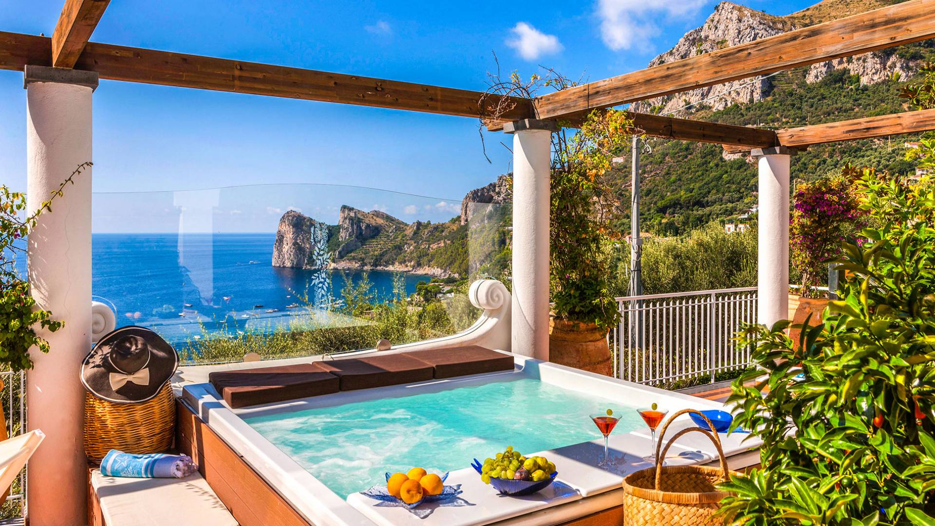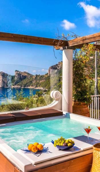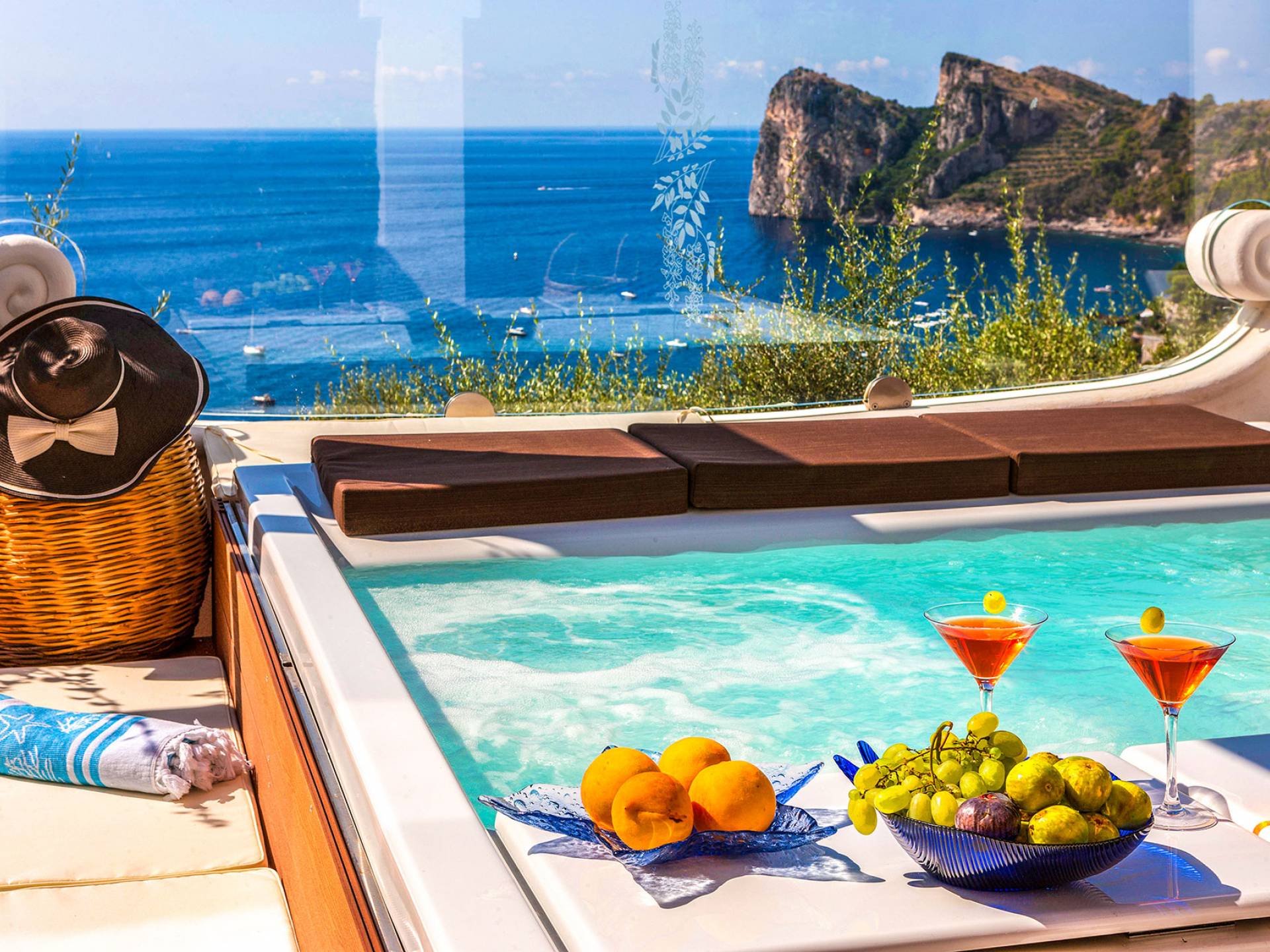 Драгоценные материалы, солярий и панорамный джакузи на верхней террасе - вот некоторые из особенностей этого веселого пляжа Марина-дель-Кантоне, недалеко от Позитано и Амальфи - на самом деле, использование частной лодки из этой пристани оказывается самый зрелищный и самый безочередной из всех доступных. Бассейн-солярий и шезлонги, есть джакузи на террасе двух главных спален.