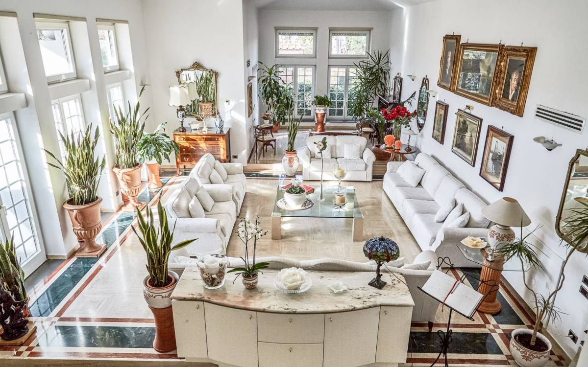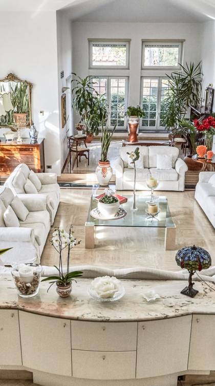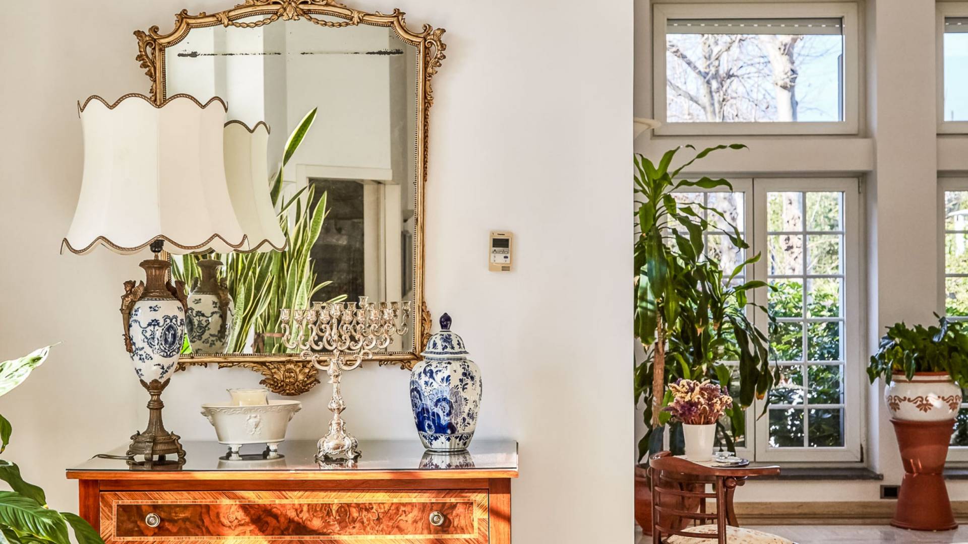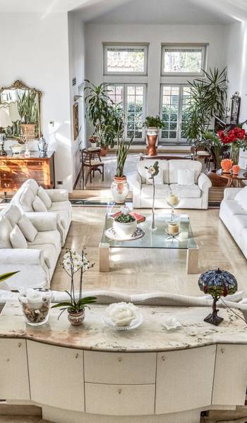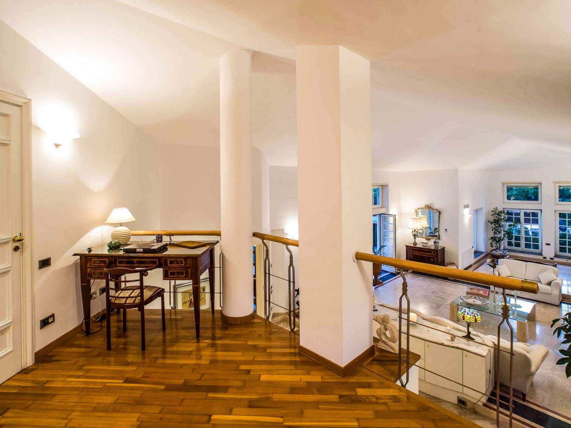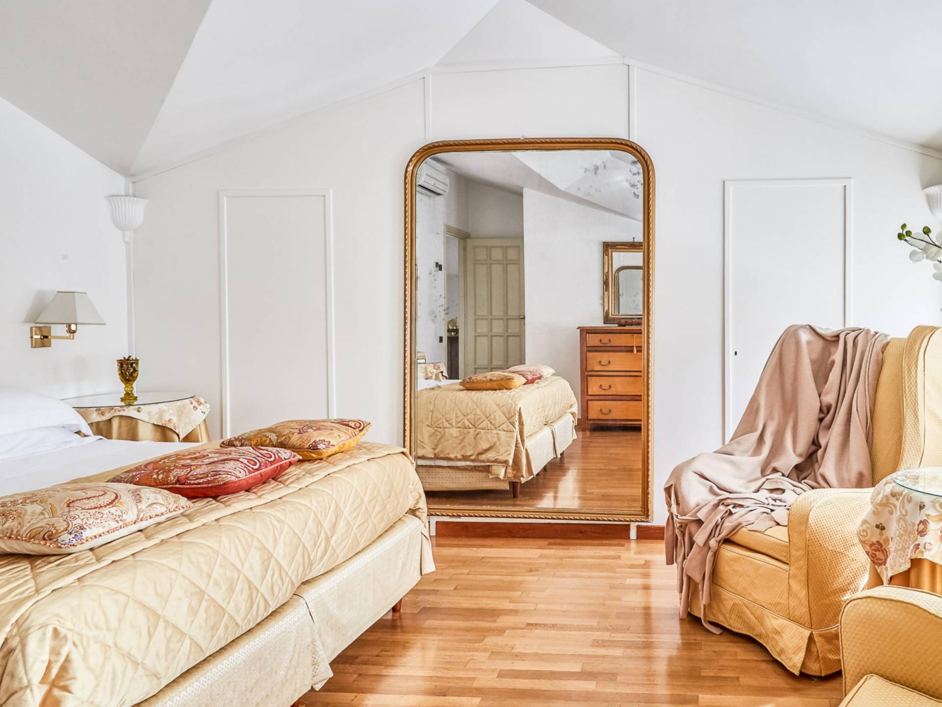 Сад ведет к главному входу: слева вы найдете просторную гостиную, кабинет, столовую и музыкальные комнаты. Справа от входа вы найдете деревенскую зону с кухней, столовой, гостиной и одной спальней с двуспальной кроватью с неподходящим душем и туалетом. Все пять спален расположены на третьем этаже. Также имеется отдельная автономная комната для гостей с одной двуспальной кроватью и ванной комнатой.