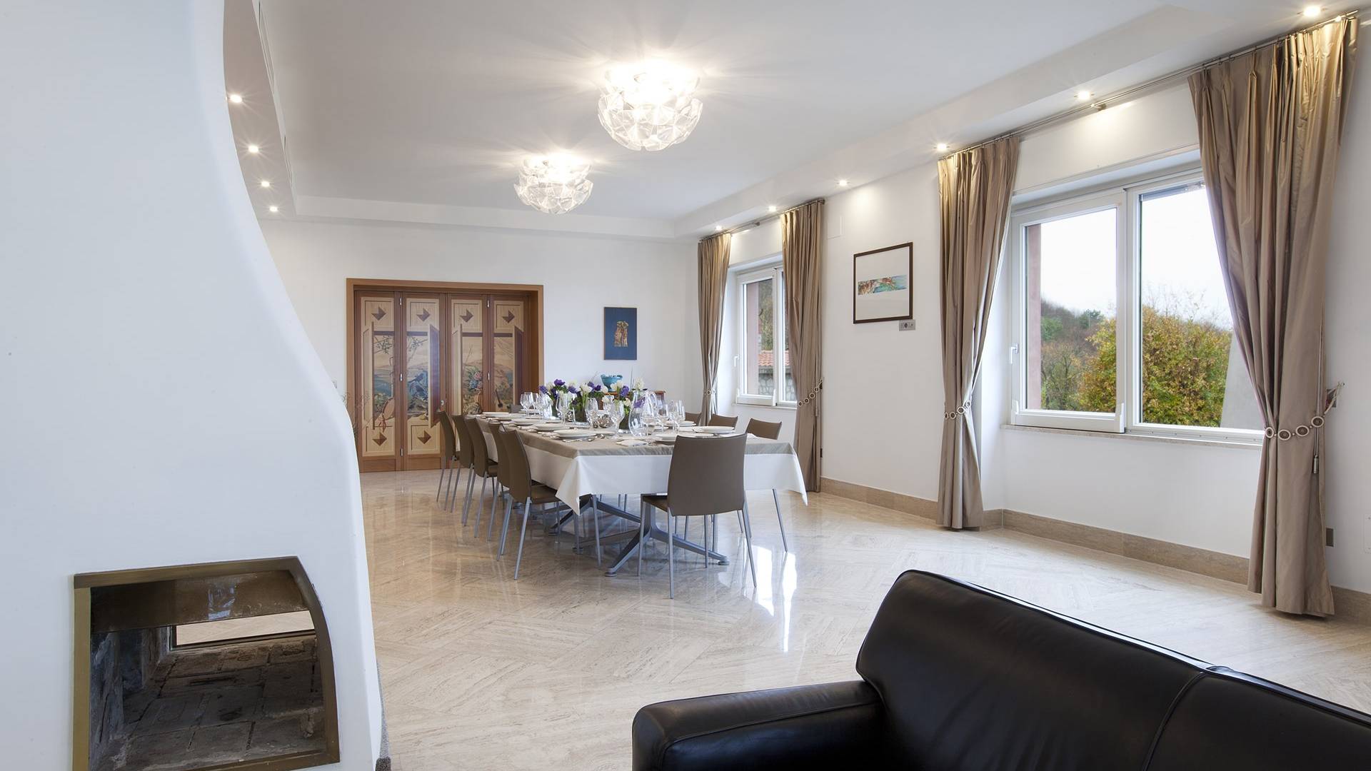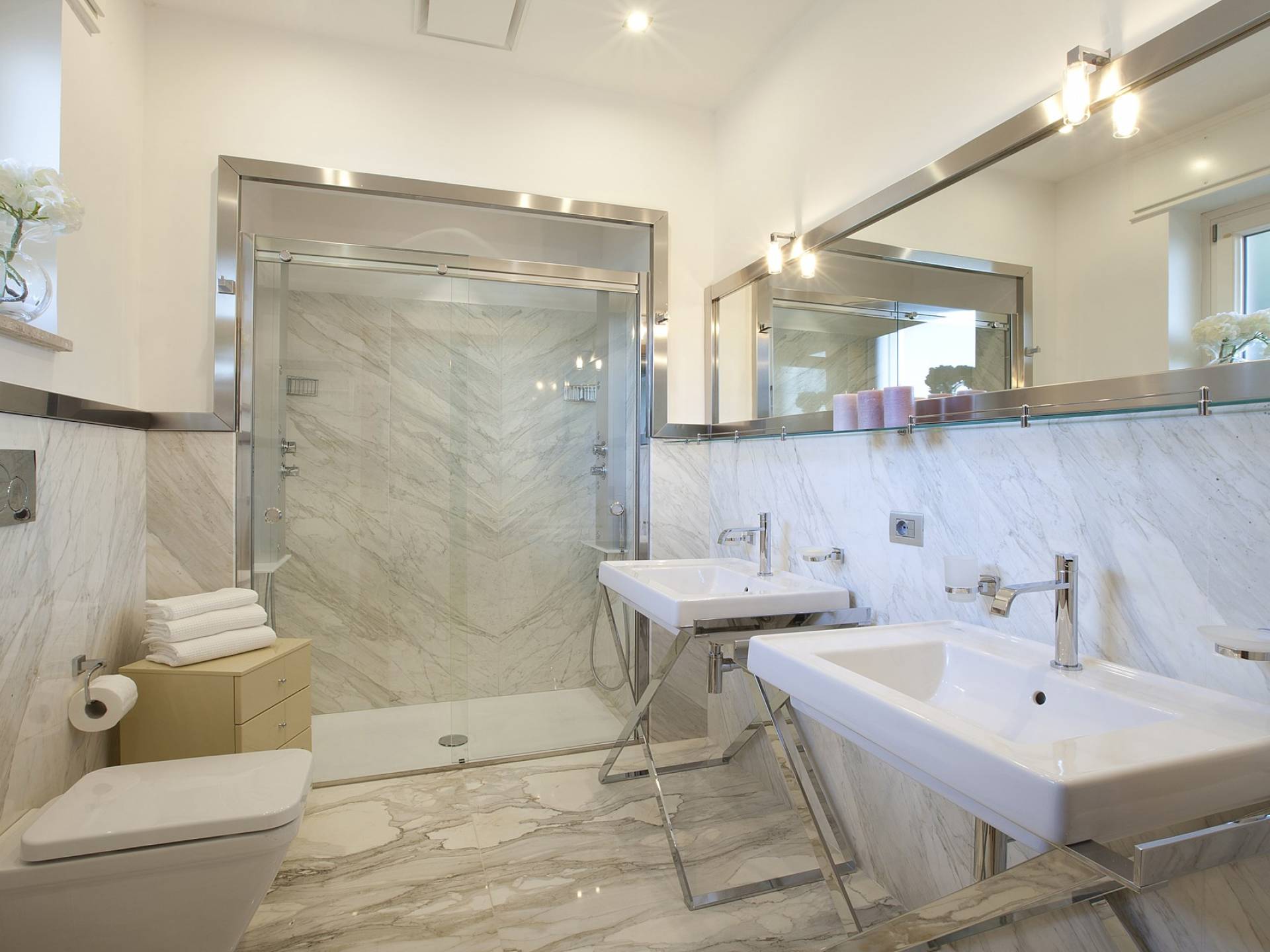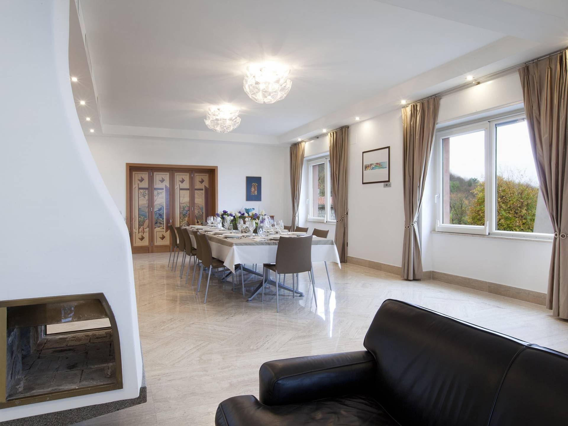На нижней террасе находится великолепный бассейн с внутренним гидромассажем, большой солярий с шезлонгами, зонтиками, столами и стульями, внешний душ, а также удобная раздевалка с небольшой ванной. Также в вашем распоряжении характерная беседка со столами, стульями и дровяной печью, где вы можете насладиться приготовлением классической неаполитанской пиццы!