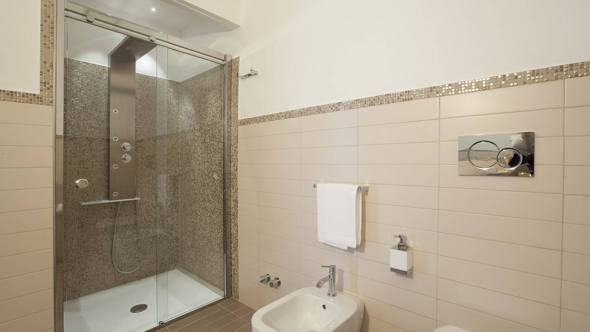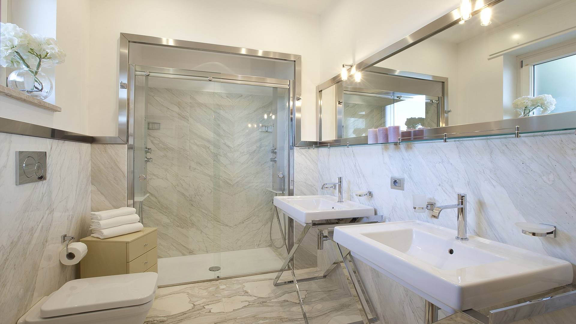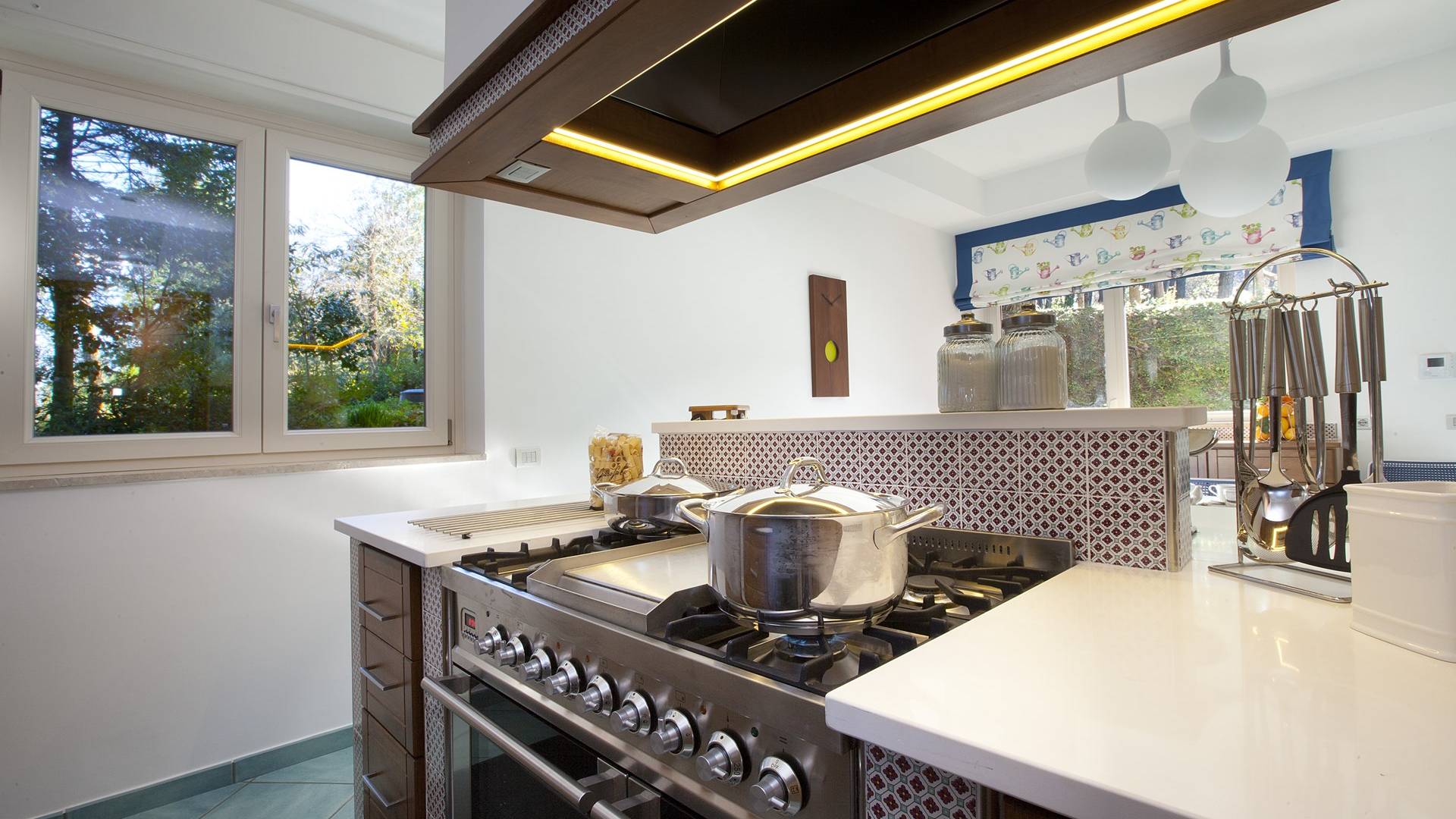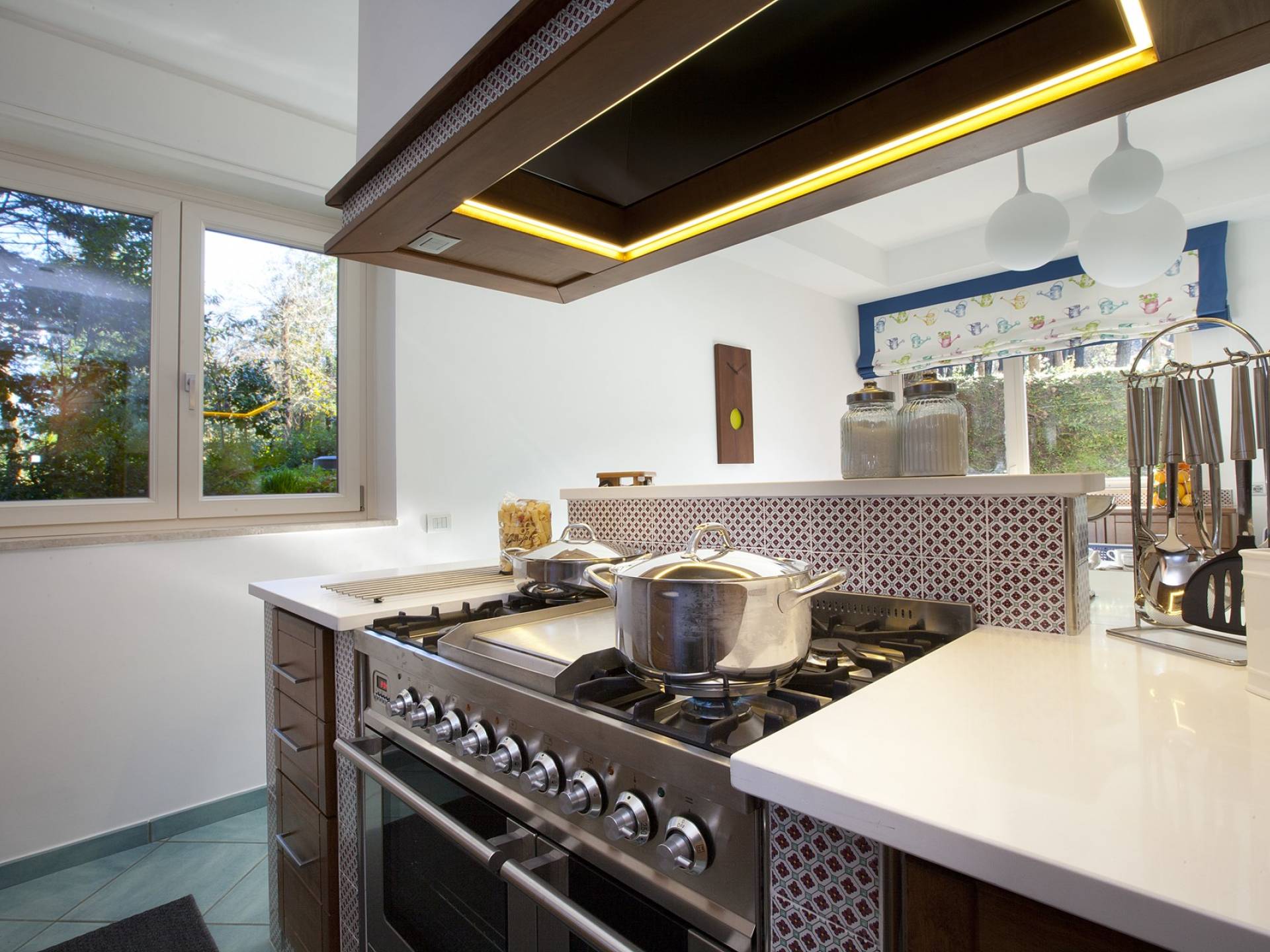 На нижней террасе находится великолепный бассейн с внутренним гидромассажем, большой солярий с шезлонгами, зонтиками, столами и стульями, внешний душ, а также удобная раздевалка с небольшой ванной. Также в вашем распоряжении характерная беседка со столами, стульями и дровяной печью, где вы можете насладиться приготовлением классической неаполитанской пиццы!