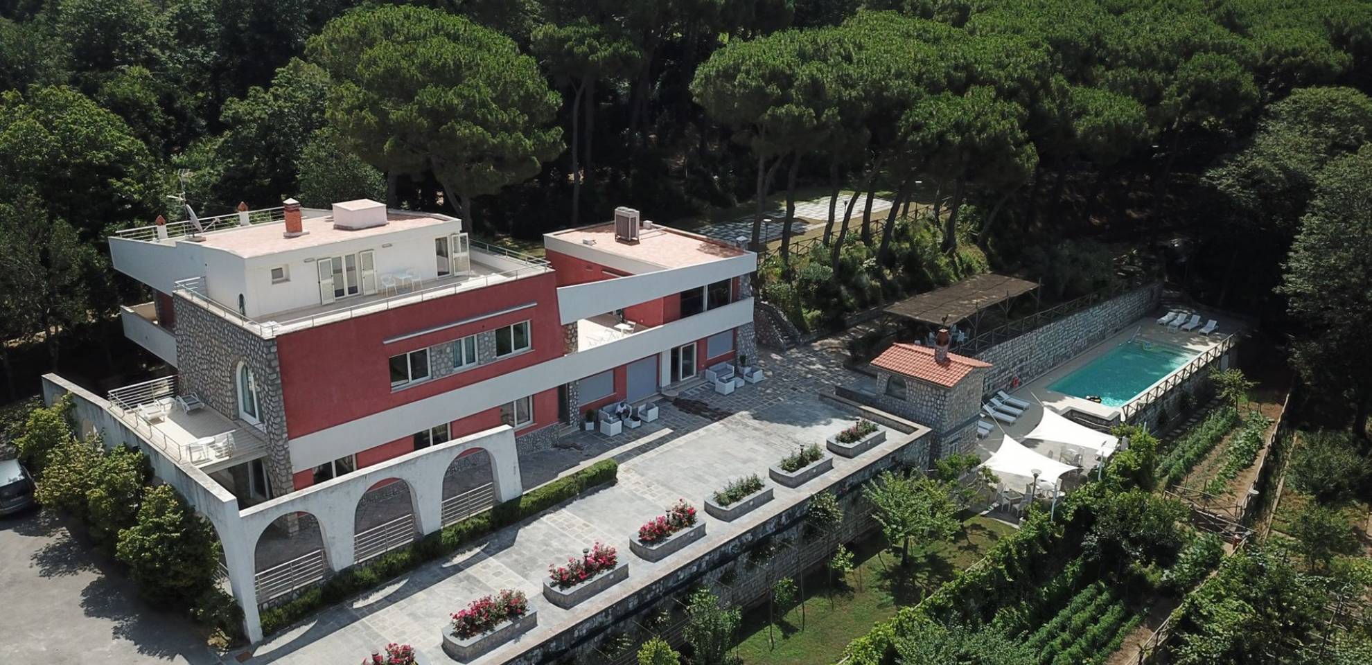 Villa Mariù Сорренто напоминает стихи известной песни и приветствует своих посетителей в одном из самых красивых мест Италии. Вы окунетесь в очаровательный город русалок и сможете насладиться видом, подвешенным между голубым небом и синим морем. Здание, спроектированное архитектором Эухенио Гальдиери в 1950-х годах, сохранило свой современный стиль и оригинальный характер, не изменившись с течением времени, при этом оснащая себя лучшими удобствами, которые делают его роскошной резиденцией среди зелени ок. 14 тыс. Кв. М.