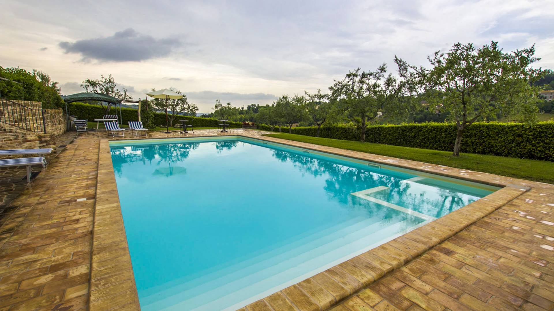 Шесть комнат Villa Serena The Marches, в которых могут с комфортом разместиться до 18 человек, просторные и светлые, они оснащены отдельными ванными комнатами и всеми другими удобствами. Вся конструкция сделана из кирпича и камня, детали и отделка выполнены из дерева и кованого железа. На открытых площадках есть несколько зон отдыха, площадка для барбекю с прилегающей дровяной печью и игровая площадка для детей. Также снаружи, к которому ведет изысканная лестница, есть красивый бассейн, окруженный патио для принятия солнечных ванн. Вокруг растут вековые оливковые деревья и другие декоративные деревья.