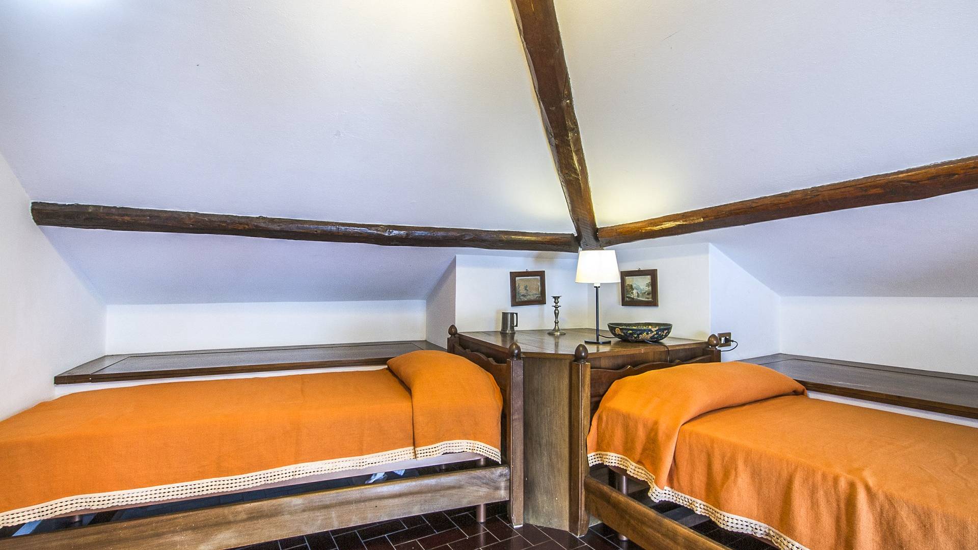 На втором этаже расположены 5 спален: одна спальня с двуспальной кроватью, отдельной террасой и ванной комнатой с душем, две спальни с двуспальной кроватью и террасой, одна спальня с двумя односпальными кроватями, одна спальня с 2 двухъярусными кроватями ( спальный 4) для детей. Две ванные комнаты с ванной и душем. Узкая лестница ведет на 2-й этаж, где вы найдете спальню с двумя небольшими односпальными кроватями (шириной 80 см для детей) и ванную комнату с душевой кабиной.