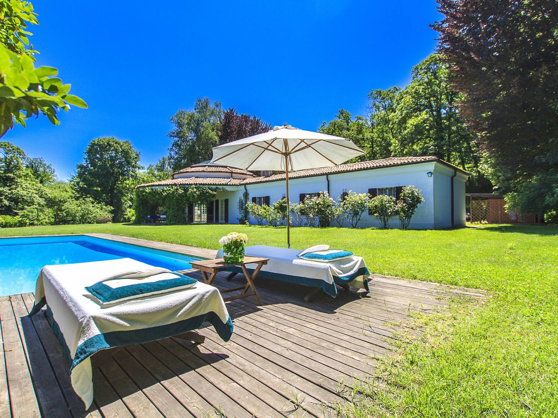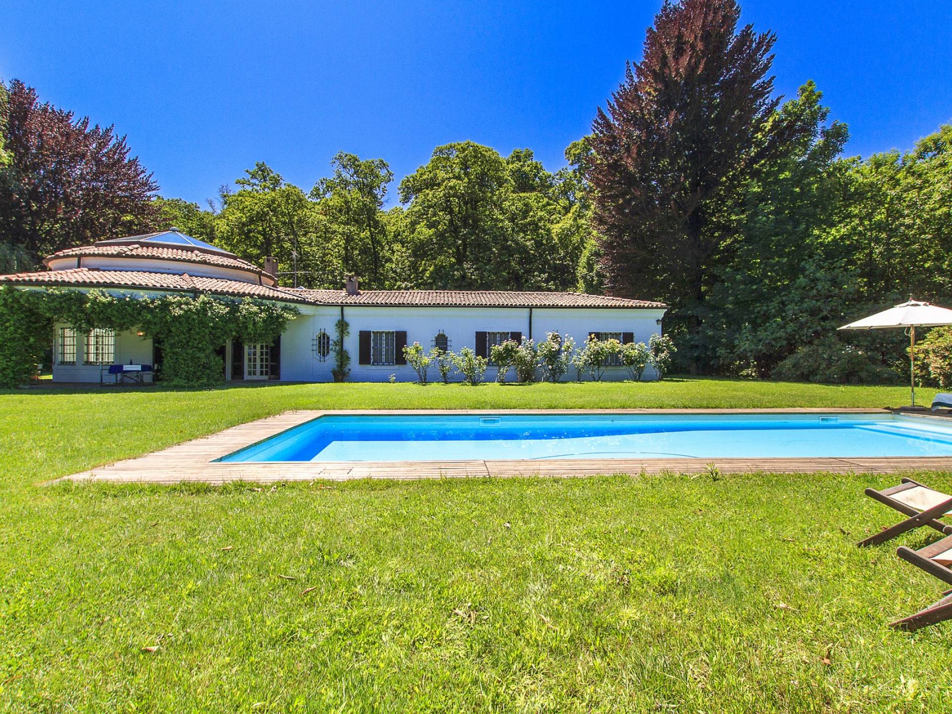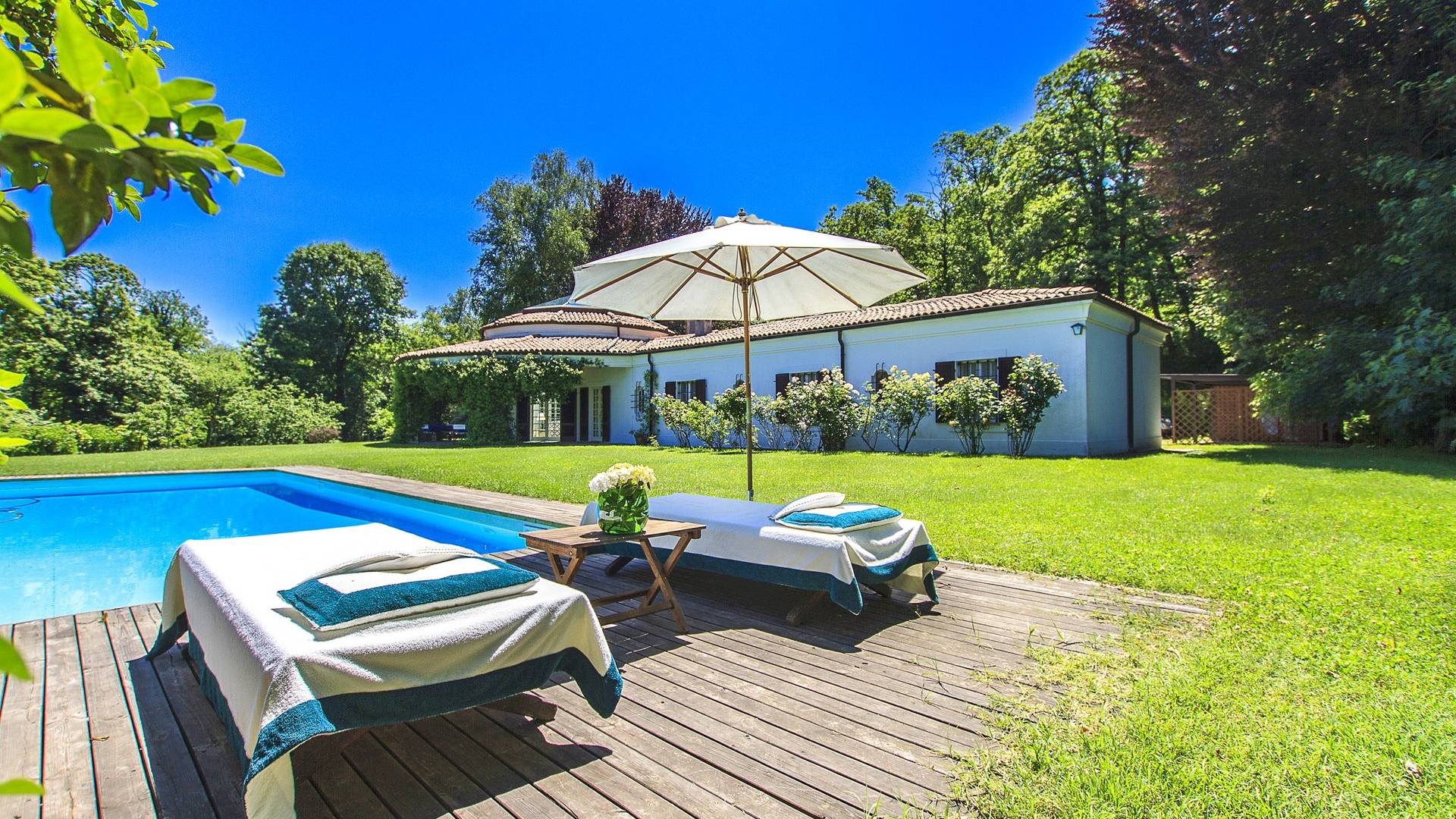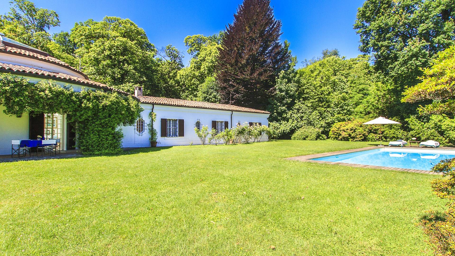 Главная круглая секция состоит из просторной и светлой гостиной с диванами и выходом на террасу, гостиной с телевизором и открытым камином, обеденной зоны, просторной кухни с большим деревянным столом и ванной комнаты с душ. Каждое из двух крыльев содержит главную спальню с двуспальной кроватью и ванной комнатой с ванной, спальню с двумя односпальными кроватями, спальню с двуспальной кроватью и ванную комнату с ванной. Снаружи вы можете выпить вина, поужинать и отдохнуть в тени крытой террасы со столами и стульями или насладиться солнцем в саду (1000 м²) с прекрасным видом на лужайку и озеро. Большой бассейн (11 х 5 м) окружен деревянным настилом с шезлонгами и зонтиками. Вилла расположена в большом частном парке (40000 м²), граничащем с охраняемым природным парком «Parco Naturale Lagoni di Mercurago», который идеально подходит для прогулок, спокойствия и умиротворения на лоне природы.