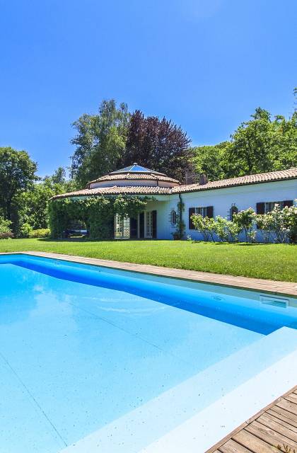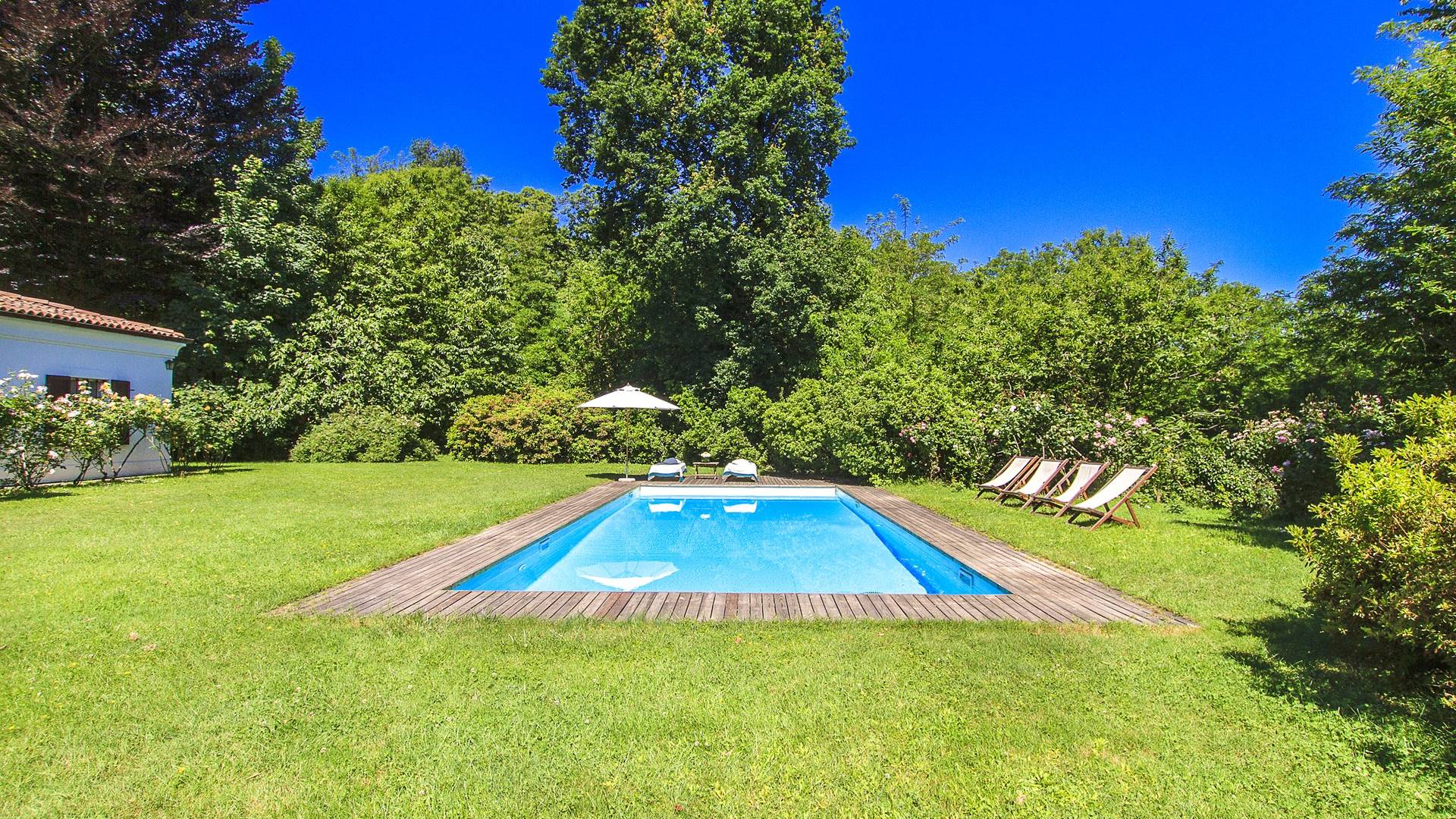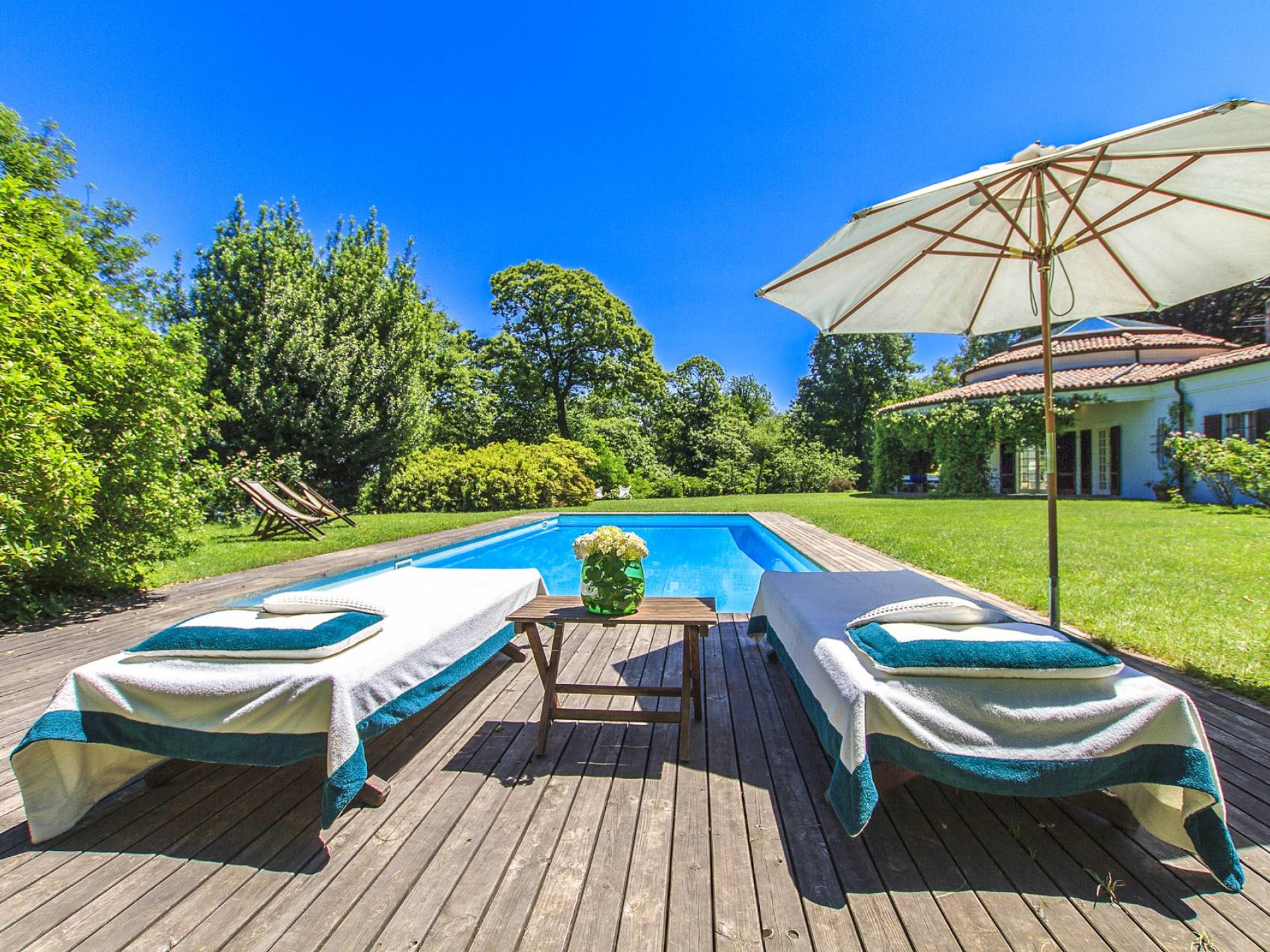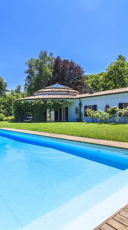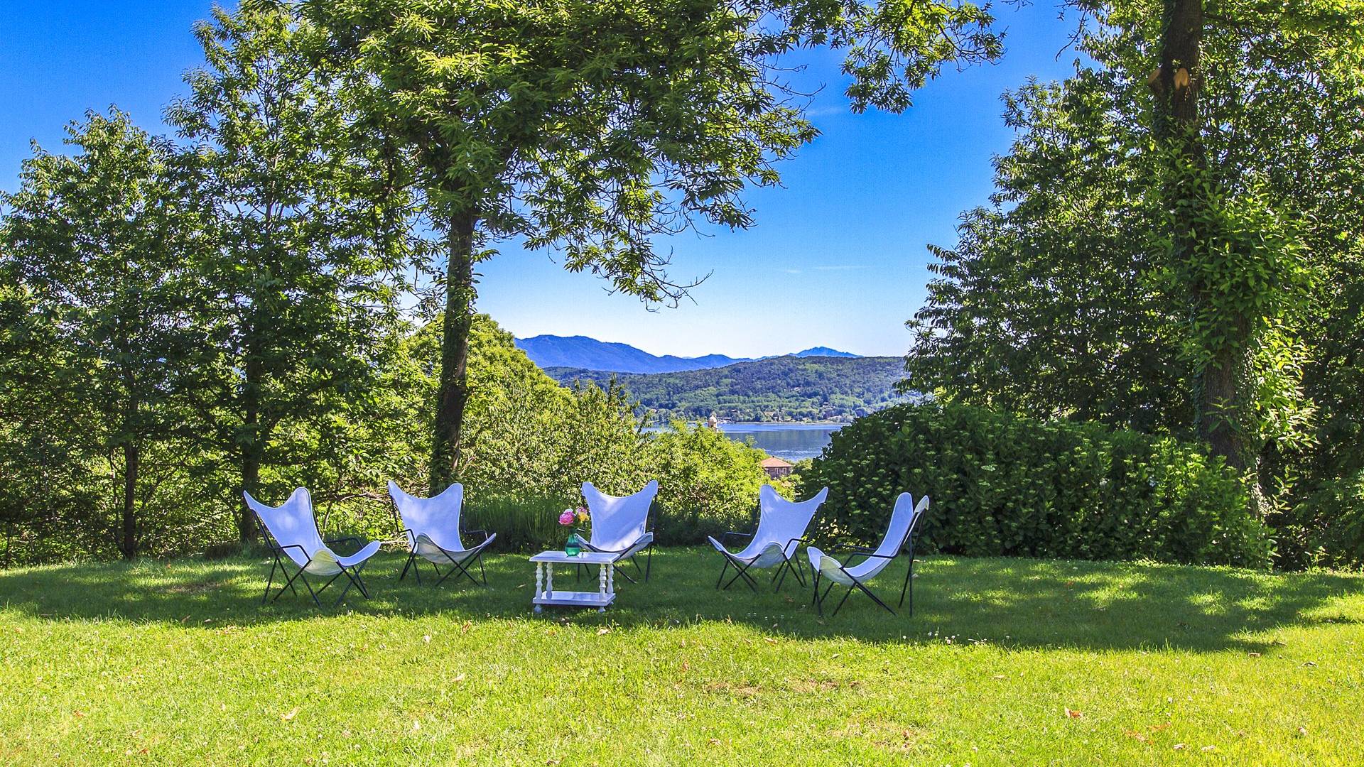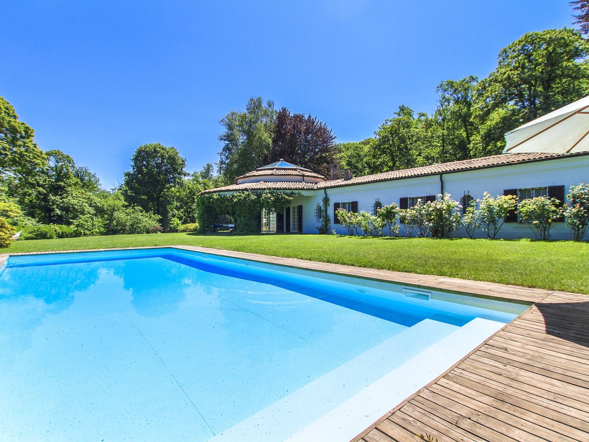 Главная круглая секция состоит из просторной и светлой гостиной с диванами и выходом на террасу, гостиной с телевизором и открытым камином, обеденной зоны, просторной кухни с большим деревянным столом и ванной комнаты с душ. Каждое из двух крыльев содержит главную спальню с двуспальной кроватью и ванной комнатой с ванной, спальню с двумя односпальными кроватями, спальню с двуспальной кроватью и ванную комнату с ванной. Снаружи вы можете выпить вина, поужинать и отдохнуть в тени крытой террасы со столами и стульями или насладиться солнцем в саду (1000 м²) с прекрасным видом на лужайку и озеро. Большой бассейн (11 х 5 м) окружен деревянным настилом с шезлонгами и зонтиками. Вилла расположена в большом частном парке (40000 м²), граничащем с охраняемым природным парком «Parco Naturale Lagoni di Mercurago», который идеально подходит для прогулок, спокойствия и умиротворения на лоне природы.