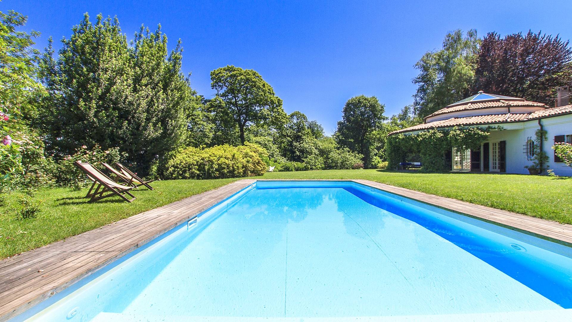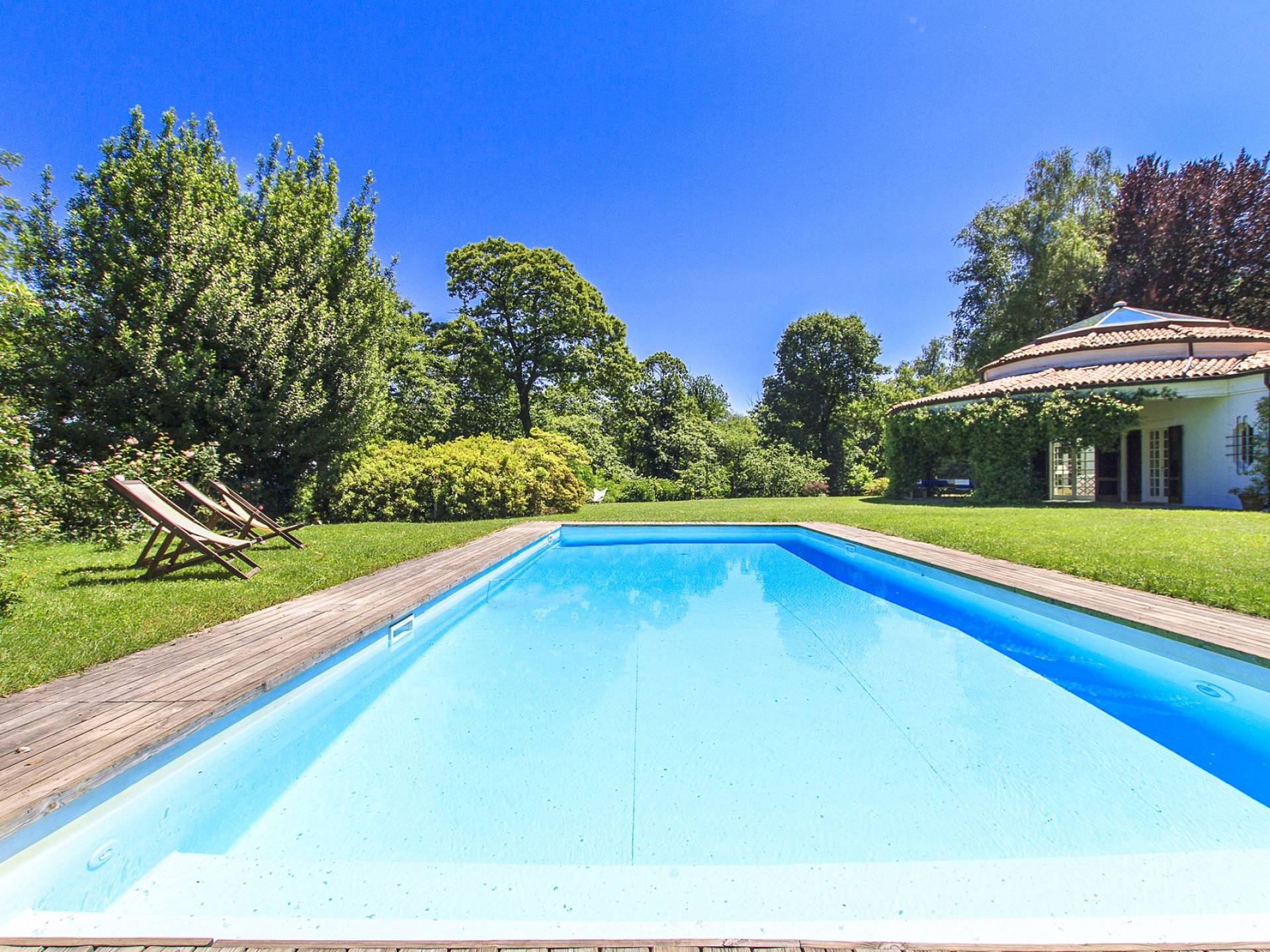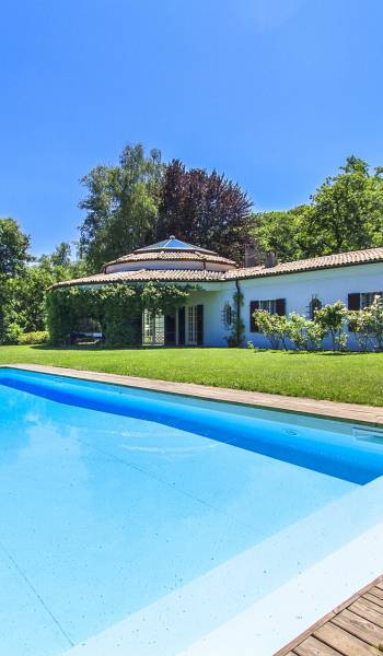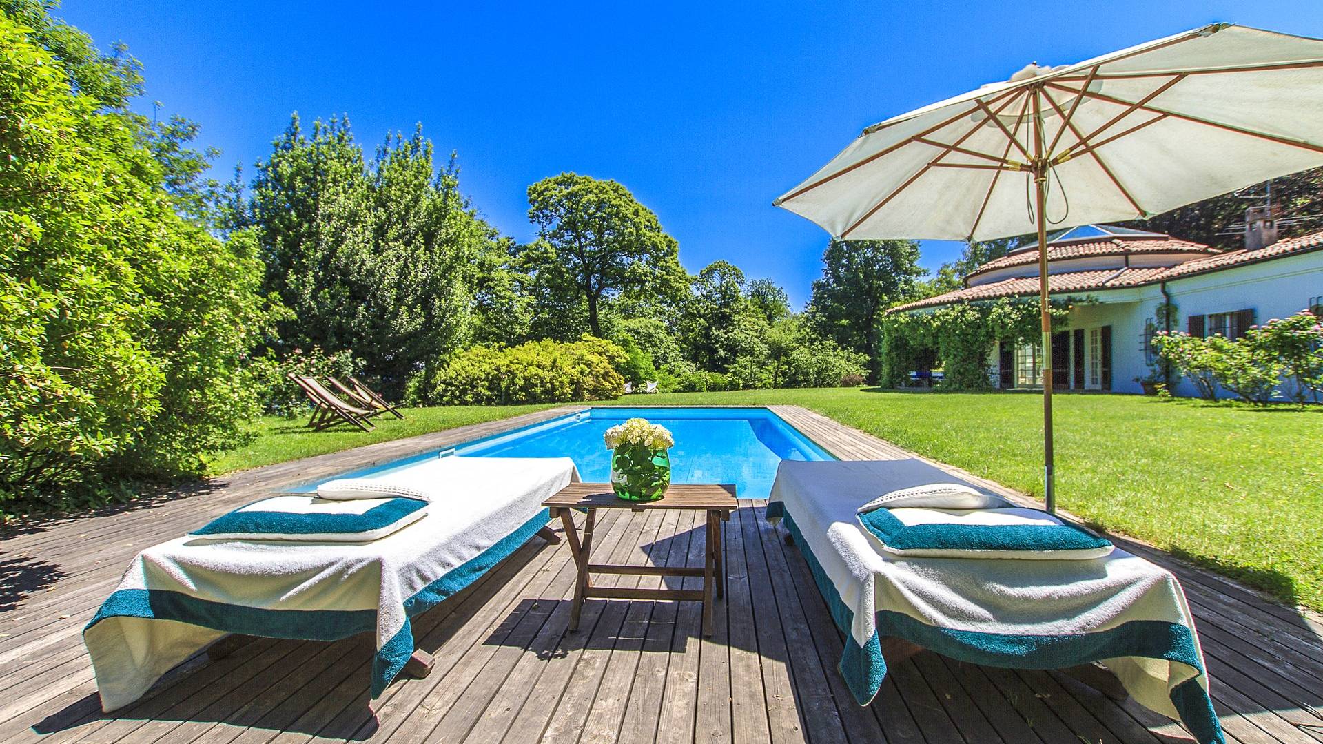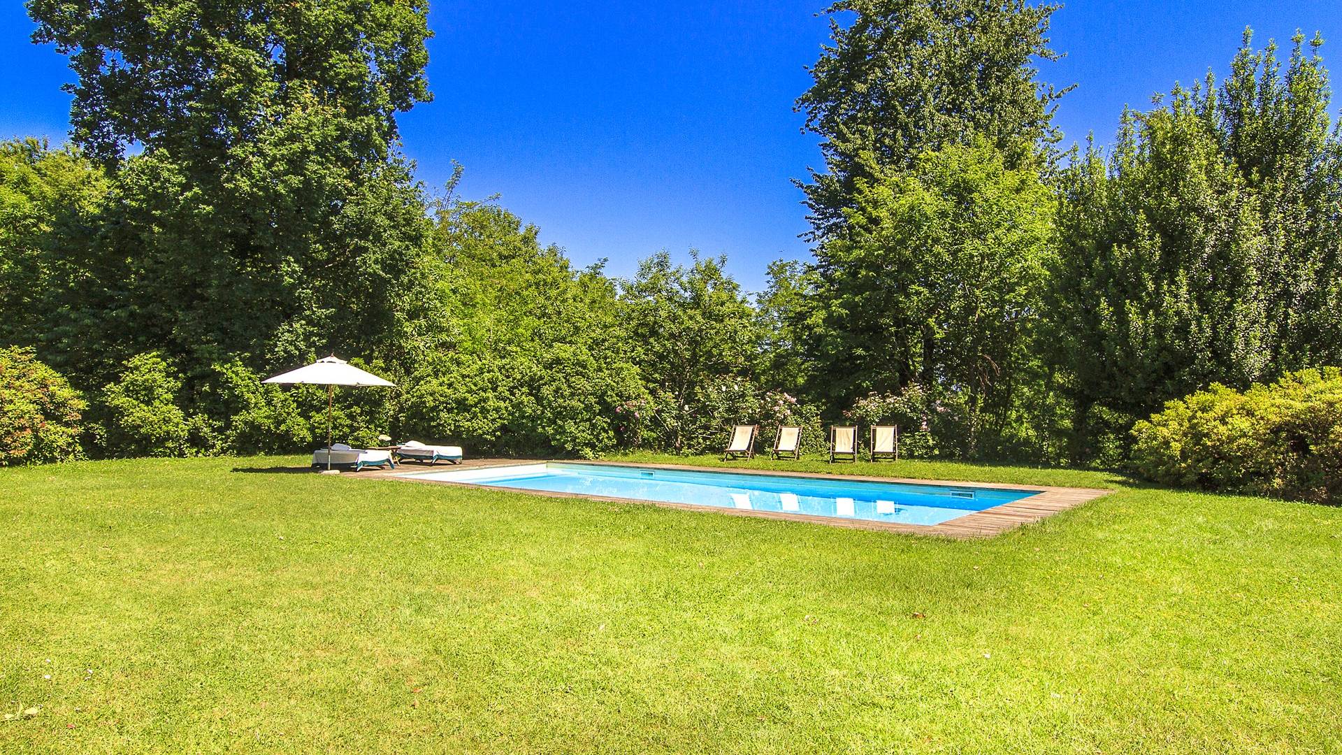 Главная круглая секция состоит из просторной и светлой гостиной с диванами и выходом на террасу, гостиной с телевизором и открытым камином, обеденной зоны, просторной кухни с большим деревянным столом и ванной комнаты с душ. Каждое из двух крыльев содержит главную спальню с двуспальной кроватью и ванной комнатой с ванной, спальню с двумя односпальными кроватями, спальню с двуспальной кроватью и ванную комнату с ванной. Снаружи вы можете выпить вина, поужинать и отдохнуть в тени крытой террасы со столами и стульями или насладиться солнцем в саду (1000 м²) с прекрасным видом на лужайку и озеро. Большой бассейн (11 х 5 м) окружен деревянным настилом с шезлонгами и зонтиками. Вилла расположена в большом частном парке (40000 м²), граничащем с охраняемым природным парком «Parco Naturale Lagoni di Mercurago», который идеально подходит для прогулок, спокойствия и умиротворения на лоне природы.