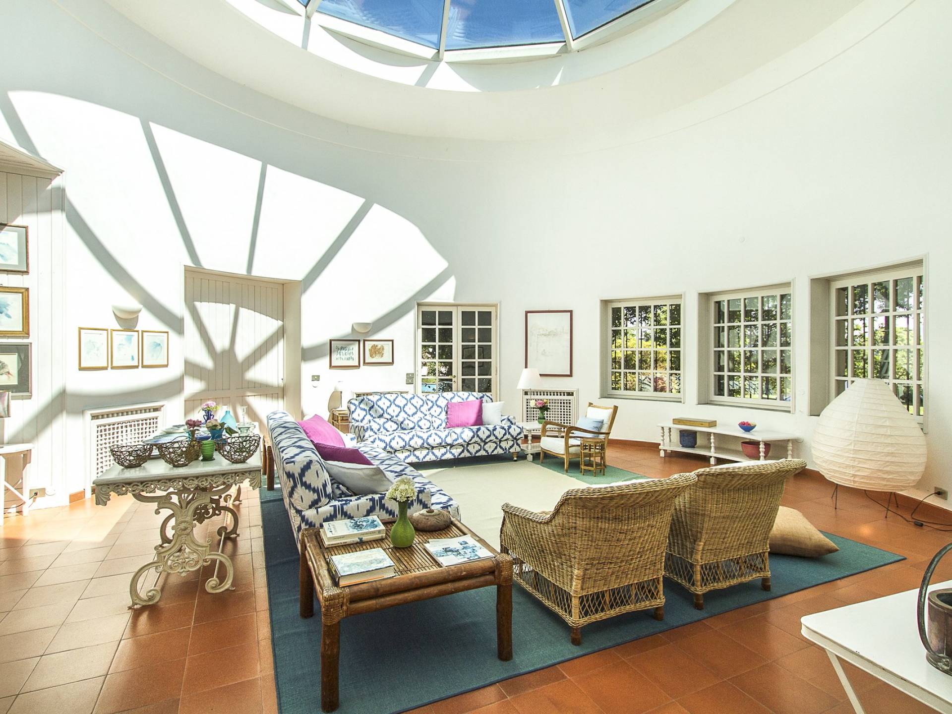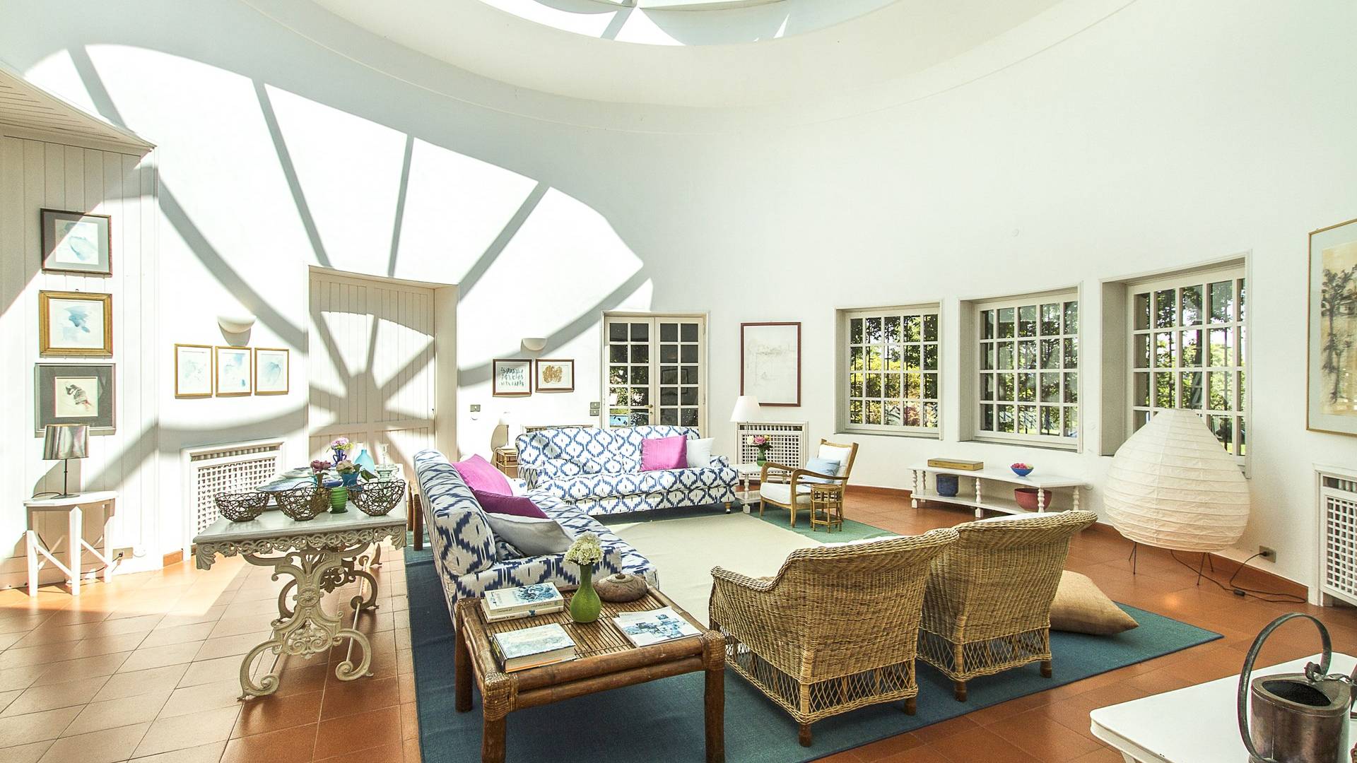 Эта стильная белая вилла «Вилла Монти» может вместить до 12 человек в 6 спальнях и удобно построена на одном этаже в форме самолета с центральной круглой частью и двумя крыльями