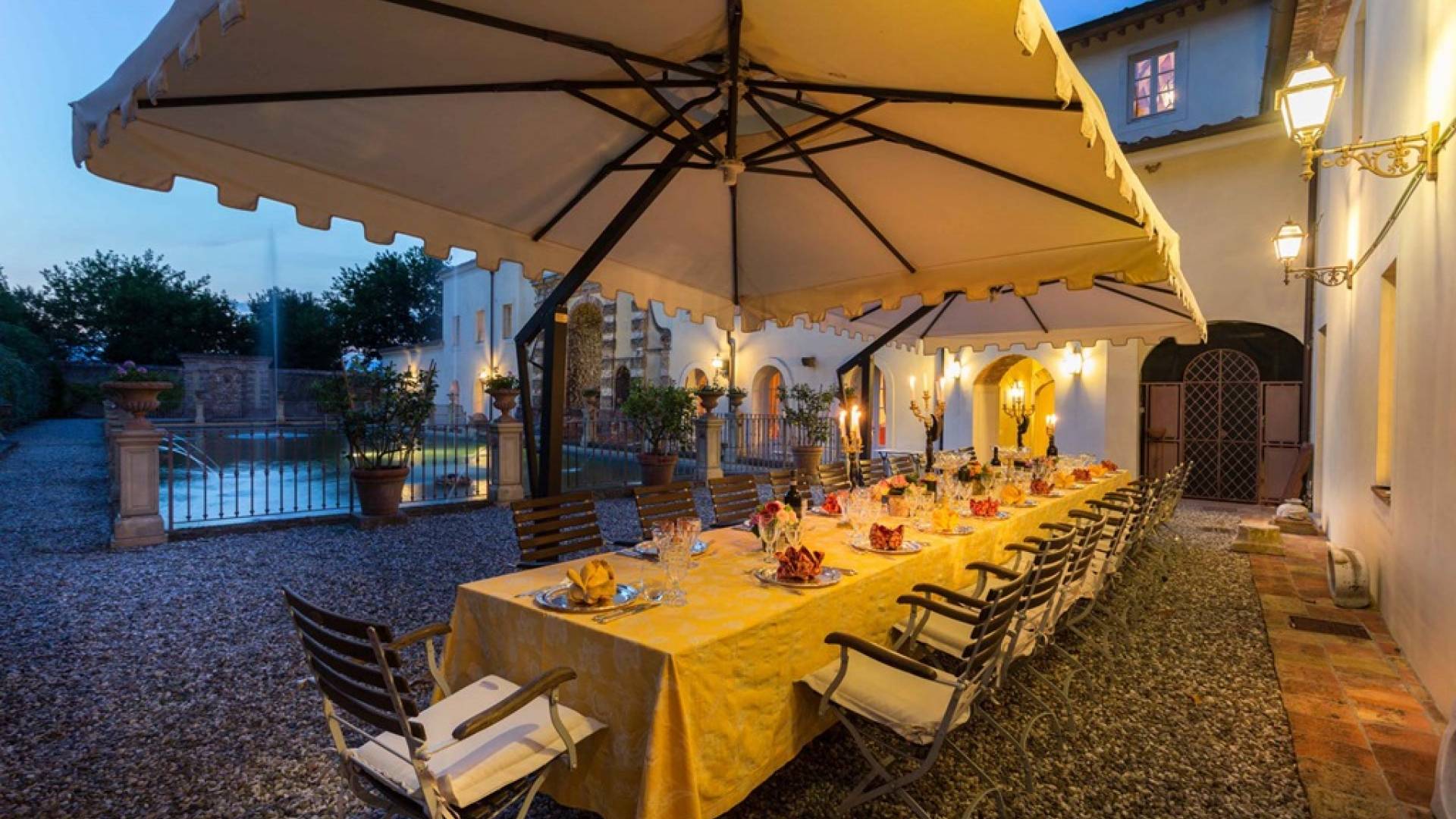 Рядом с бассейном находится тренажерный зал с выходом в сад и симпатичная гостиная с плетеной мебелью и большими стеклянными окнами с видом на бассейн, идеальное место для чтения книги или расслабляющего массажа или красоты лечение. Барбекю и просторная обеденная зона на свежем воздухе на 26 человек расположены в старинном дворе поместья с впечатляющей «Пескьерой»: величественным прудом. Открытые площадки превосходны, а интерьеры захватывают дух. Наши сотрудники могут помочь гостям с предложениями о том, как максимально использовать свое пребывание, обеспечивая эксклюзивный и персонализированный опыт. Мы можем организовать кулинарные курсы и вино/масло/мороженое. (минимум 6 участников); трансферы; экскурсии; мероприятия и вечеринки. (дополнительная плата). Зонты от солнца с 3 столами на 24 человека перед фонтаном, обеденная зона на открытом воздухе с 4 столами на 16 человек перед бильярдной.