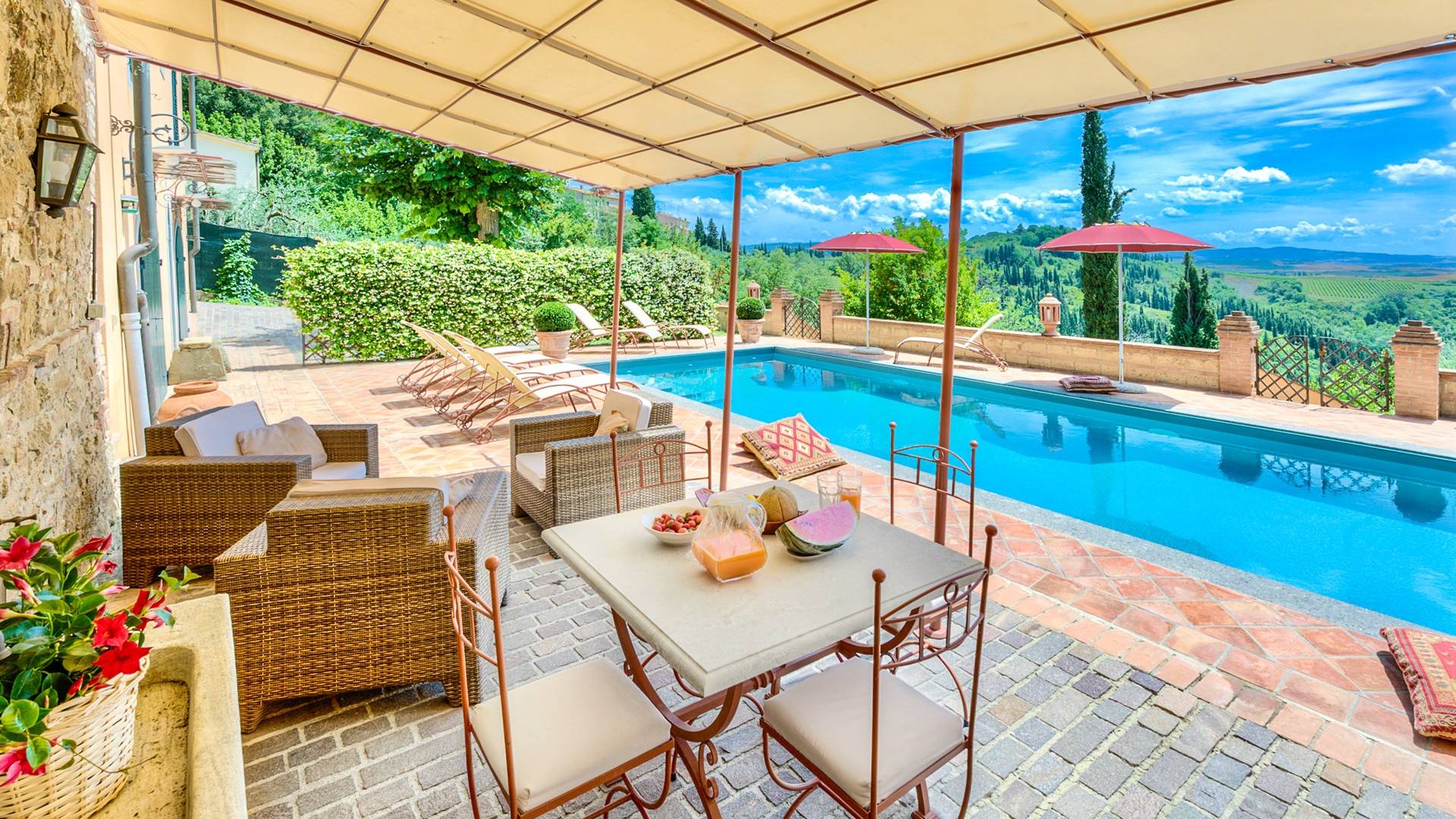 Вилла Camilla Tuscany расположена недалеко от нескольких очаровательных городов Тосканы, между Пизой и Флоренцией. Поместье имеет открытую террасу, увитую вековыми глициниями, террасу, облицованную плиткой Cotto, с панорамным видом на тосканские холмы.