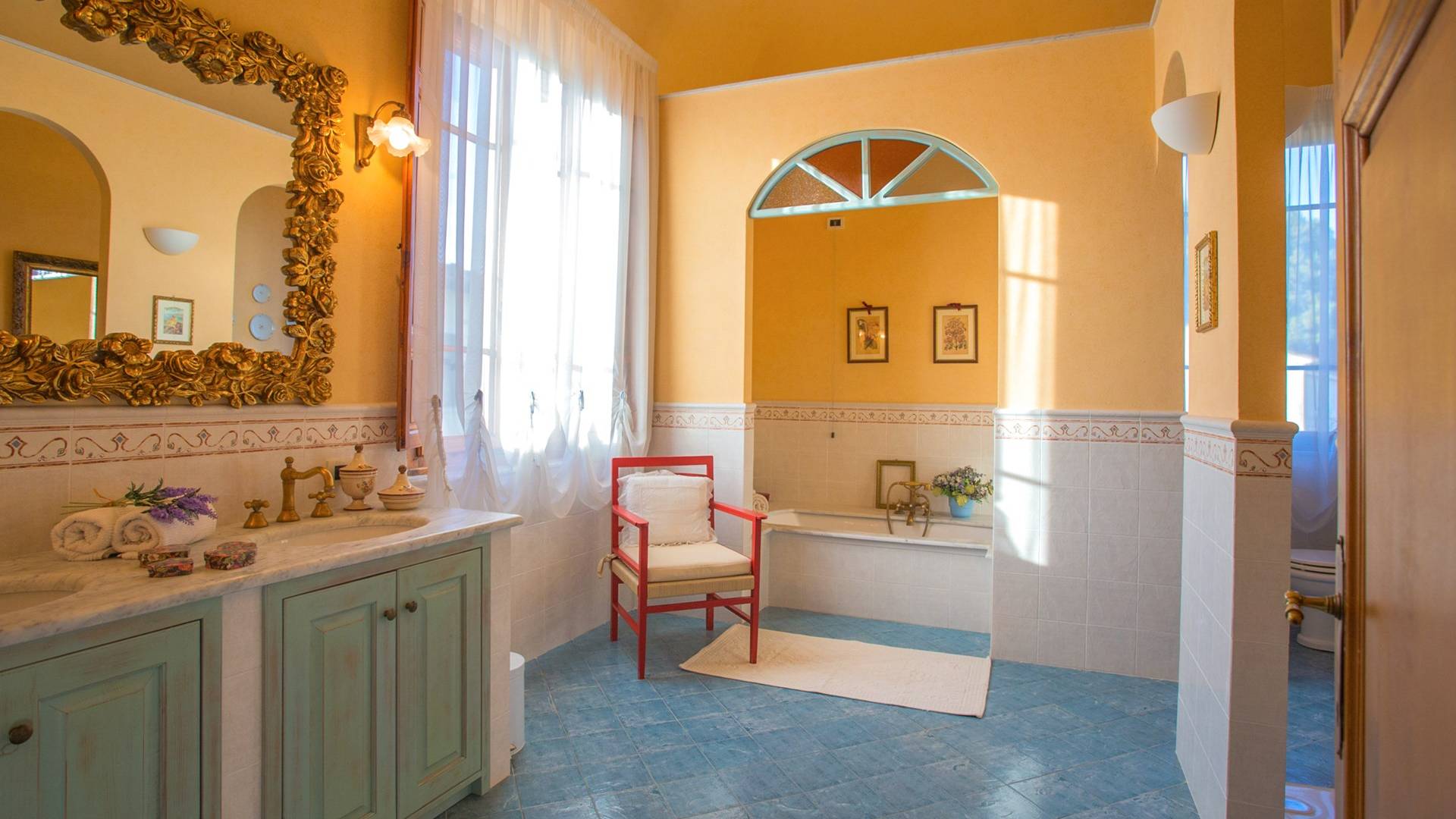 На просторной территории есть бассейн с соленой водой, солярий с шезлонгами и зона на свежем воздухе со столами и стульями. Скрытое, но очень близкое к центру деревни, это поместье предлагает пять спален, оформленных в элегантном стиле, с выкрашенными стенами в приятных тонах, современными тканями и несколькими предметами мебели, сделанными на заказ местными итальянскими мастерами.