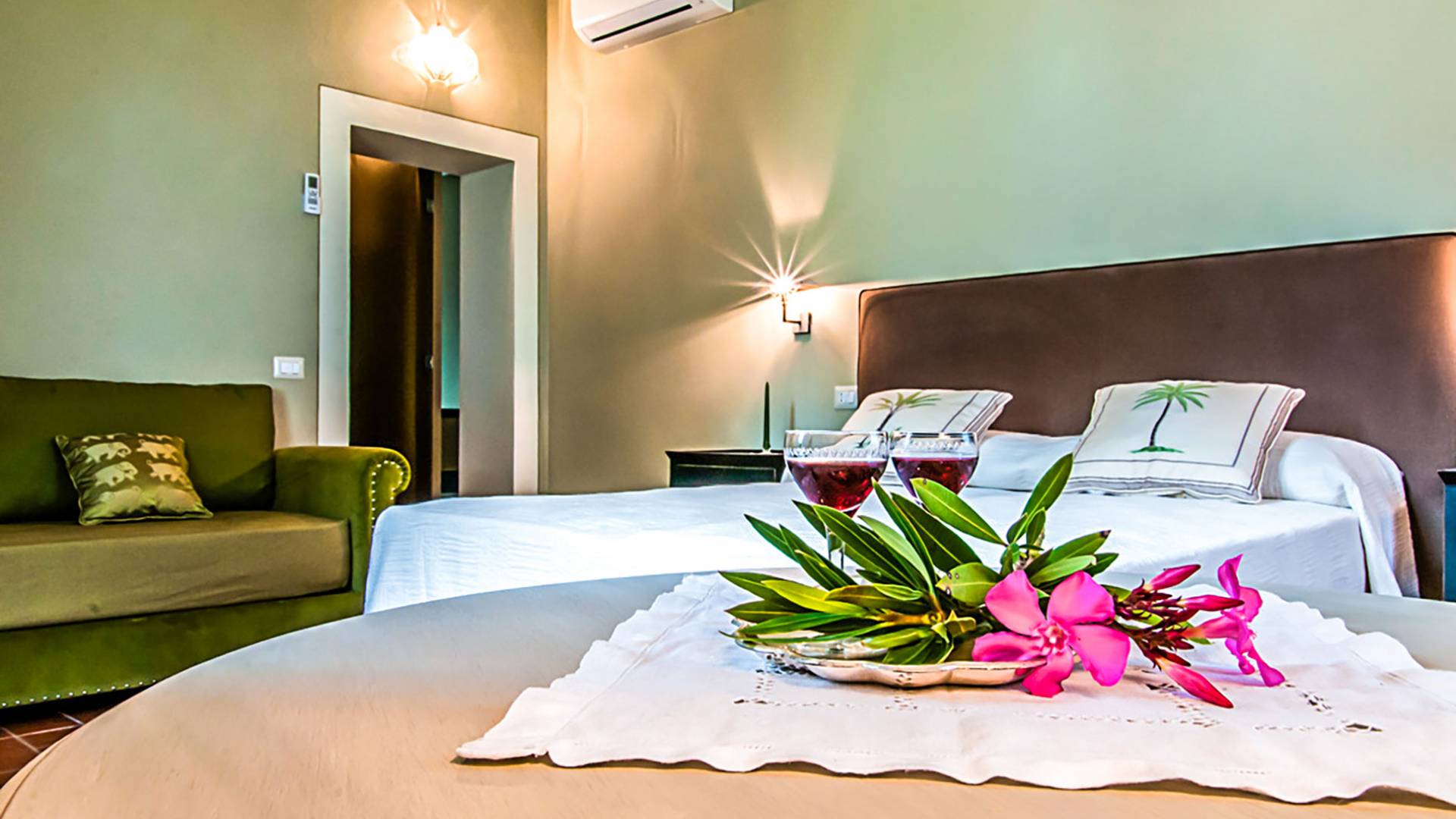 На втором этаже 4 спальни (Оливковое дерево, Аллея, Башня, Долина) каждая с собственной ванной комнатой с вертикальным гидромассажем и прекрасным видом. (2 номера Аллея и Долина также могут разместиться 3 человека с 1 двухместным номером + 1 дополнительная кровать). Для гостей предусмотрена детская кроватка для самых маленьких и стульчик для кормления. Все номера могут быть двухместными, все с кондиционером и москитной сеткой на окнах. Только у Валли, самой большой спальни, есть джакузи в ванной.