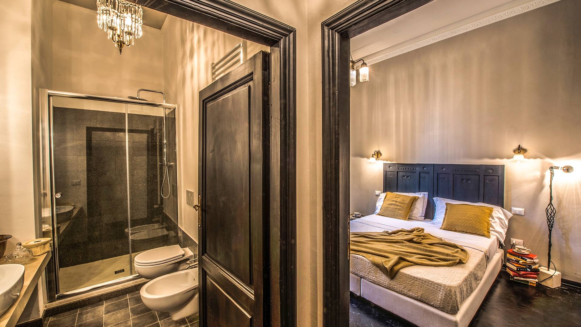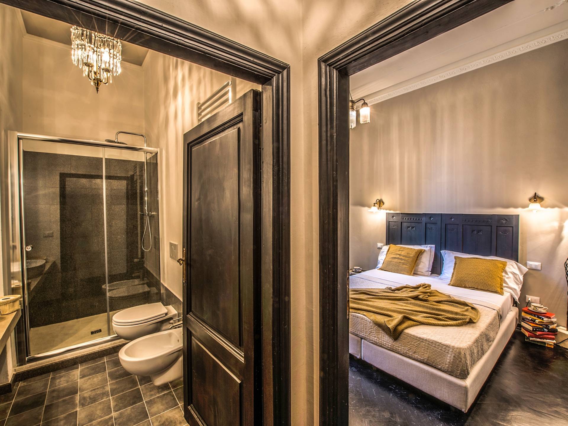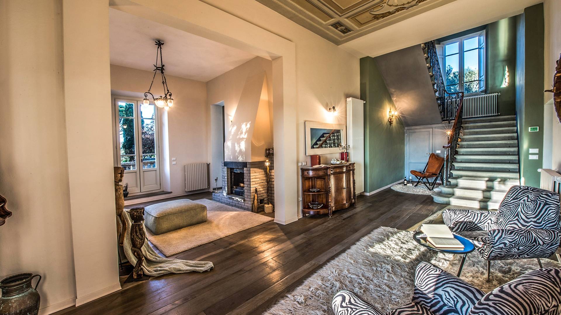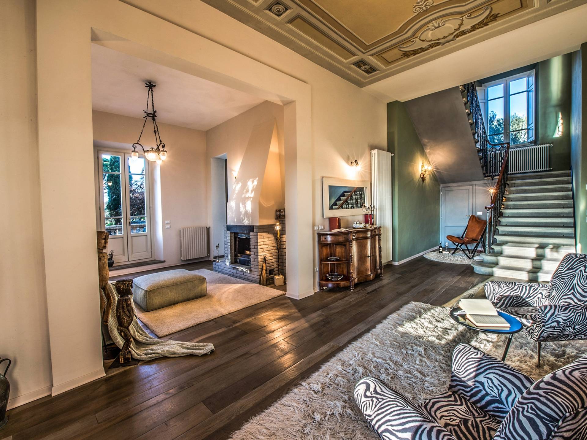 Спальни в спальной зоне очень большие, с французскими кроватями, старинными письменными столами, очень высокими потолками и оригинальной напольной плиткой начала 20 века, уникальной мебелью и шторами. В спальню ведет очаровательная мраморная лестница. Вилла расположена на двух уровнях и занимает площадь около 500 квадратных метров. В большой гостиной вас ждут комфортабельные гостиные с камином, диванами с пуфами, удобными креслами и уголками для чтения. Большая кухня (плита с пятью конфорками, духовка, посудомоечная машина, микроволновая печь, морозильная камера, кофеварка) также оборудована всем необходимым и может с комфортом разместить за столом десяток человек.