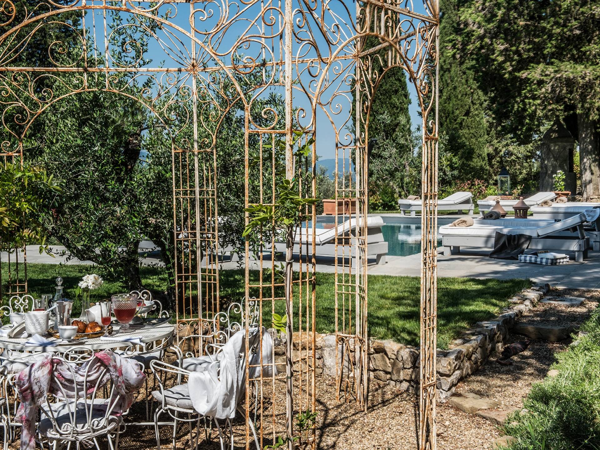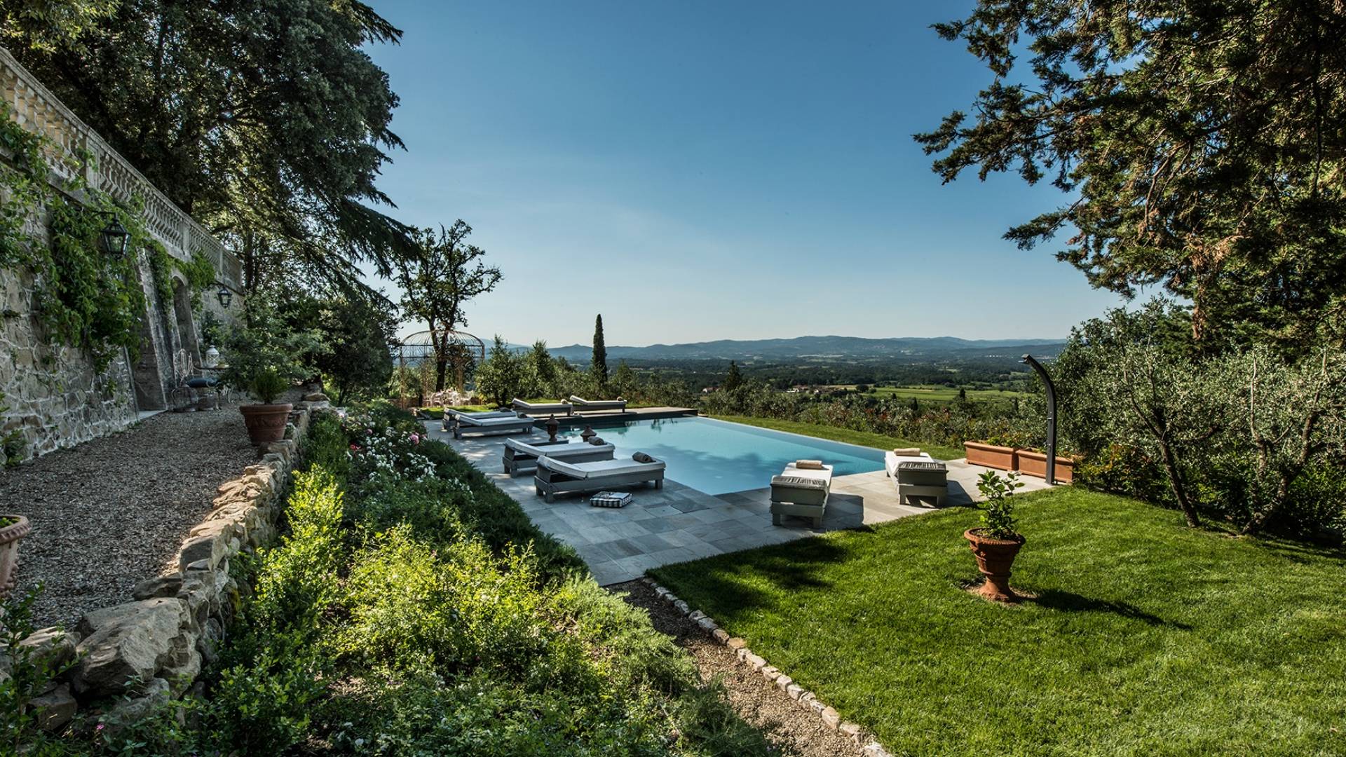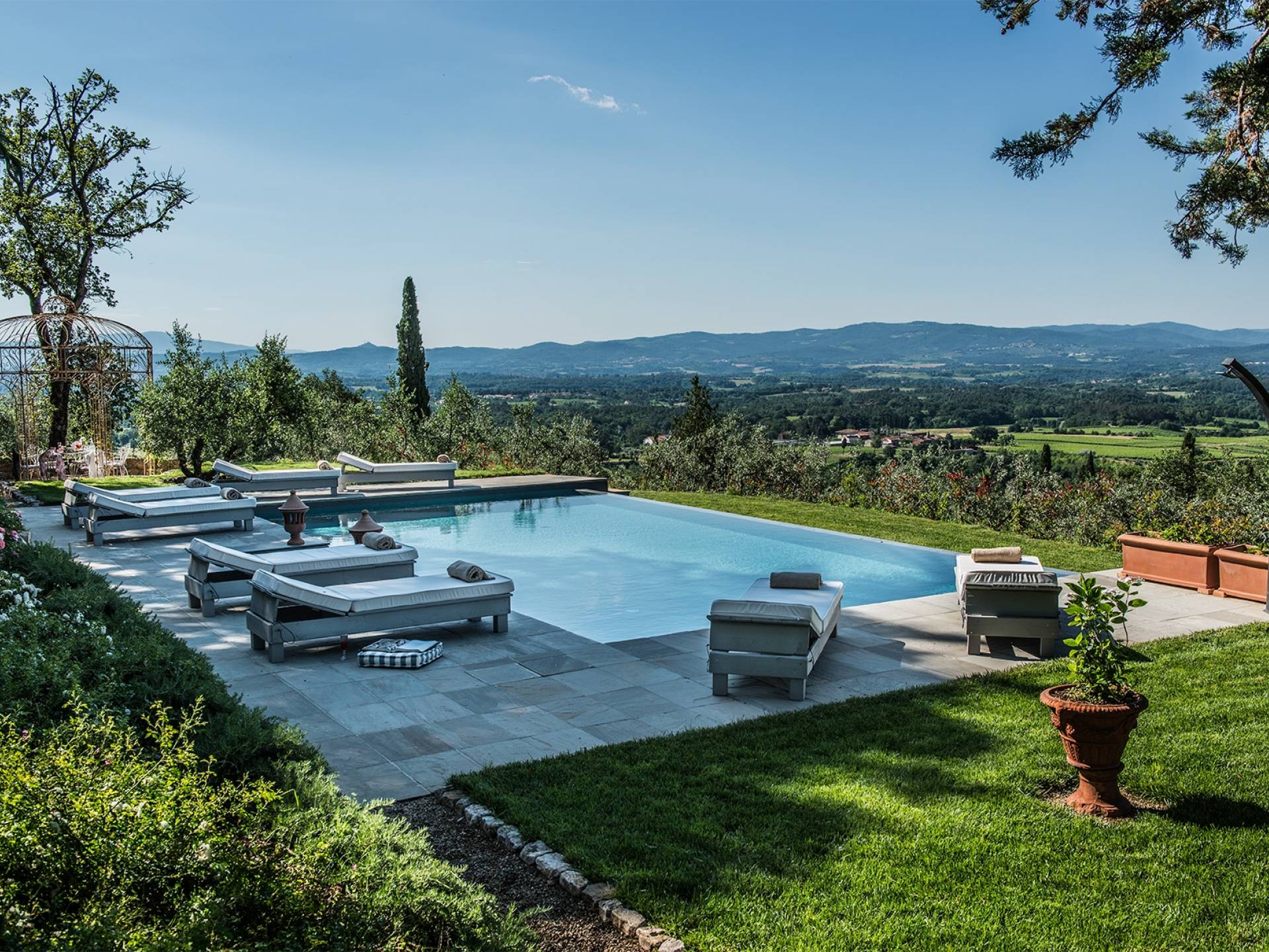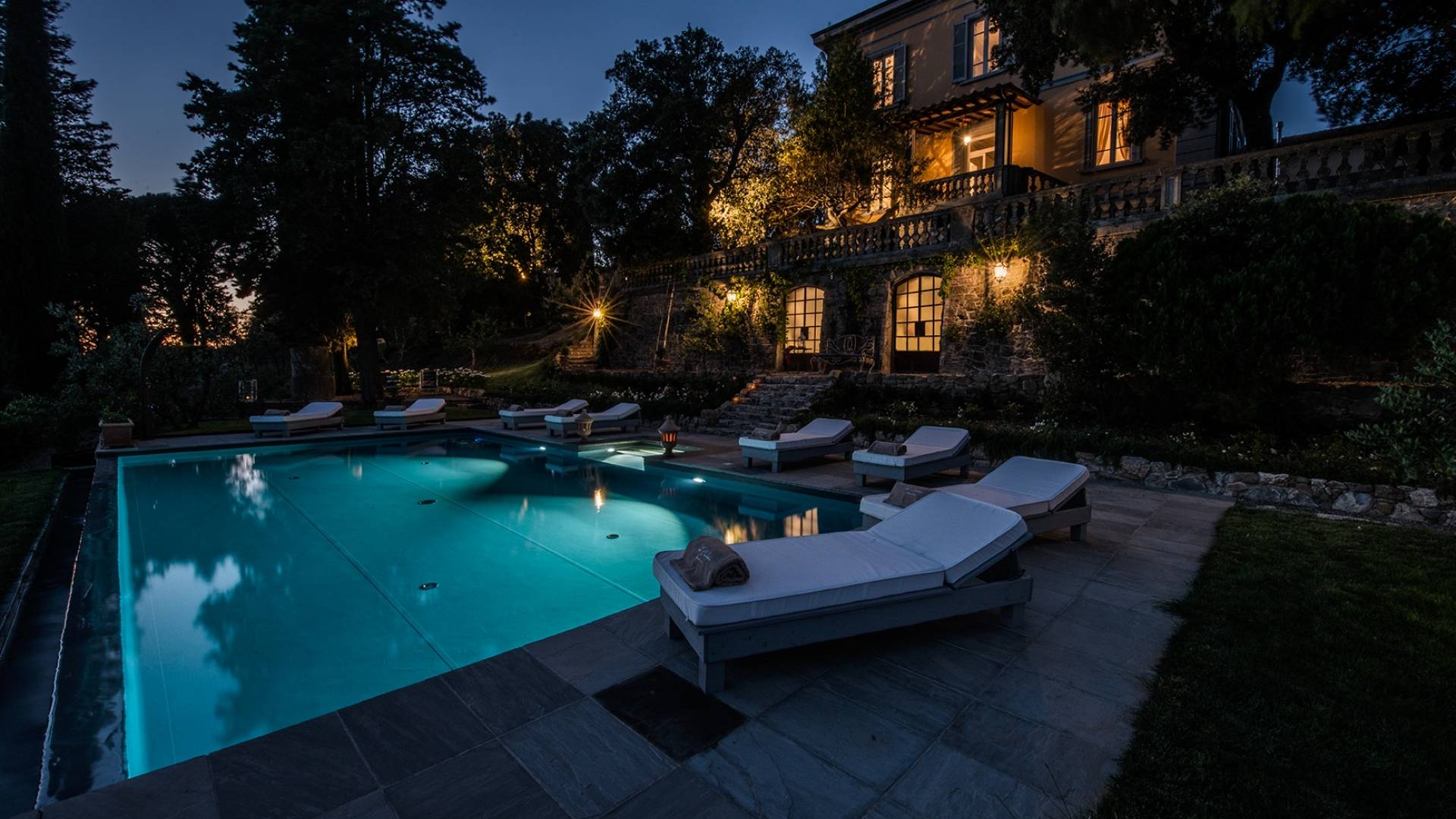 В парке, расположенном на территории площадью почти 2 гектара, полностью огороженной, очаровательный бассейн (12 м x 7) с бесконечной гранью заставит вас почувствовать себя погруженными в зеленую природу тосканских холмов. У бассейна удобные шезлонги сделают ваш день очень приятным. Кроме того, на улице есть большие террасы, где вы можете перекусить, насладиться напитком, остановиться на мгновение и посидеть, чтобы поговорить с друзьями или поделиться интимными моментами в паре или семье.